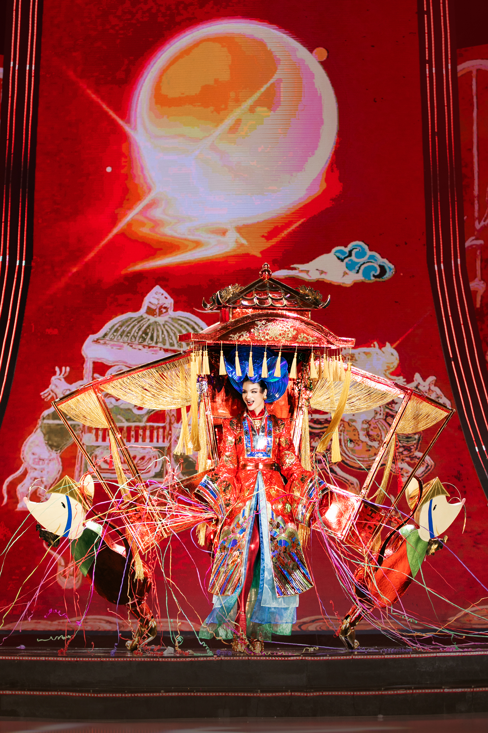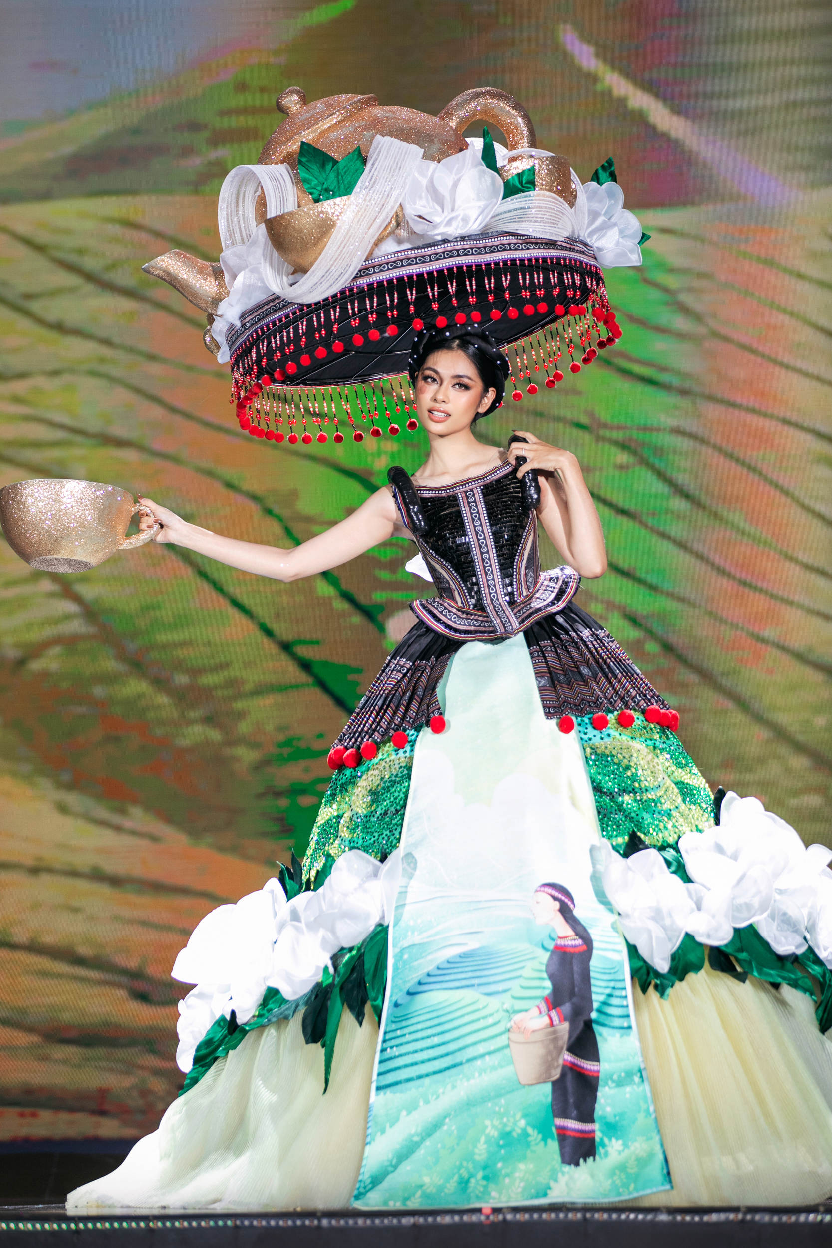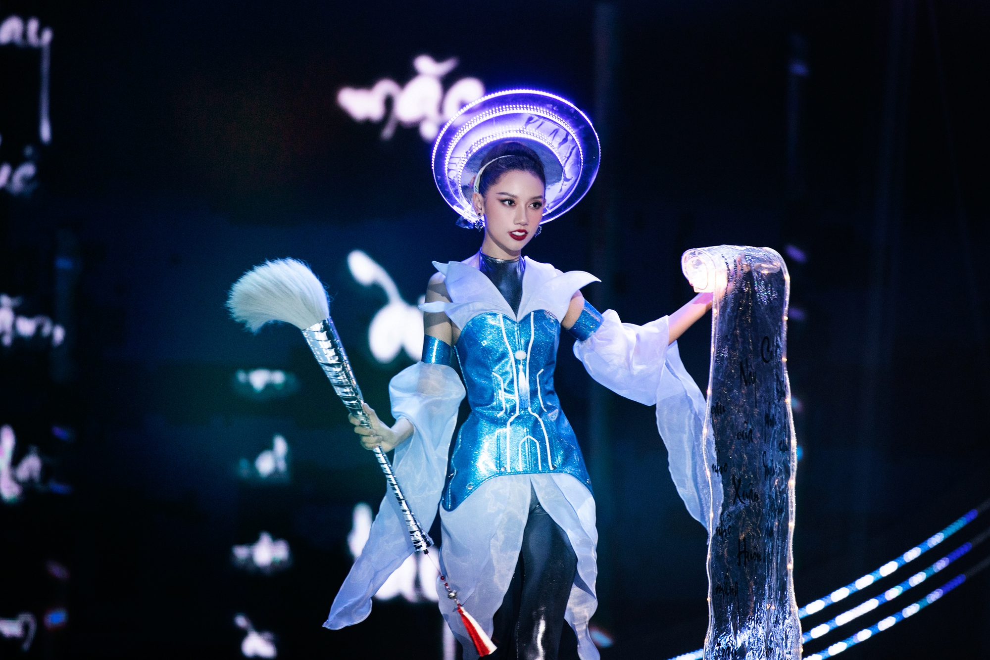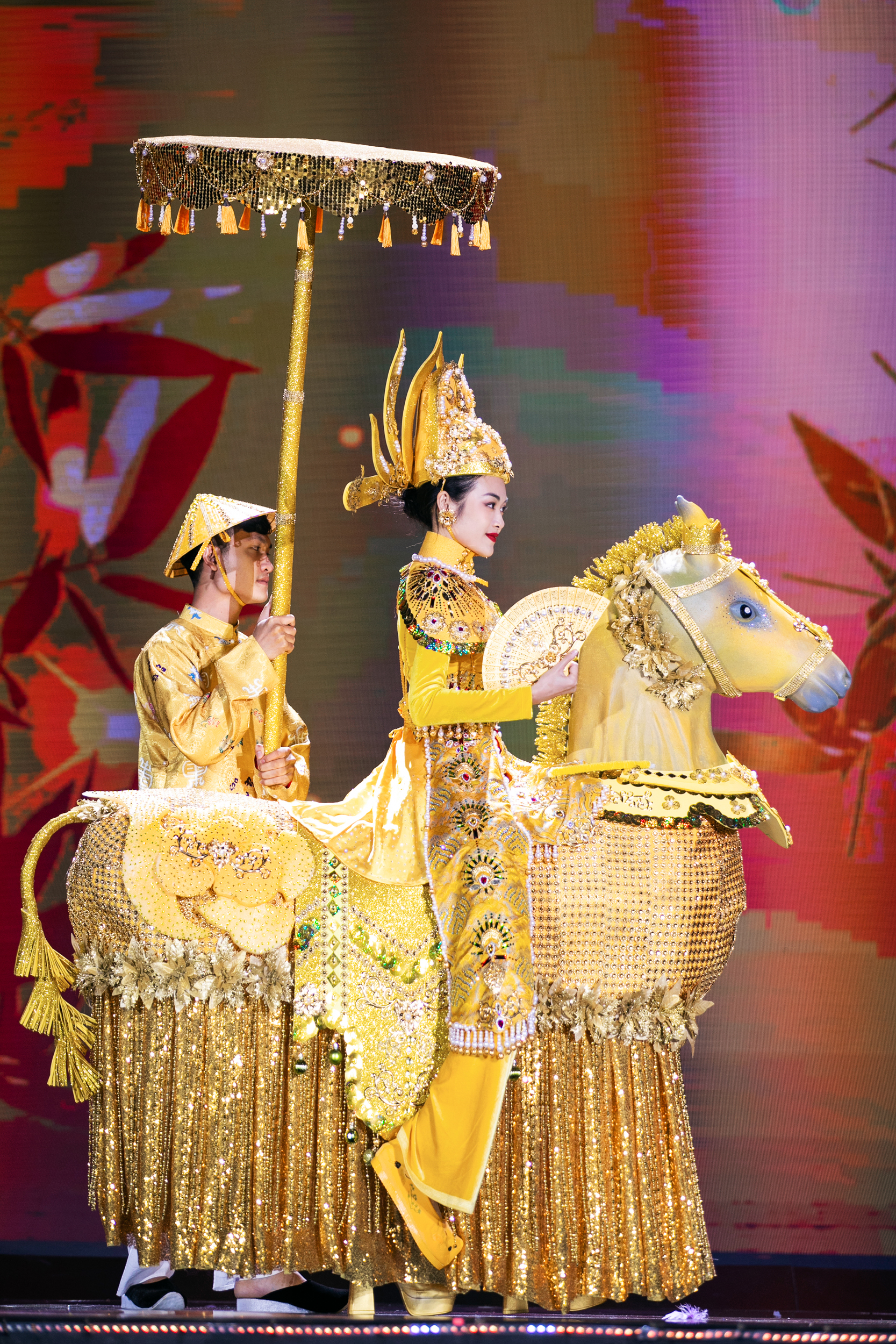 40 trang phục dân tộc được trình diễn tại đêm thi cũng mang đến những phút giây thăng hoa xen lẫn niềm tự hào văn hóa dân tộc.