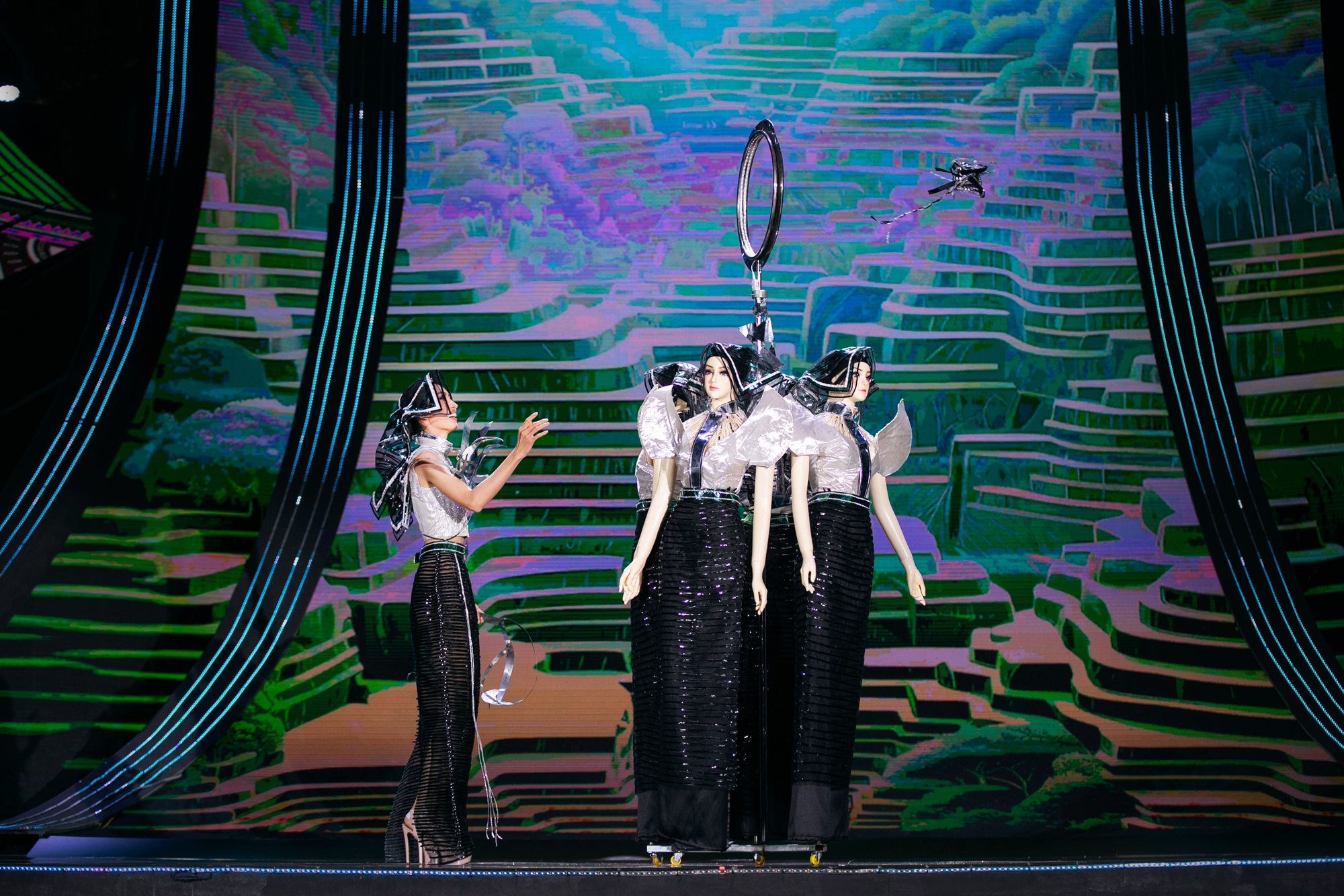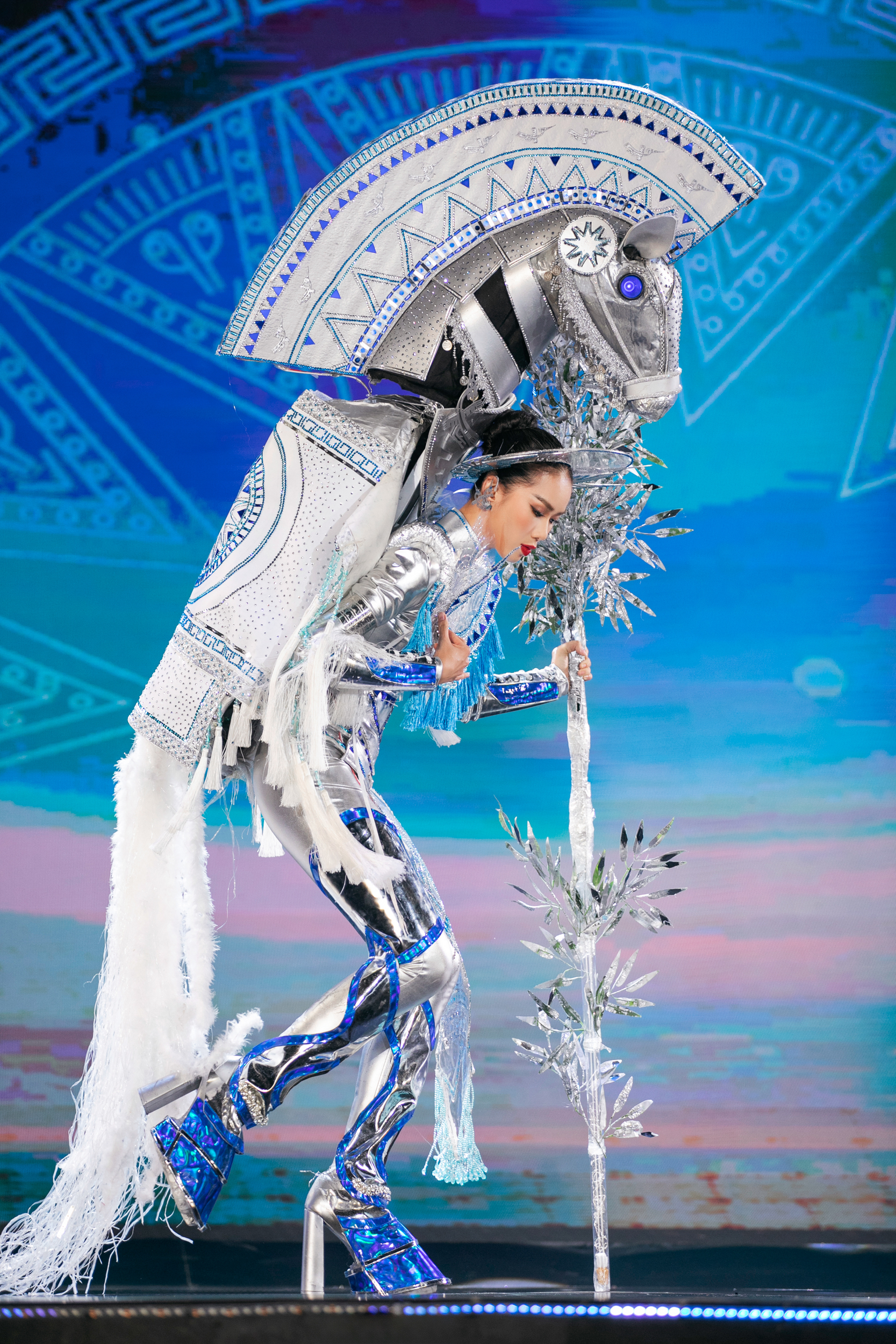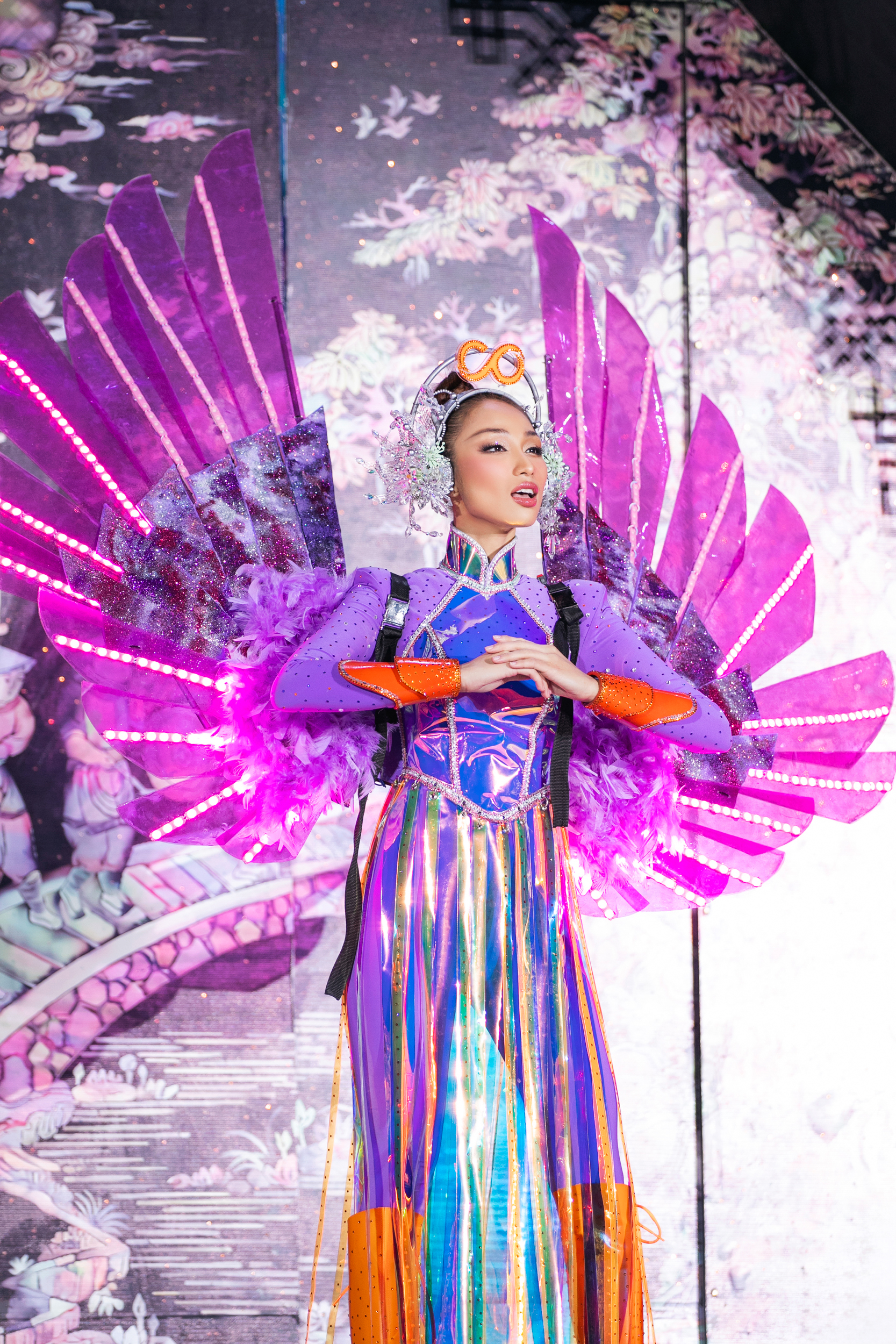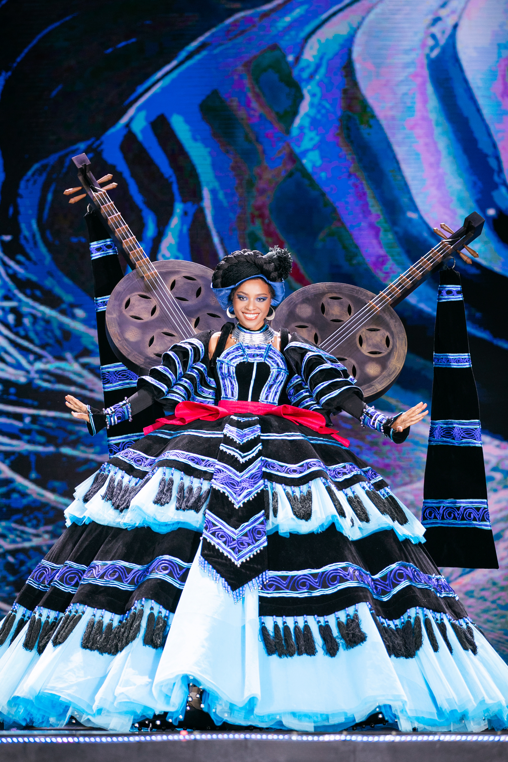 40 trang phục dân tộc được trình diễn tại đêm thi cũng mang đến những phút giây thăng hoa xen lẫn niềm tự hào văn hóa dân tộc.