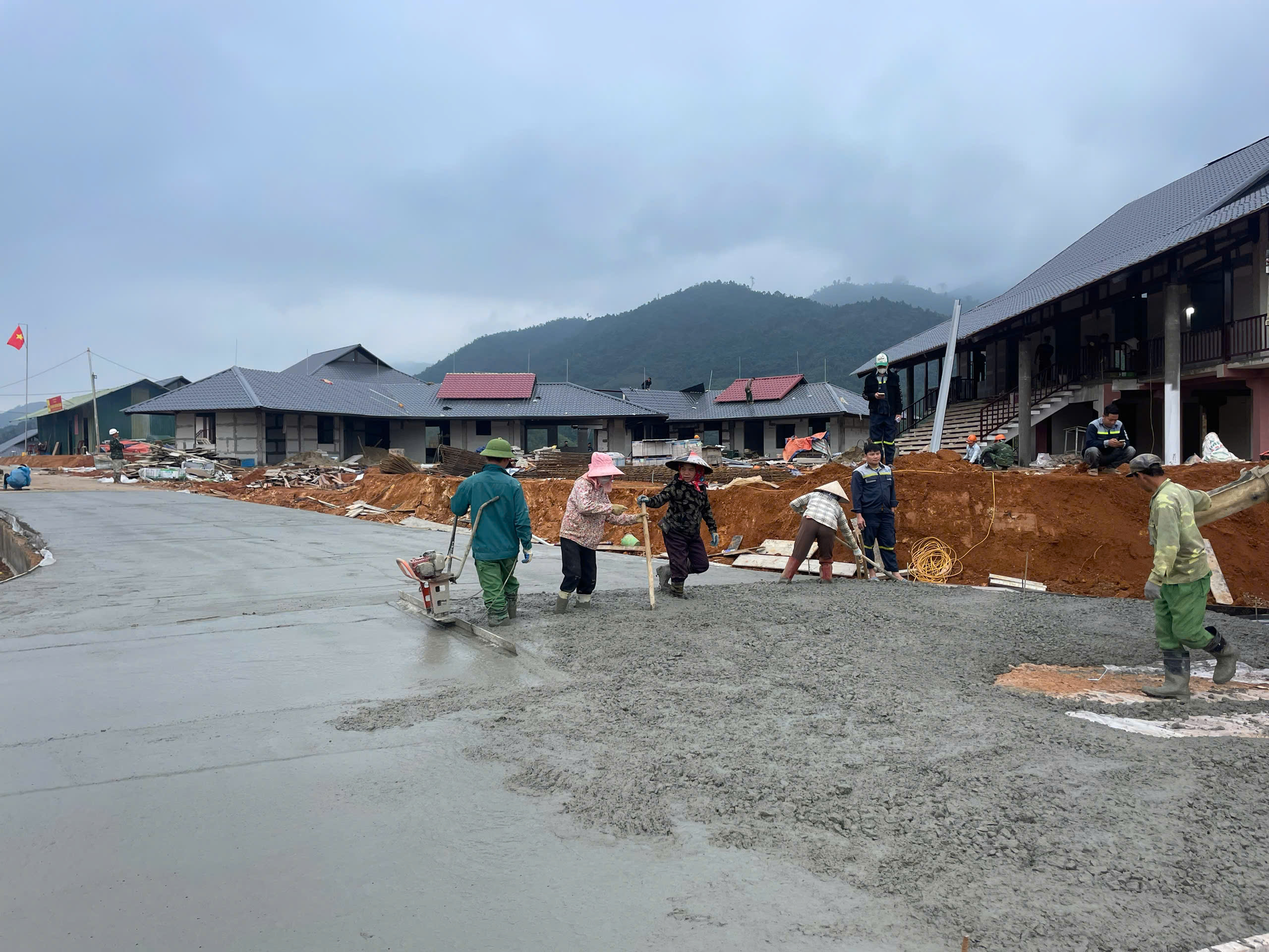 Thượng tá Vũ Đình Dũng, Chỉ huy trưởng công trường xây dựng Khu tái định cư Làng Nủ cho biết: "Với quyết tâm hoàn thành công trình trước ngày 15/12, đơn vị đã huy động lực lượng, áp dụng các tiến bộ kỹ thuật mới trong xây dựng để đẩy nhanh tiến độ thi công. Từ khi khởi công, hơn 3 tháng nay, chưa có chiến sĩ nào về thăm gia đình, họ tập trung toàn bộ vào công việc, giúp người dân sớm ổn định cuộc sống".