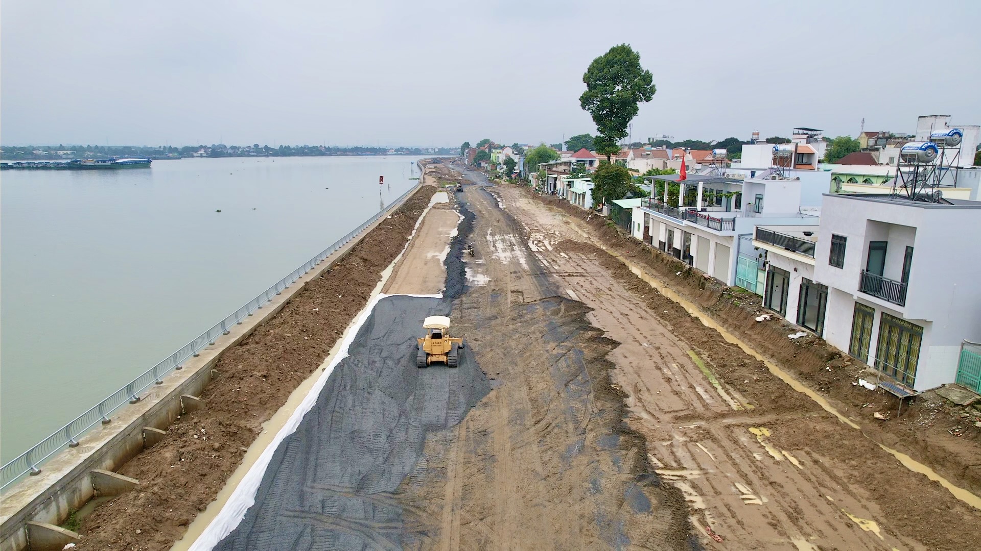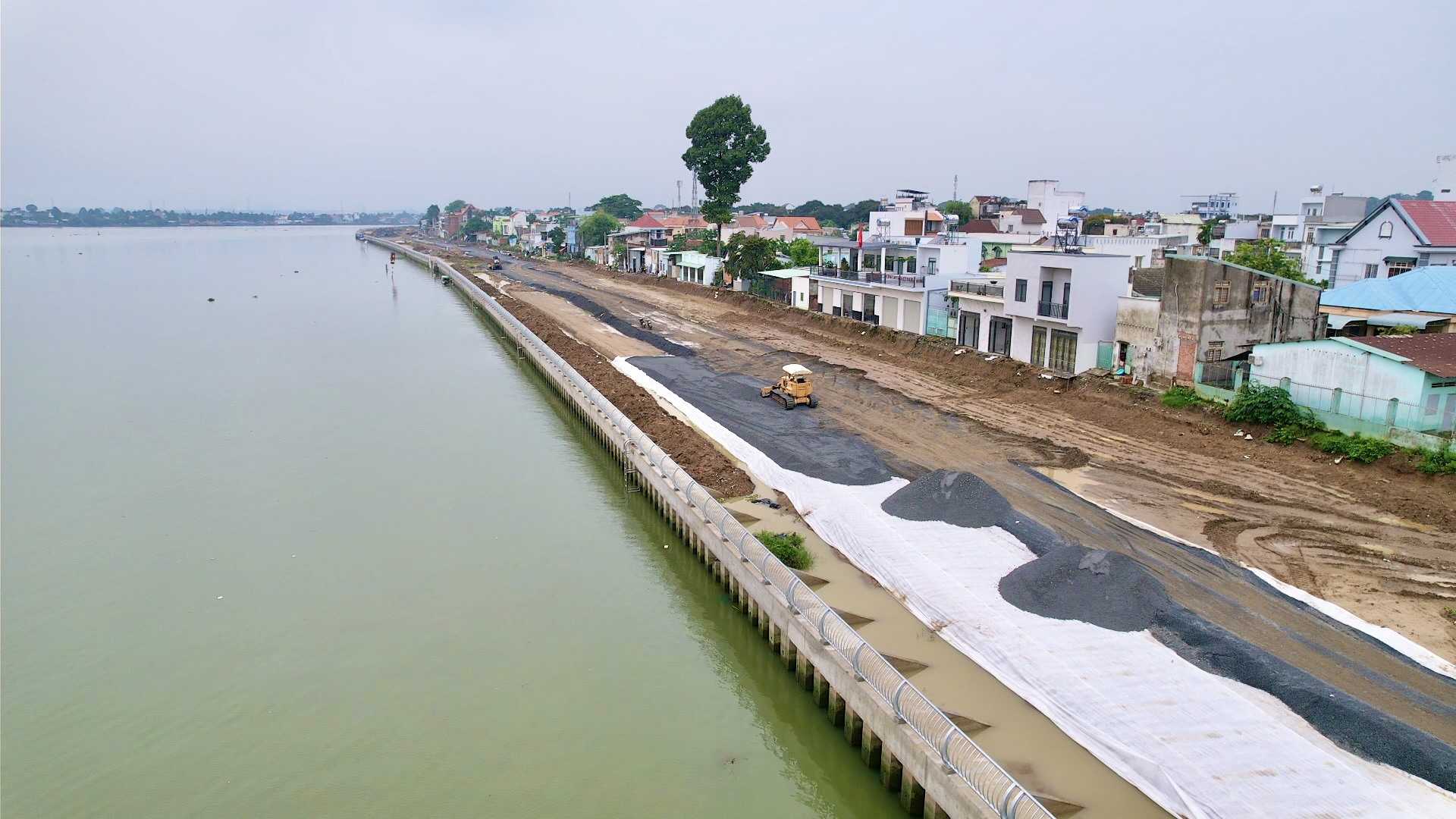 Theo Ban quản lý dự án TP Biên Hòa đường ven sông Đồng Nai được đầu tư gần 2.000 tỷ đồng, dài 5,2km. Tuyến đường này được khởi công từ cuối năm 2021, ban đầu được kỳ vọng hoàn thành trong năm 2023 nhưng do vướng mặt bằng nhiều vị trí, cộng thêm chưa có tái định cư, công tác giải phóng mặt bằng chậm. Vì thế, tiến độ dự án bị ảnh hưởng nặng, trễ hẹn về đích năm 2023; hiện nỗ lực tăng tốc để kịp hoàn thành trong năm 2025. Sản lượng toàn tuyến đến nay đạt gần 80%, riêng phần kè ven sông đang thi công hoàn thiện.