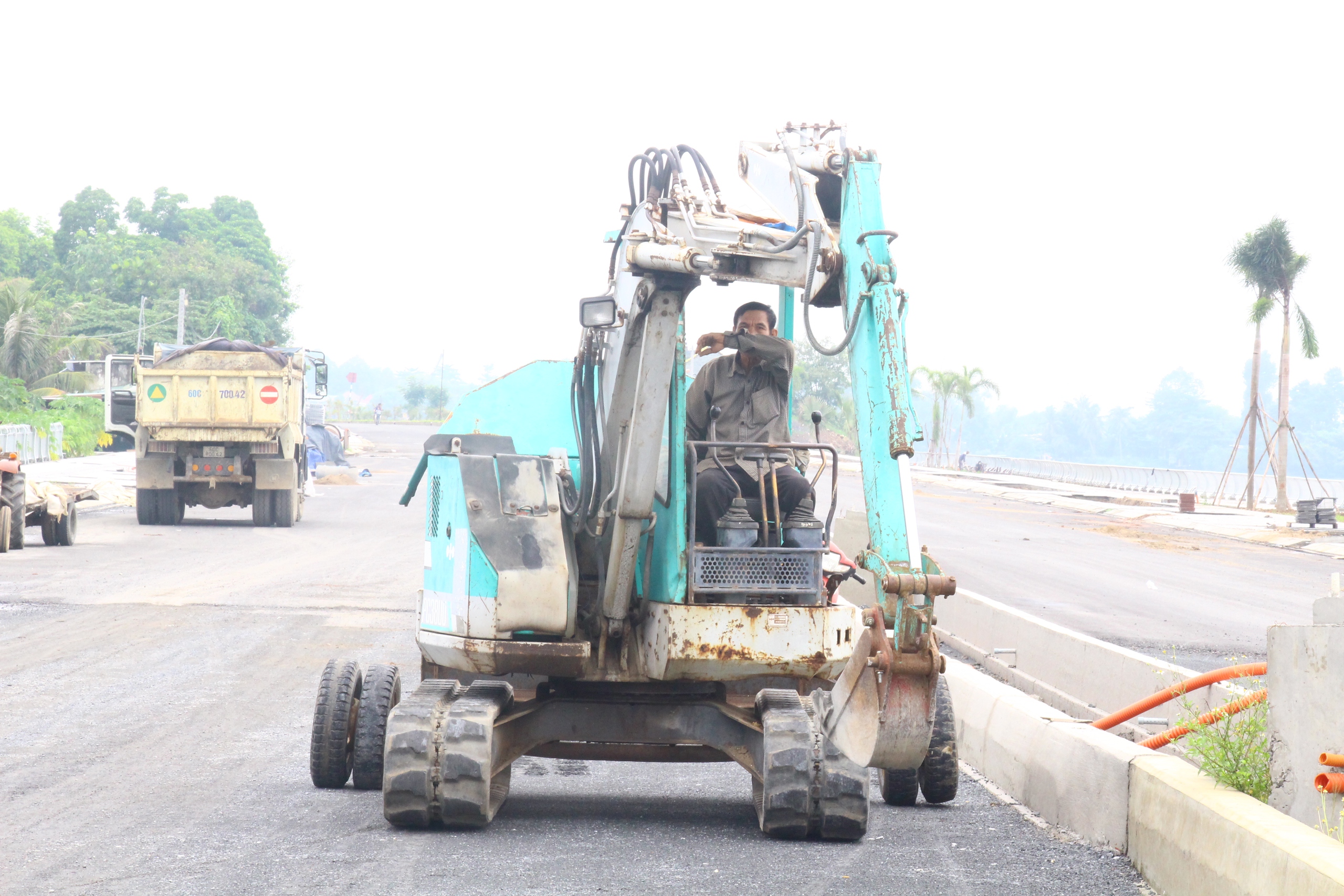 Ở nhiều đoạn tuyến, các hạng mục thi công như đào đắp đất, cấp phối đá dăm, trải vải địa kỹ thuật, thi công mặt đường… đang được hoàn thiện. Đặc biệt, đoạn giữa tuyến đến gần khu vực nhà lầu Ông Phủ đã được thảm nhựa, xây dải phân cách cứng, trồng hoa, cỏ tạo điểm nhấn cảnh quan.