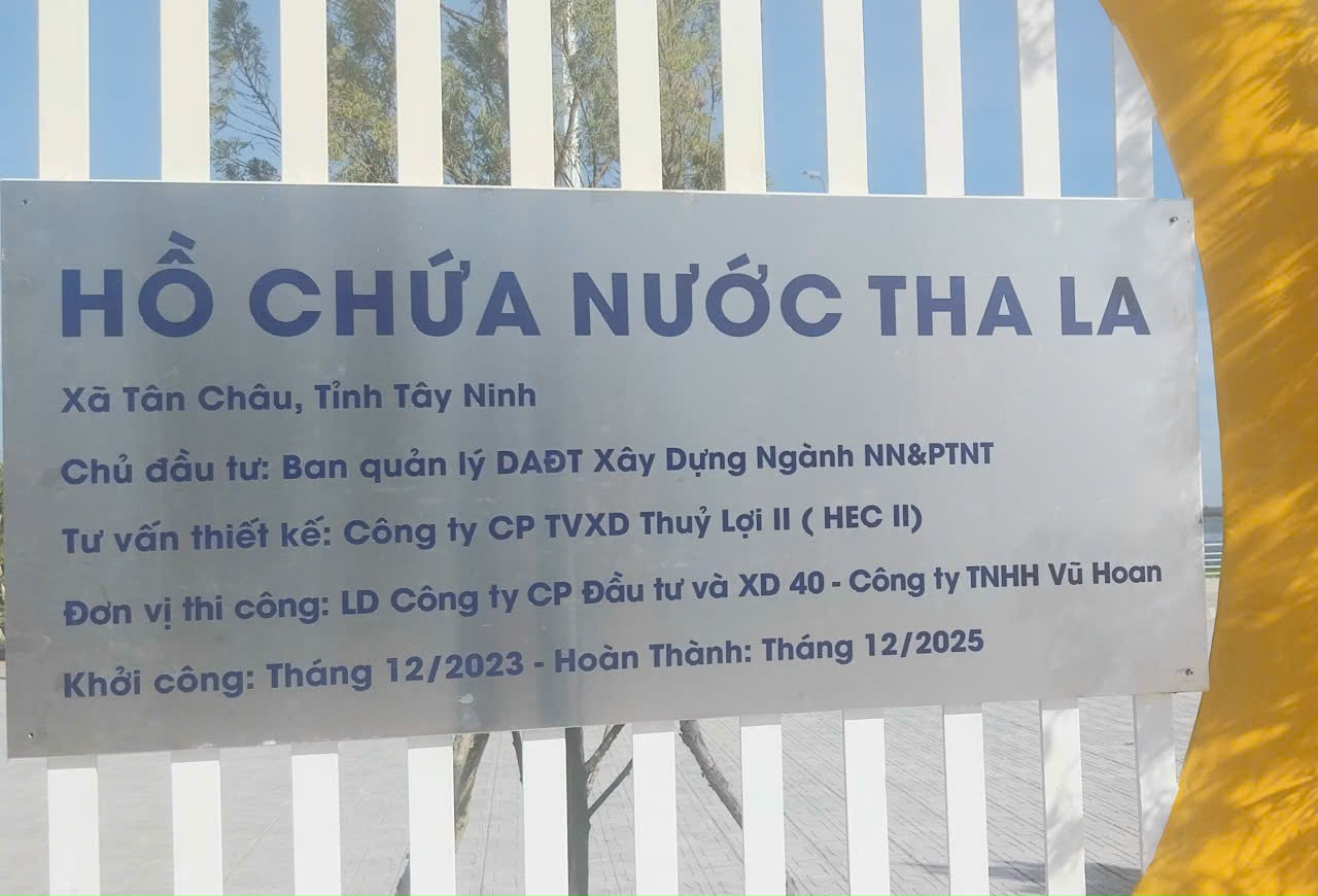 Hồ thủy lợi Tha La (xã Tân Châu, tỉnh Tây Ninh) có dung tích chứa 27,43 triệu m3 nước, được đưa vào khai thác từ năm 2005.