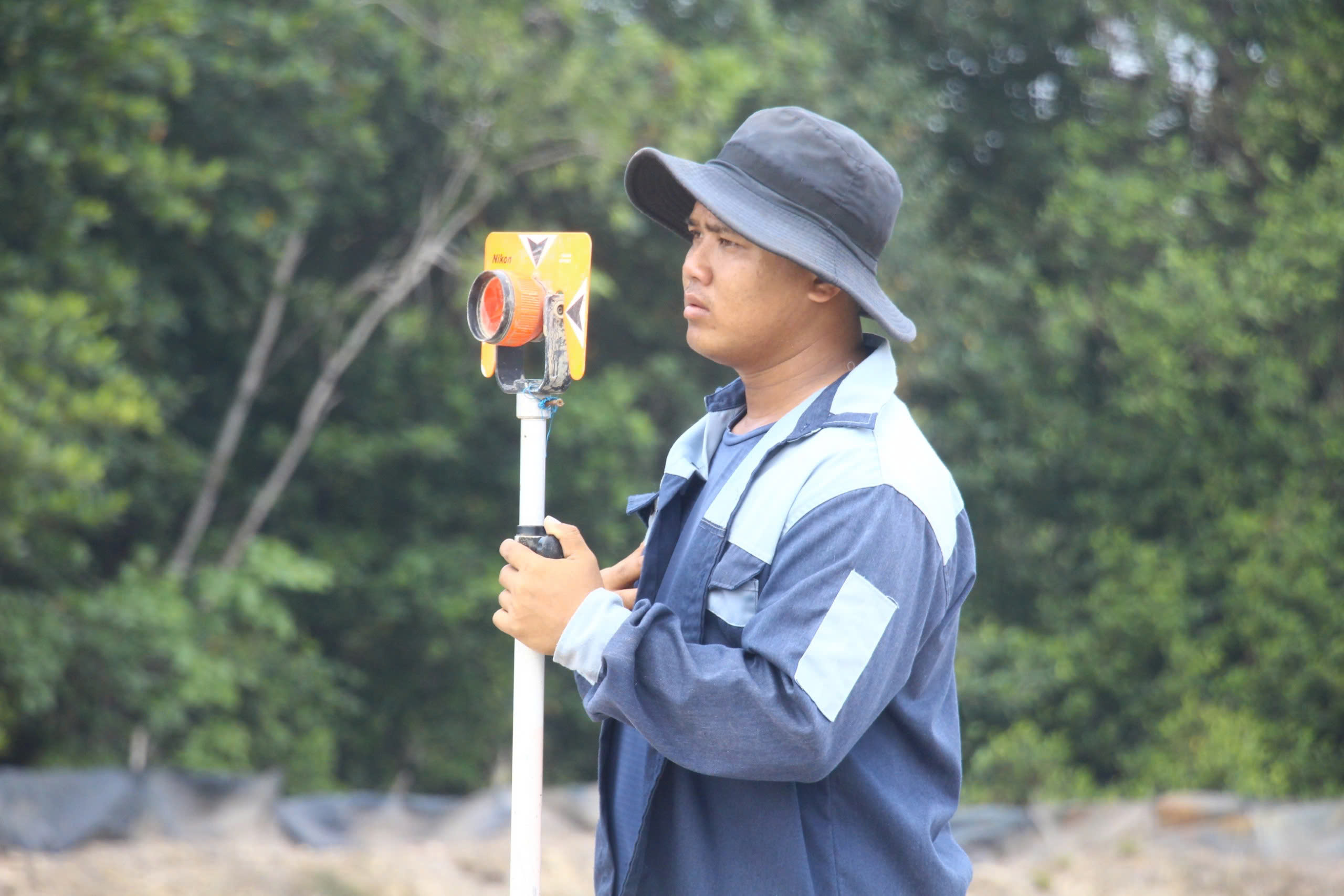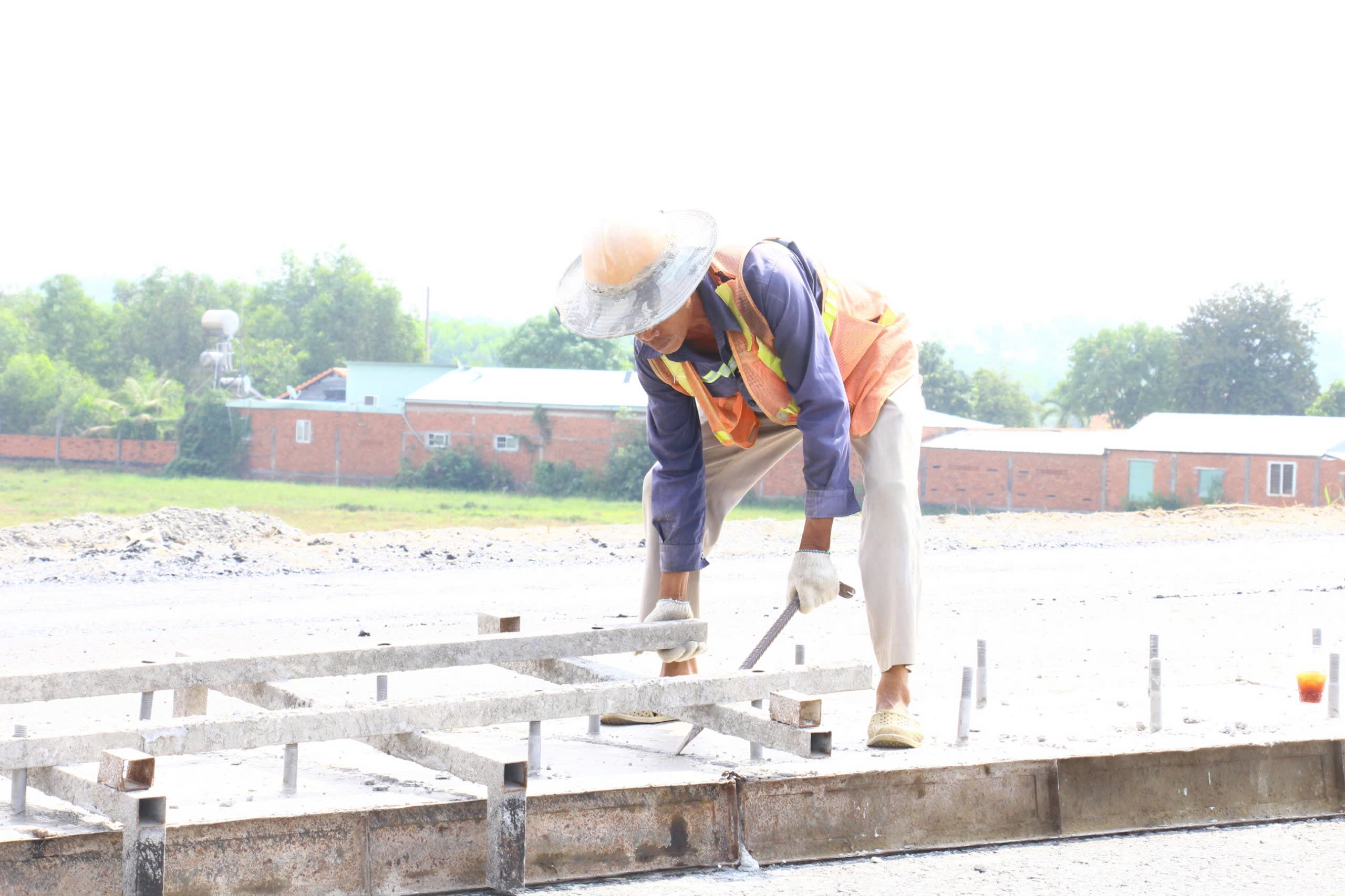 Bên cạnh đó, một số công nhân đang đo đạc để đảm bảo độ chính xác trong quá trình thi công.