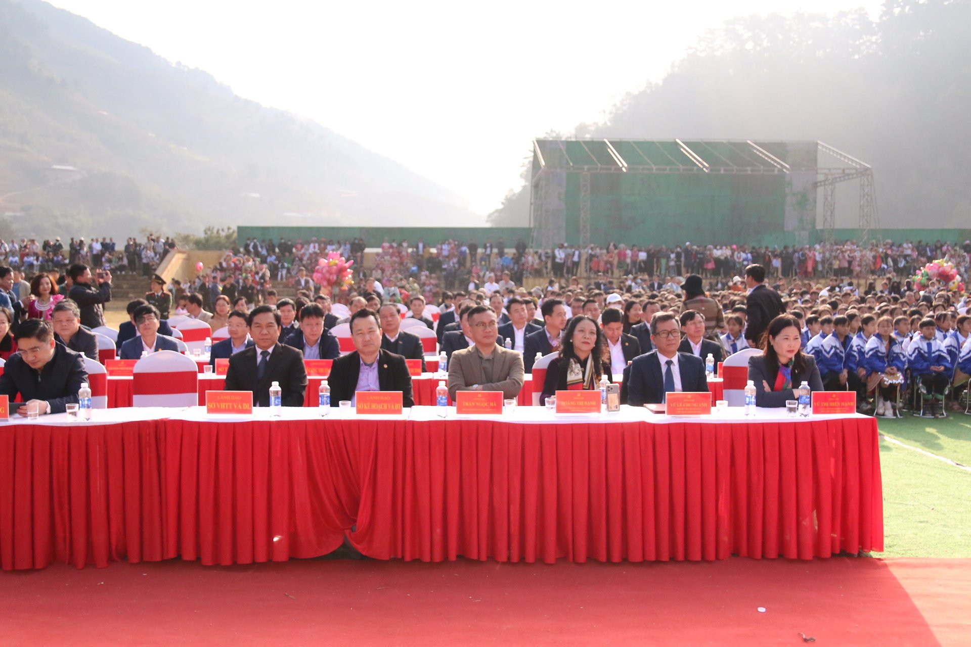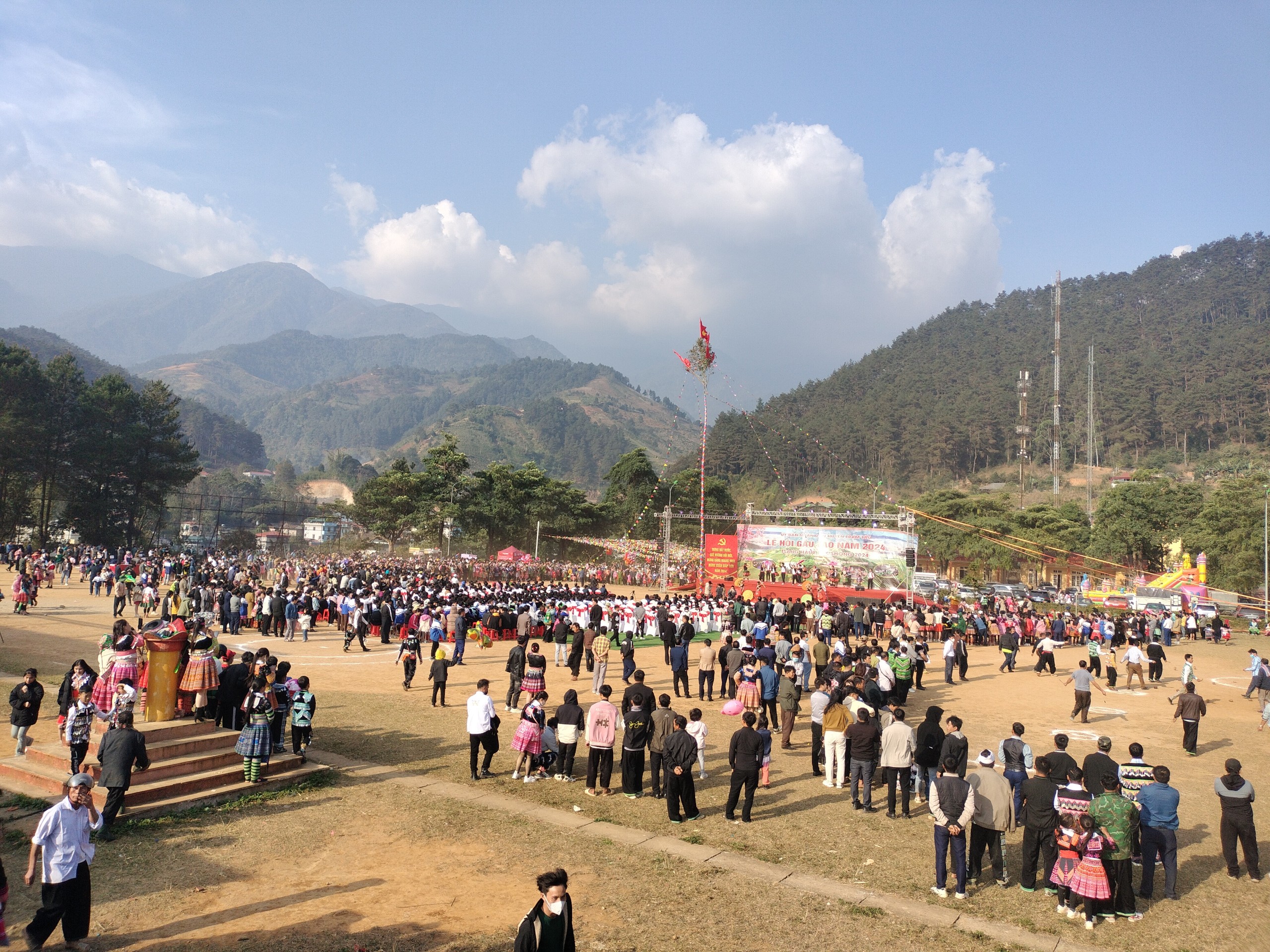 Ngay từ sớm 18/2 (mùng 9 Tết), theo ghi nhận của PV Báo Giao thông, trên khắp nẻo đường trung tâm huyện Trạm Tấu, tỉnh Yên Bái chật kín người đi lại, bà con cùng du khách nô nức đổ dồn về sân vận động huyện vui lễ hội Gầu Tào.
