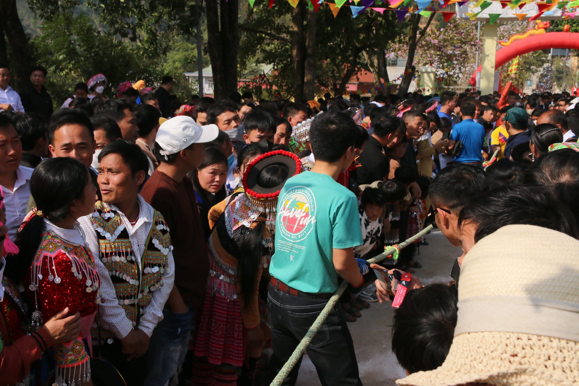 Sau nghi thức, người dân tham gia các trò chơi dân gian mang đậm bản sắc của đồng bào Mông như: đánh cù, kéo co, đẩy gậy...
