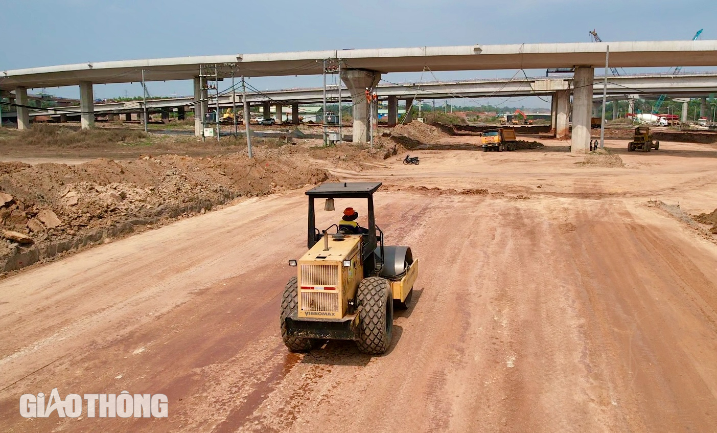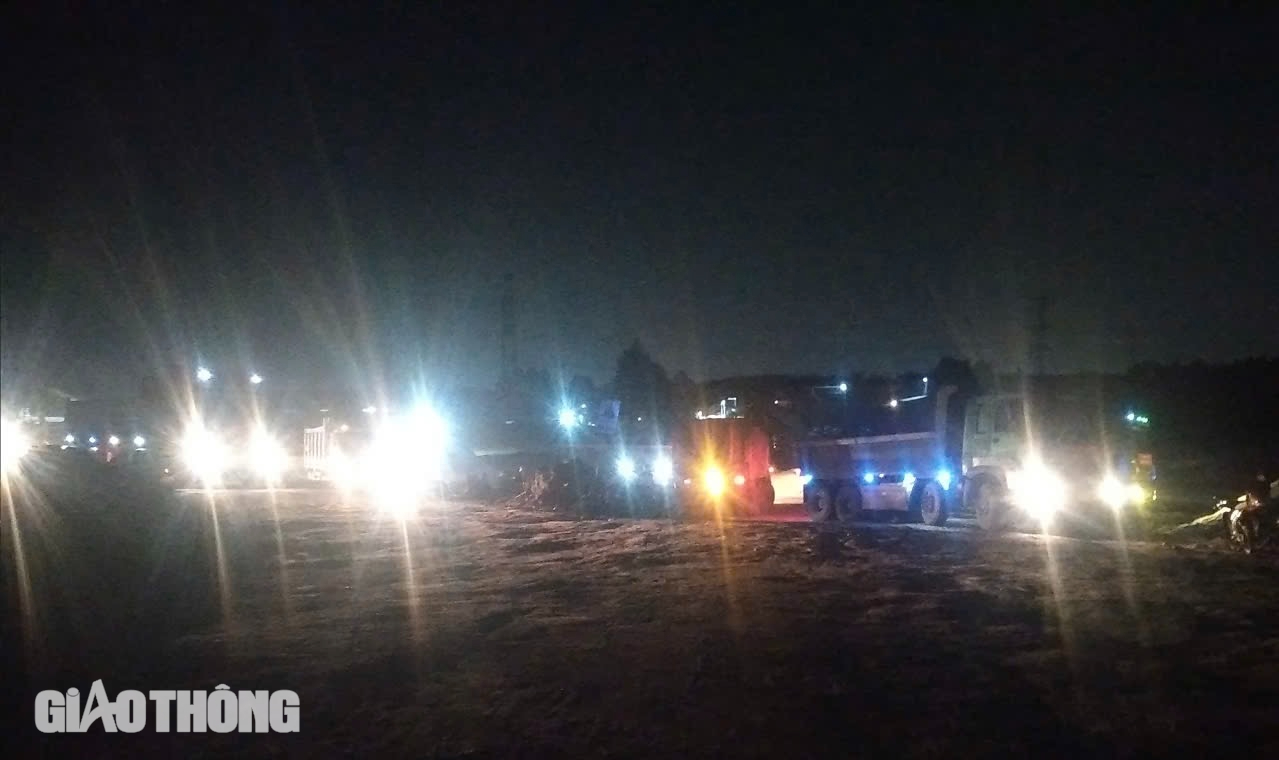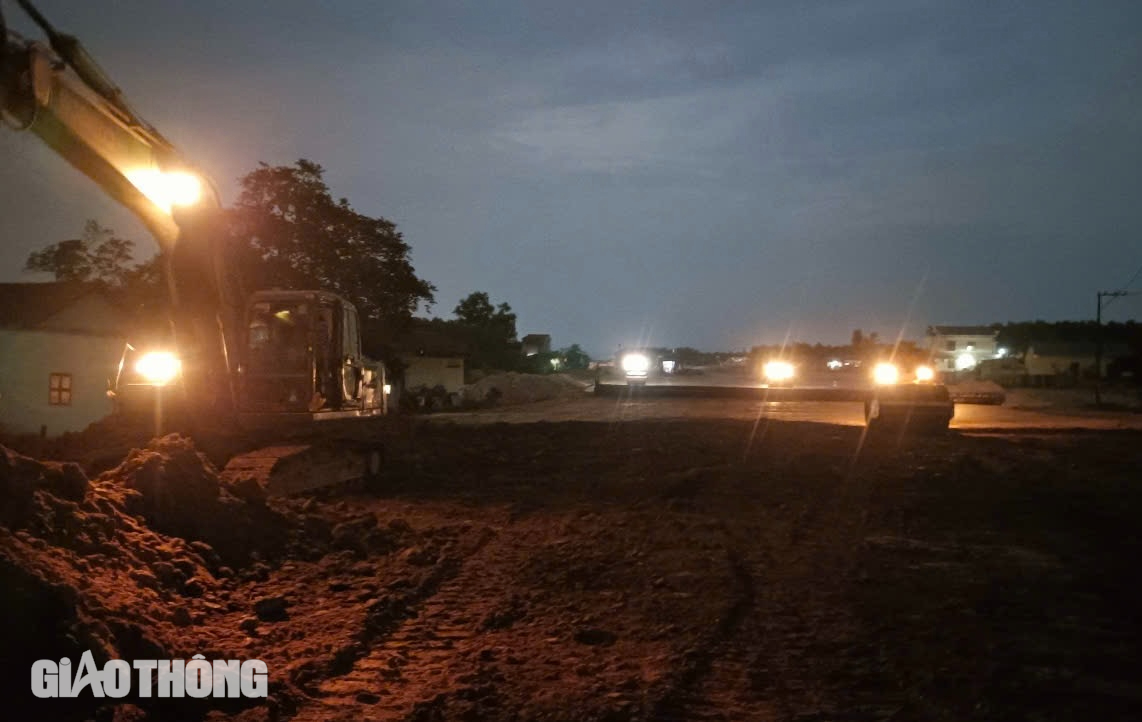Tại gói thầu số 10 liên danh Vinaconex - Tổng công ty Xây dựng số 1 - Công ty TNHH Đầu tư xây dựng DACINCO cũng đang tổ chức hơn 30 mũi thi công với 300 nhân sự, máy móc làm việc hết công suất từ sáng đến đêm. Dọc tuyến, những đoàn xe tải chở đất đá nối đuôi nhau, máy lu, máy xúc hoạt động không ngơi nghỉ. Nhiều đoạn, công nhân miệt mài thi công xuyên đêm, ánh đèn công trường sáng rực cả một vùng.