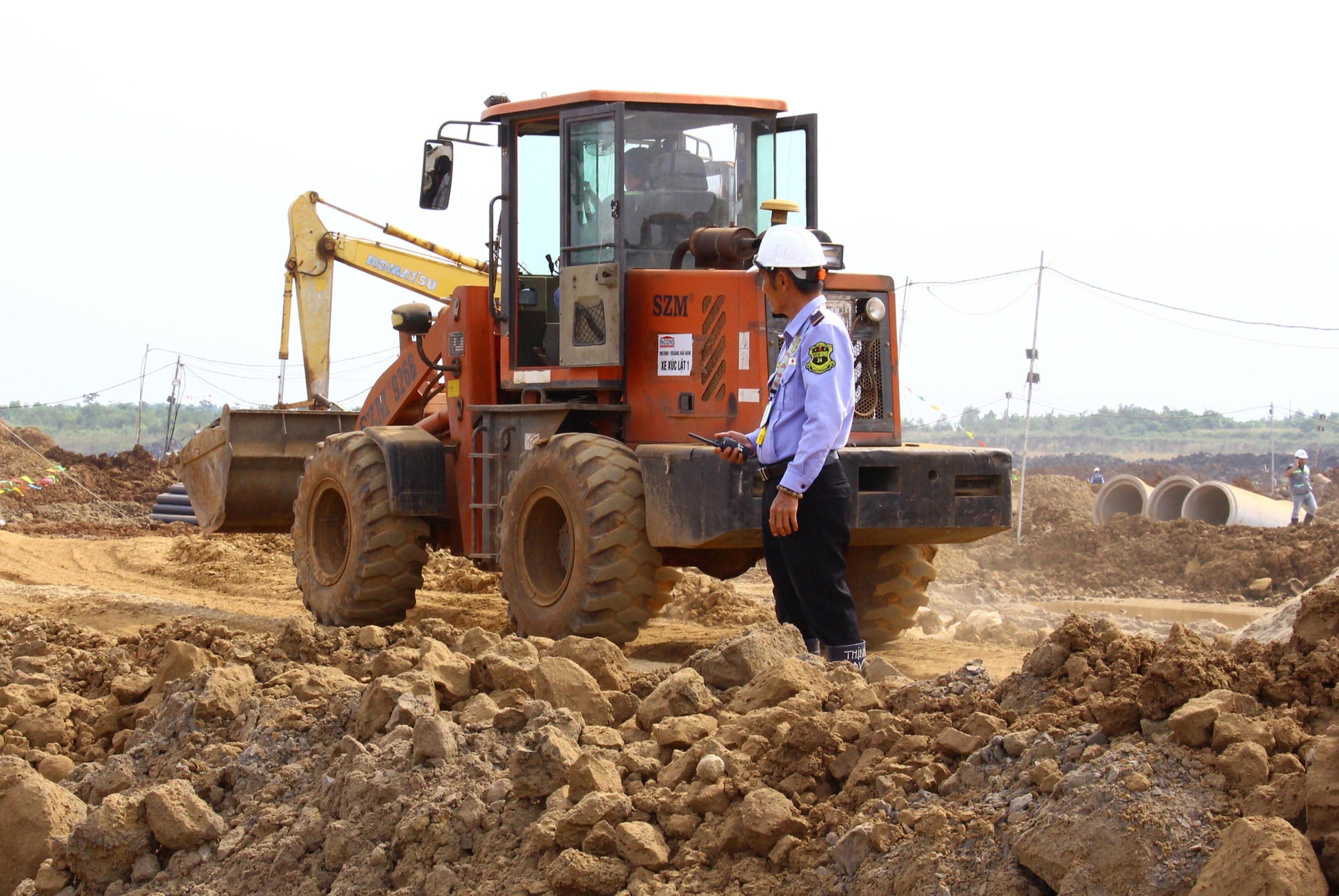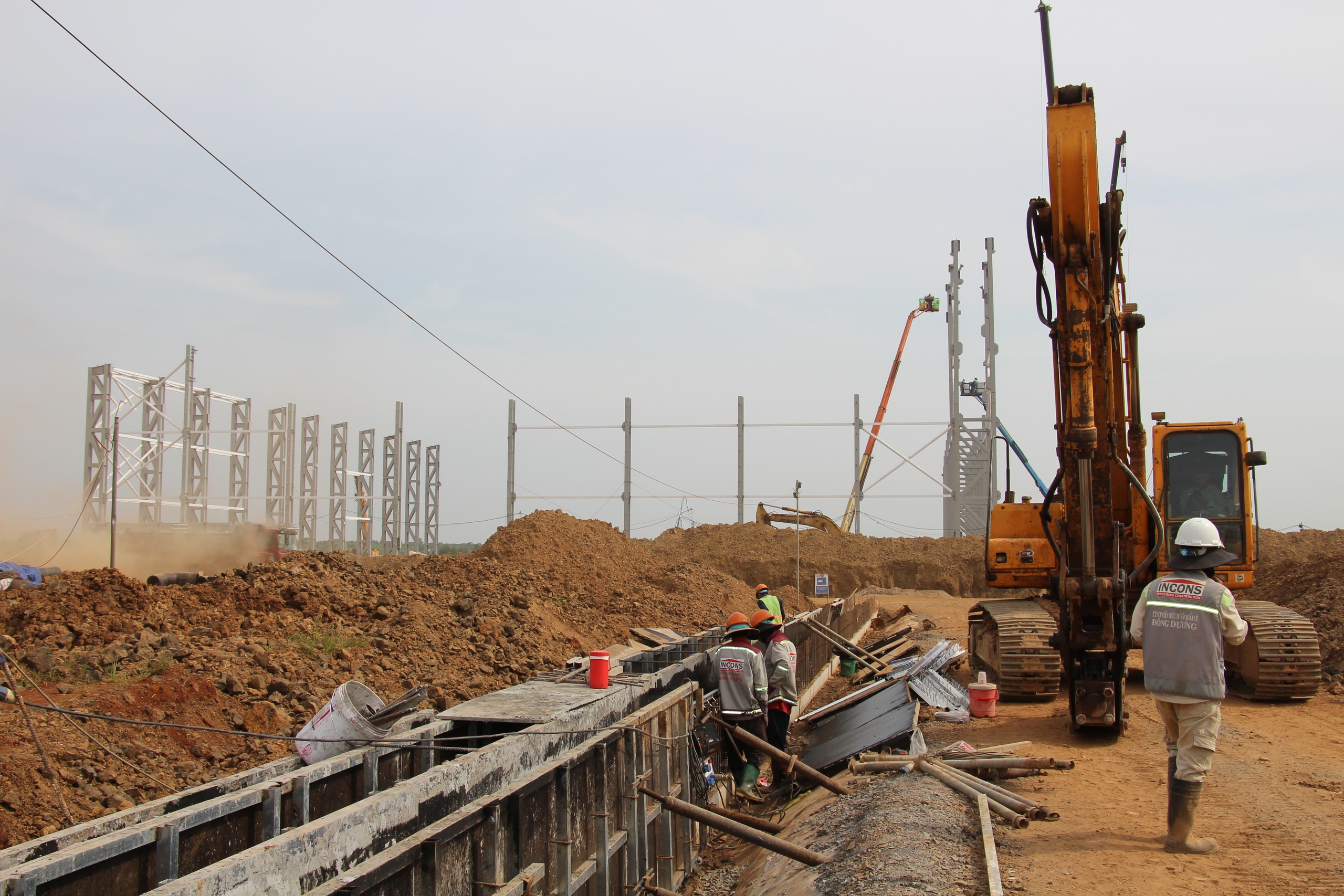 Ở khu vực hangar bảo dưỡng của VAECO làm chủ đầu tư, công trường nằm ở cuối tuyến đường cất hạ cánh nên việc tiếp cận khó khăn hơn nhiều hạng mục khác. Ngay từ giai đoạn đầu khởi công, mưa lớn kéo dài đã ảnh hưởng đến tiến độ xử lý nền móng. “Có ngày xe chở vật liệu phải chờ cả tiếng đồng hồ mới vào được vị trí thi công vì cùng lúc nhiều khu vực đào đắp còn nay cũng có những thời điểm vướng chuyện đi lại nhưng thời tiết thuận lợi nên các bên cùng nỗ lực tháo gỡ khó khăn”, một kỹ sư tại hiện trường cho biết.