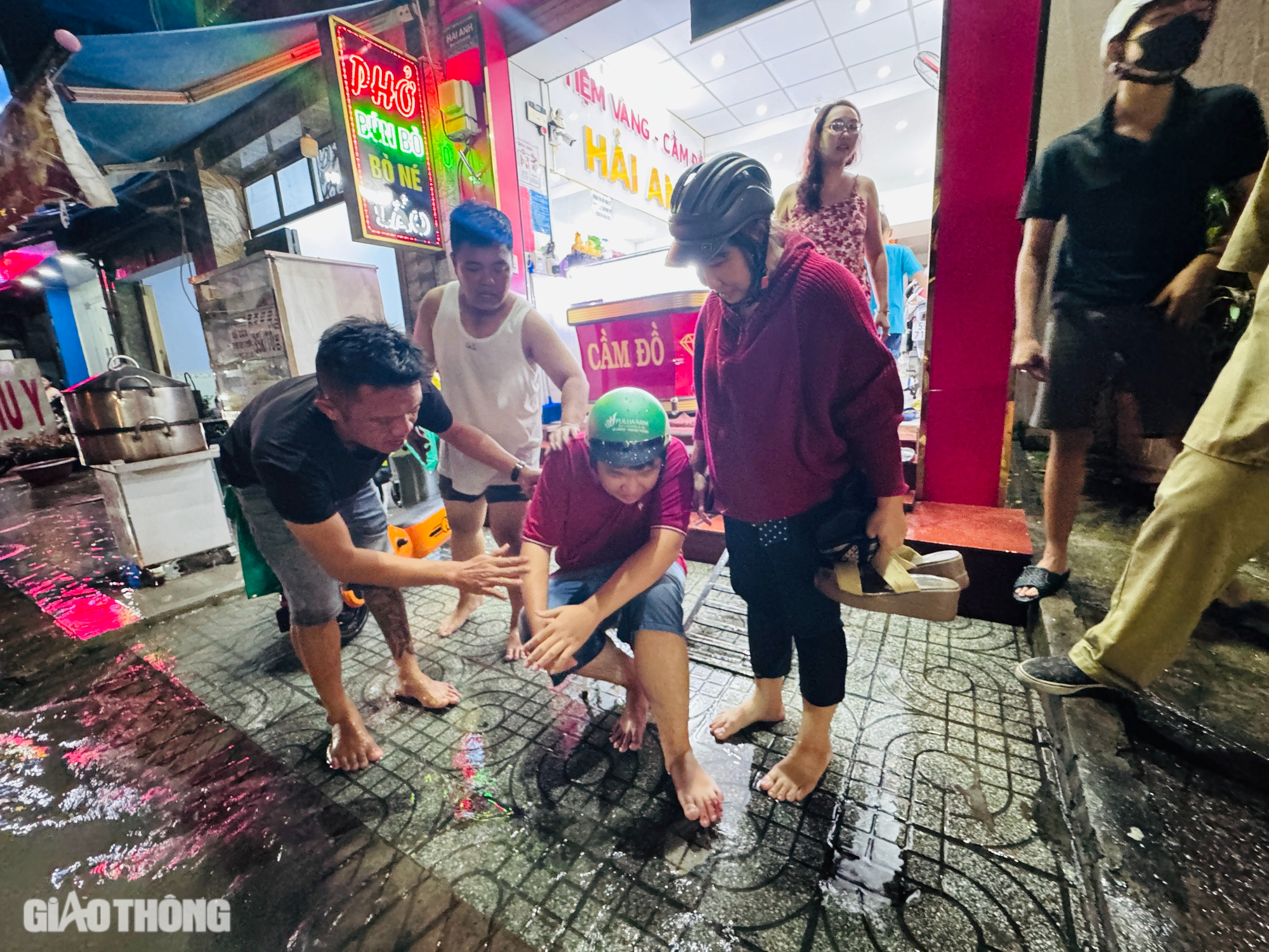 Thậm chí, có người bị thương vì không may sụp hố khi cố gắng di chuyển qua dòng nước ngập.