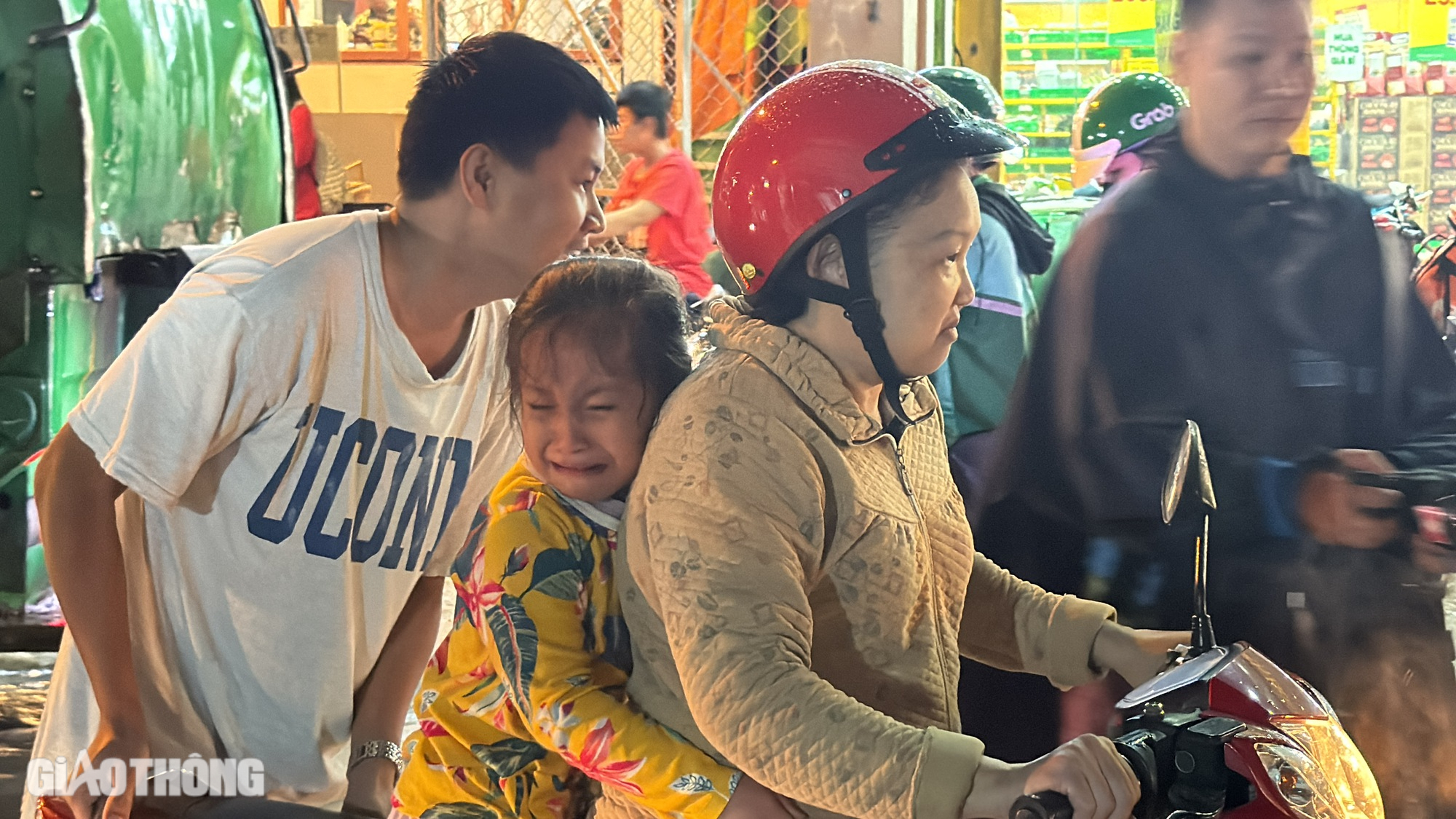 Hai bên đường, xe cộ chết máy ngổn ngang. Nhiều người tấp vào lề chờ nước rút mới dám đi tiếp.