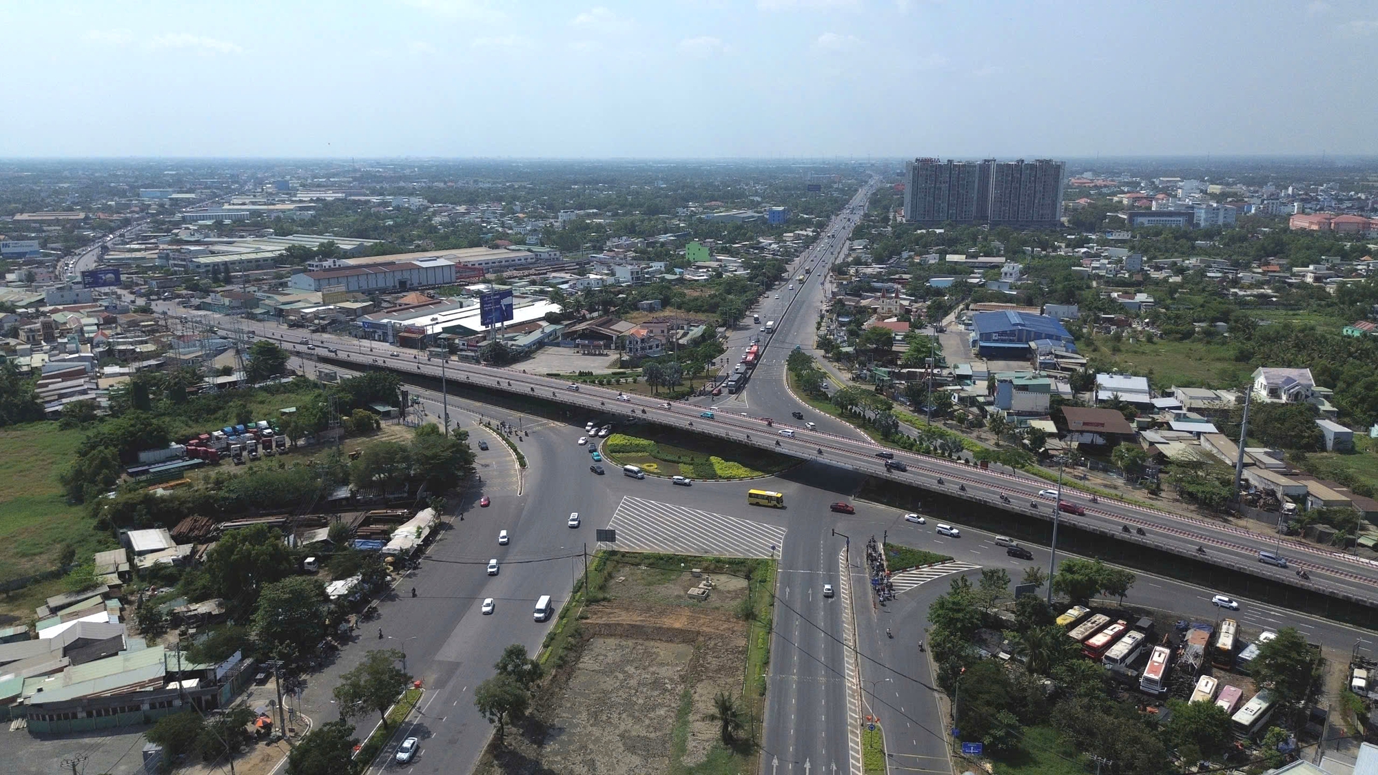 Từ năm 2025 - 2028, TP.HCM dự kiến nâng cấp, mở rộng 4 dự án BOT cửa ngõ, trong đó, dự án nâng cấp, mở rộng quốc lộ 1 đoạn từ đường Kinh Dương Vương (quận Bình Tân) đến ranh tỉnh Long An dài gần 10km, là trục đường huyết mạch kết nối TP.HCM với các tỉnh miền Tây Nam Bộ. (Trong ảnh, điểm cuối dự án giao với cao tốc Bến Lức - Long Thành với quốc lộ 1, giáp ranh tỉnh Long An).