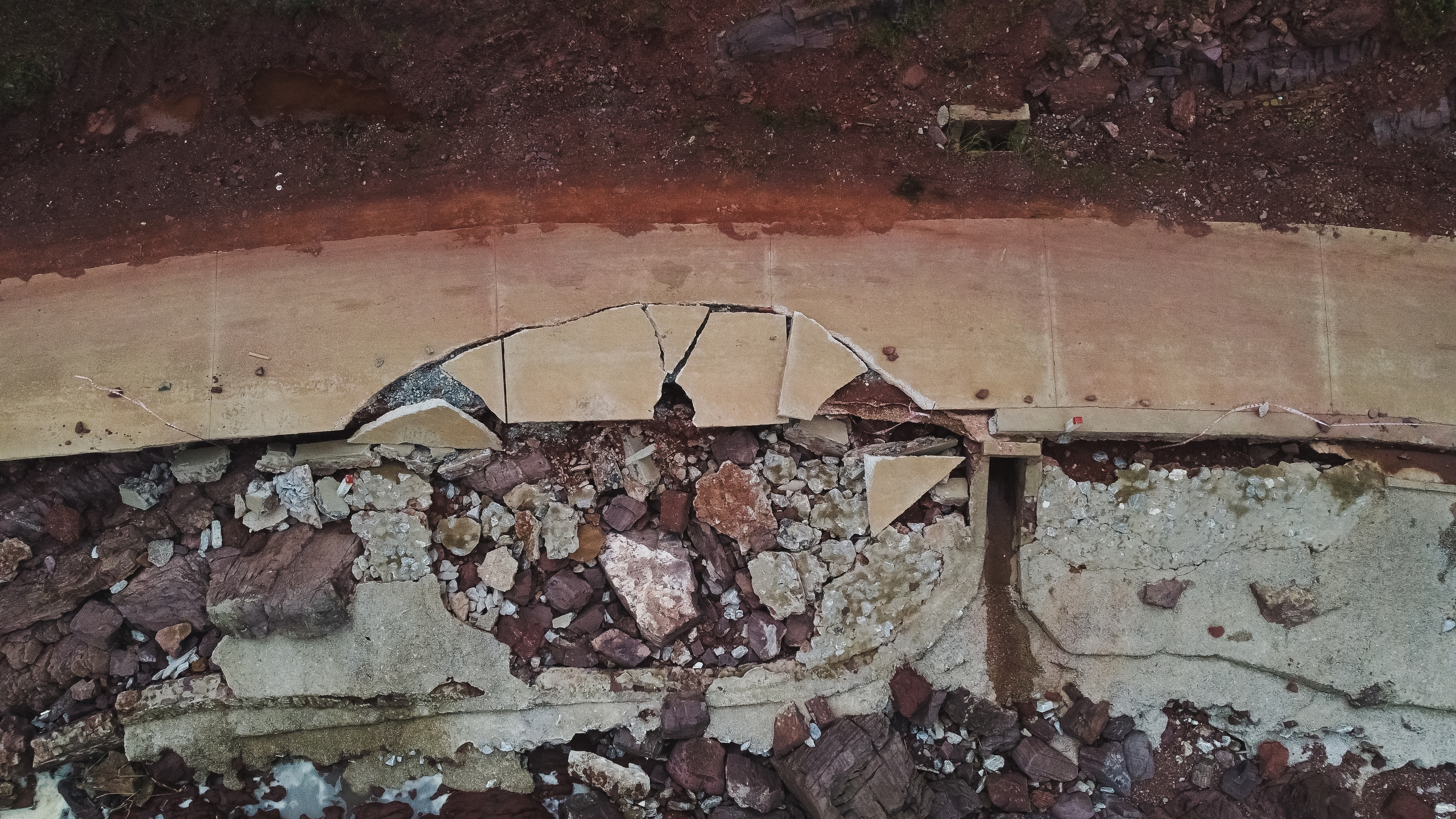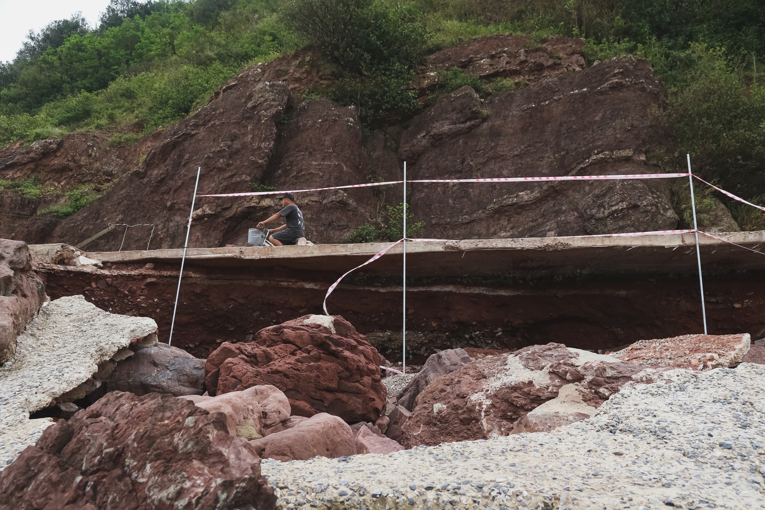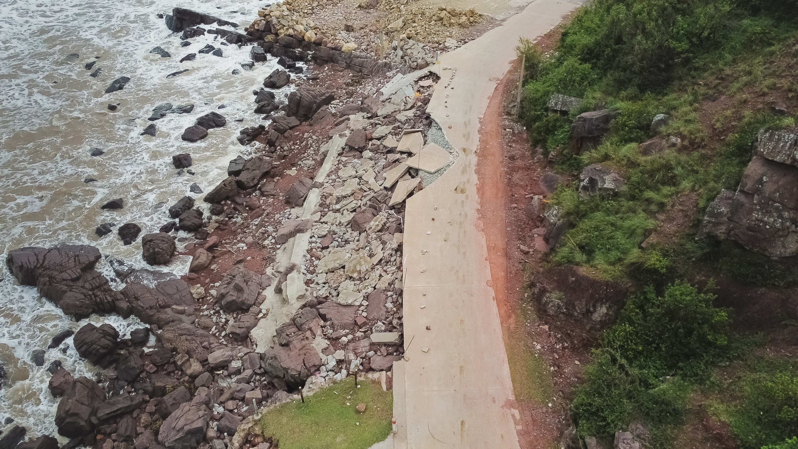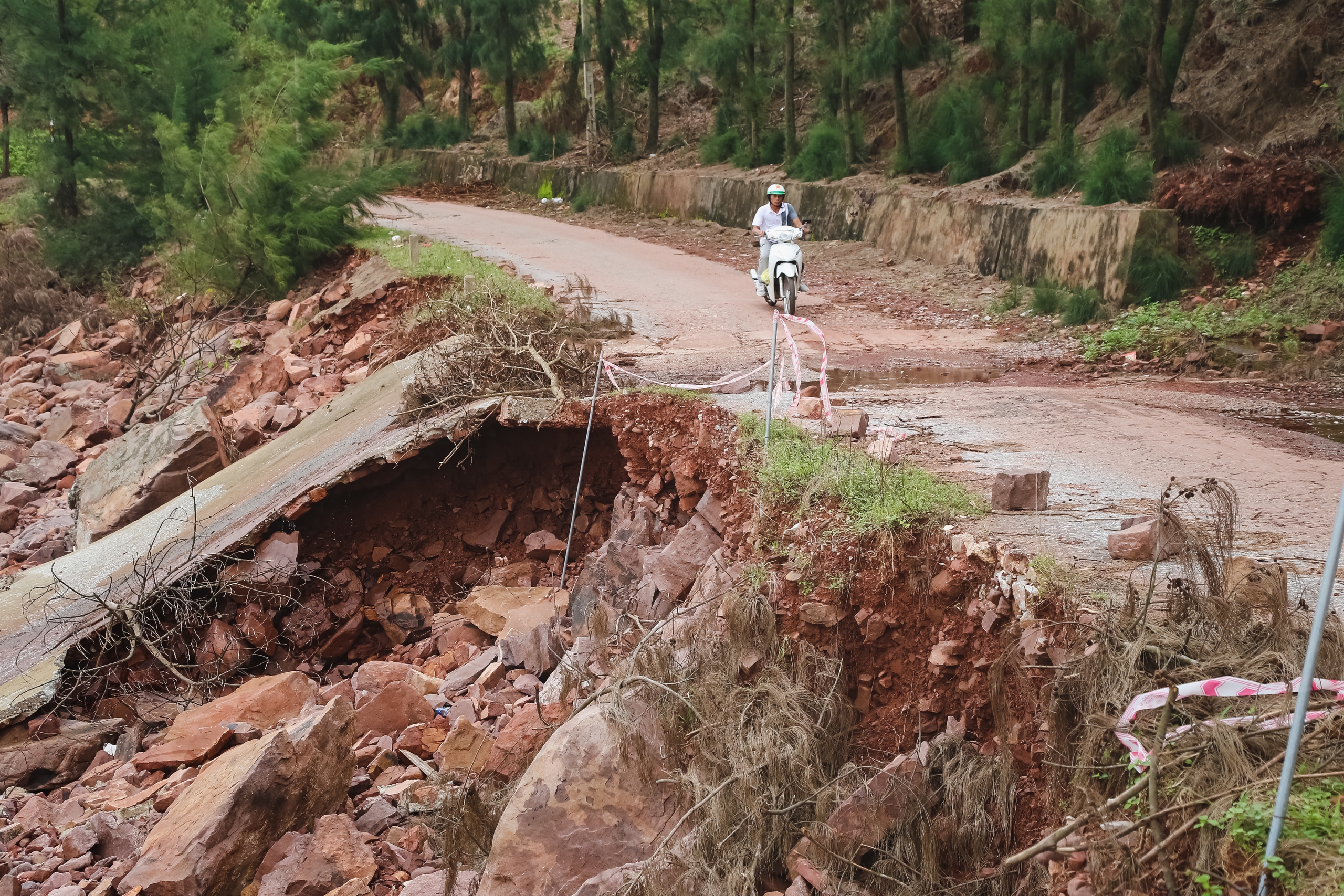 Có vị trí nền đất bị ăn quá sâu, nên mặt đường bê tông phía trên cũng bị vỡ ra, trượt xuống biển. Để đảm bảo an toàn, chính quyền địa phương đã phải căng dây phản quang để cảnh báo cho người và phương tiện tham gia giao thông.