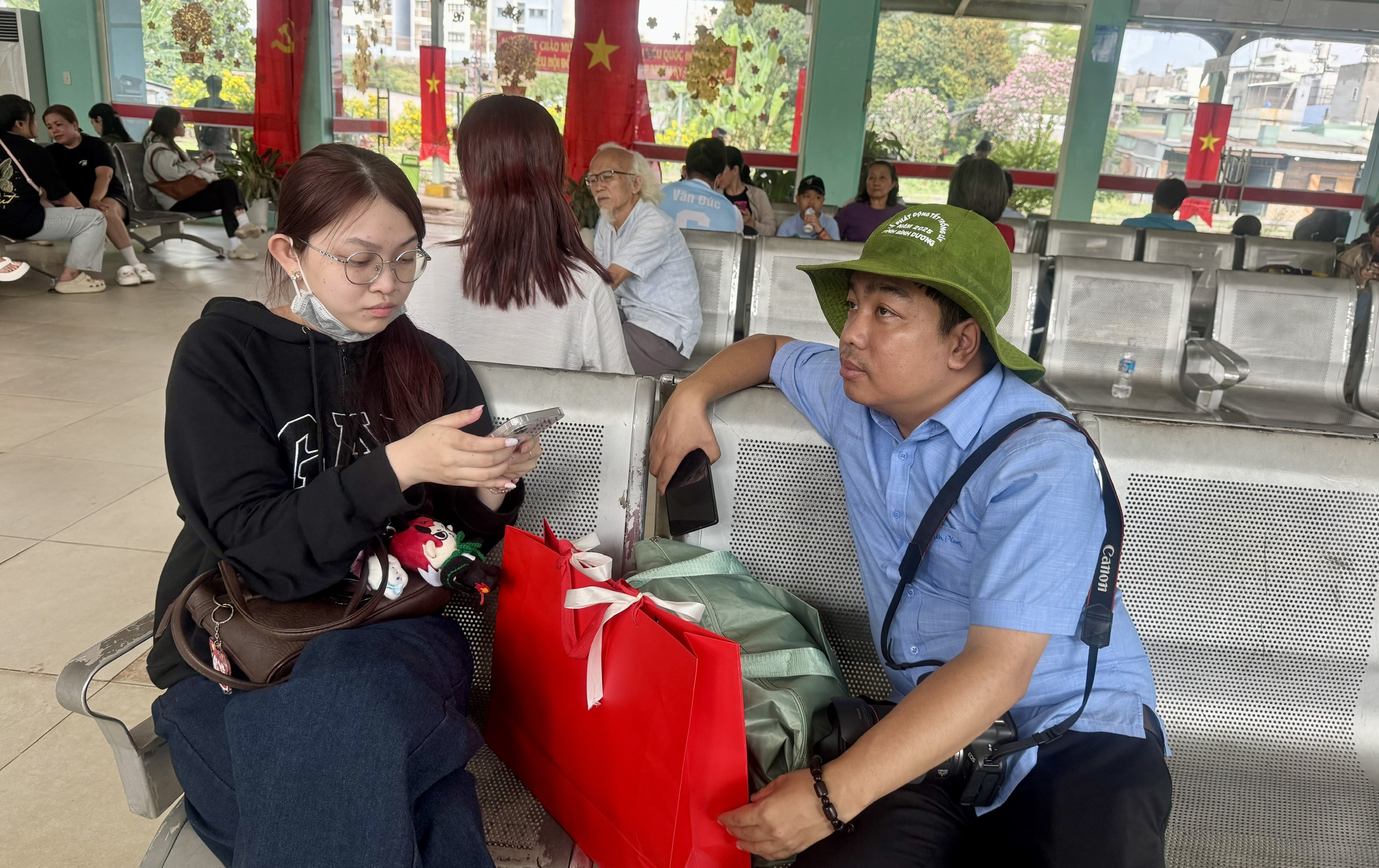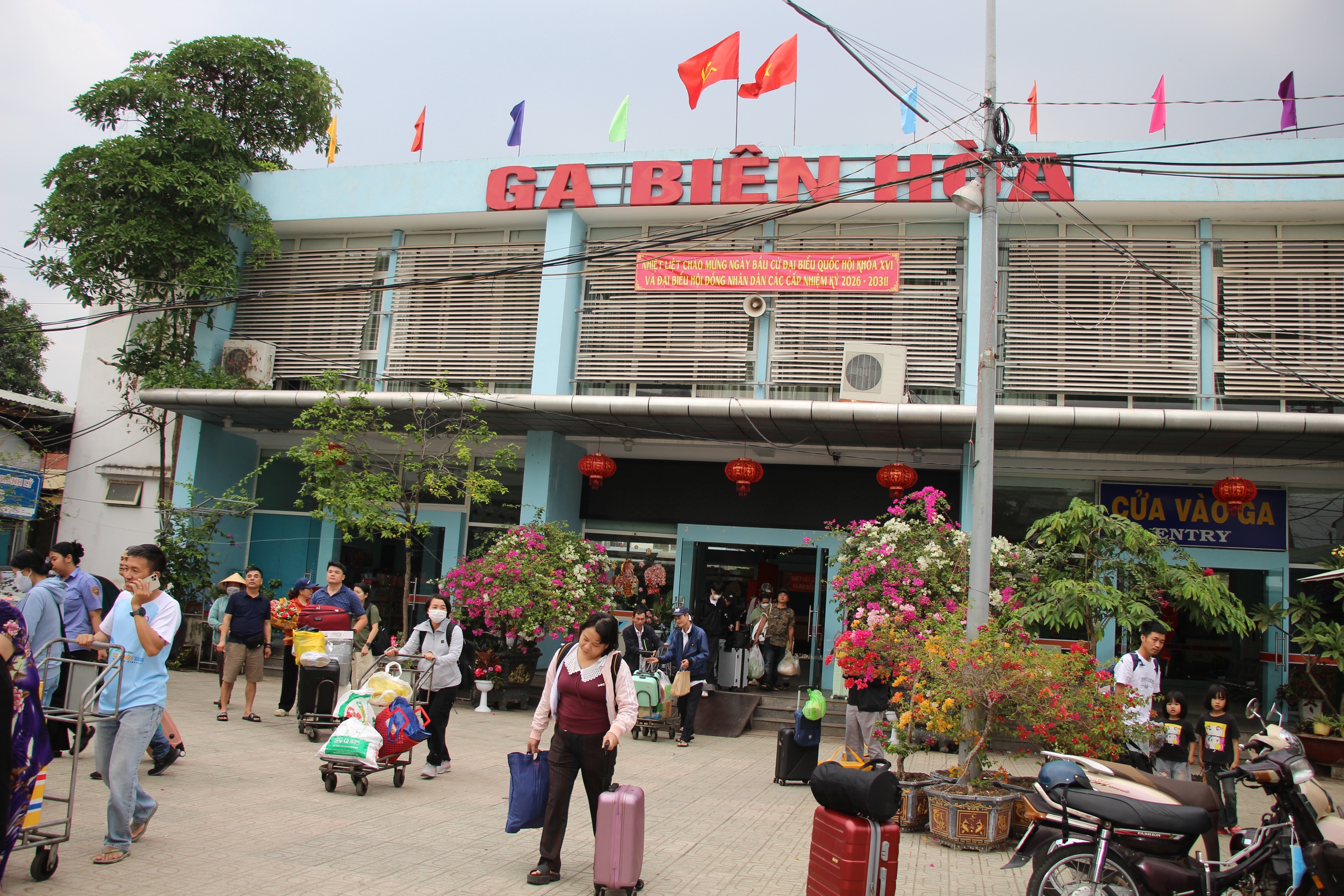 Tại khu vực trước ga, hàng chục xe khách cỡ lớn, nhỏ, xe taxi… xếp hàng chờ đón khách. Nhân viên đường sắt liên tục hướng dẫn, hỗ trợ hành khách di chuyển, sắp xếp hành lý và ổn định chỗ ngồi trước khi xe lăn bánh. Không khí tại ga Biên Hòa vì thế trở nên tất bật hơn thường ngày. Tiếng loa thông báo liên tục vang lên, xen lẫn tiếng hành khách trò chuyện, hỏi thăm lộ trình trung chuyển.