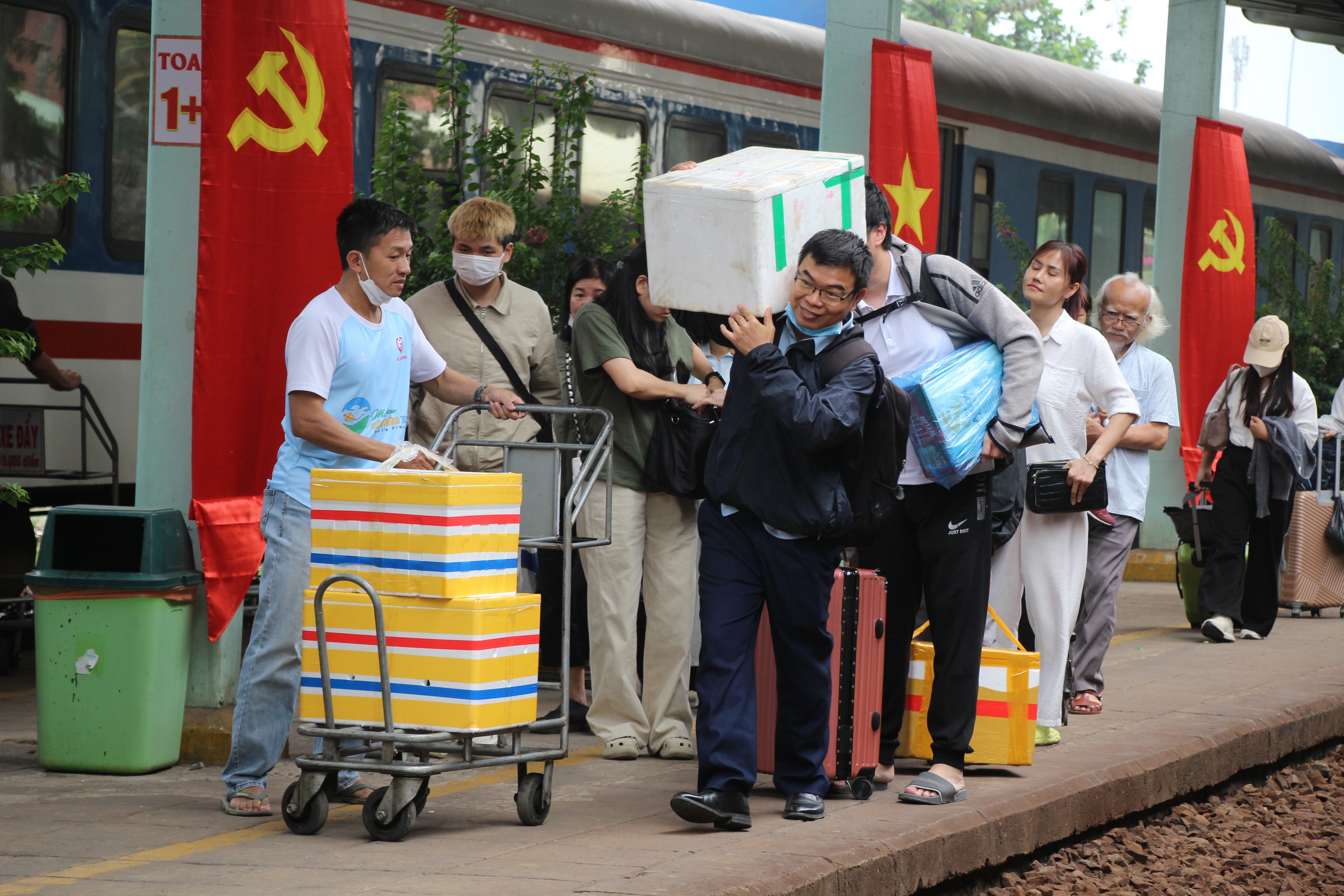 Ghi nhận trong chiều cùng ngày, đoàn tàu SE7 chạy theo hướng Bắc - Nam đã dừng tại ga Biên Hòa. Hàng trăm hành khách lần lượt xuống tàu, kéo vali, hành lý theo hướng ra cổng ga để lên các xe trung chuyển được bố trí sẵn.