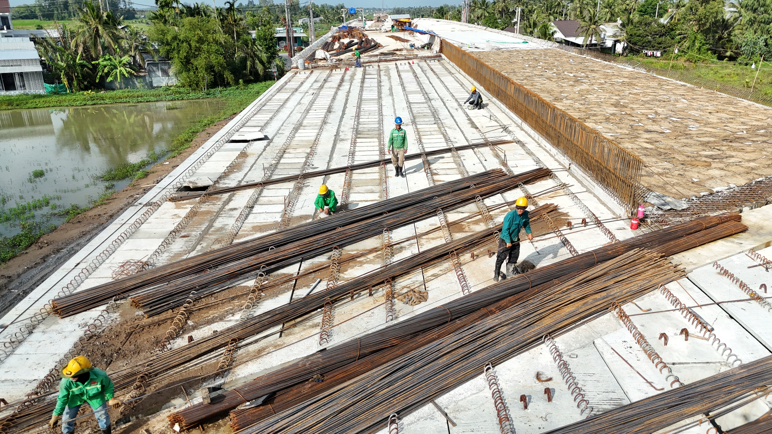 Riêng đoạn Cần Thơ - Hậu Giang, các nhà thầu đã huy động gần 1.000 công nhân, kỹ sư, triển khai 82 mũi thi công cầu, tuyến chính và tuyến nối.