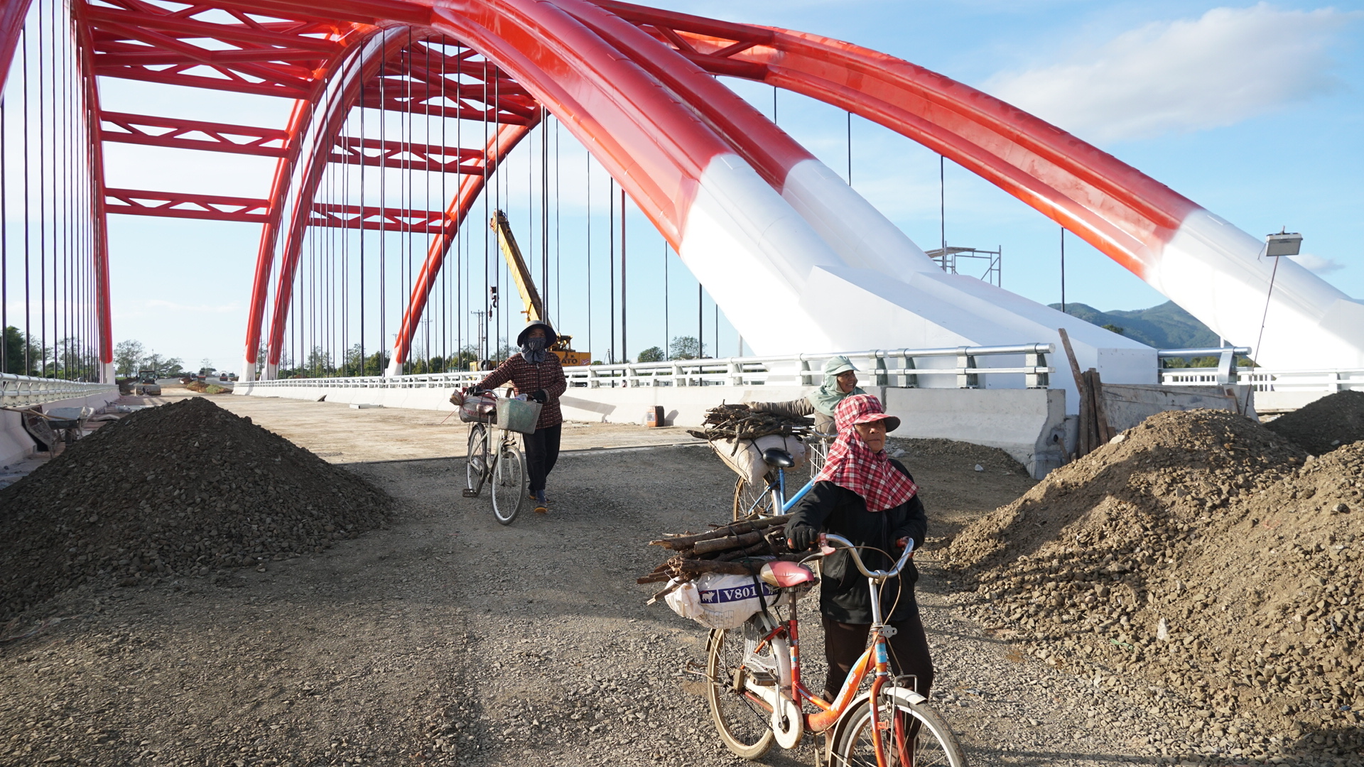 Mặc dù chiếc cầu chưa đưa vào sử dụng, nhưng nhiều người dân đã đi lại đồng thời bày tỏ vui mừng và mong muốn tuyến đường sớm được hoàn thành đưa vào sử dụng.