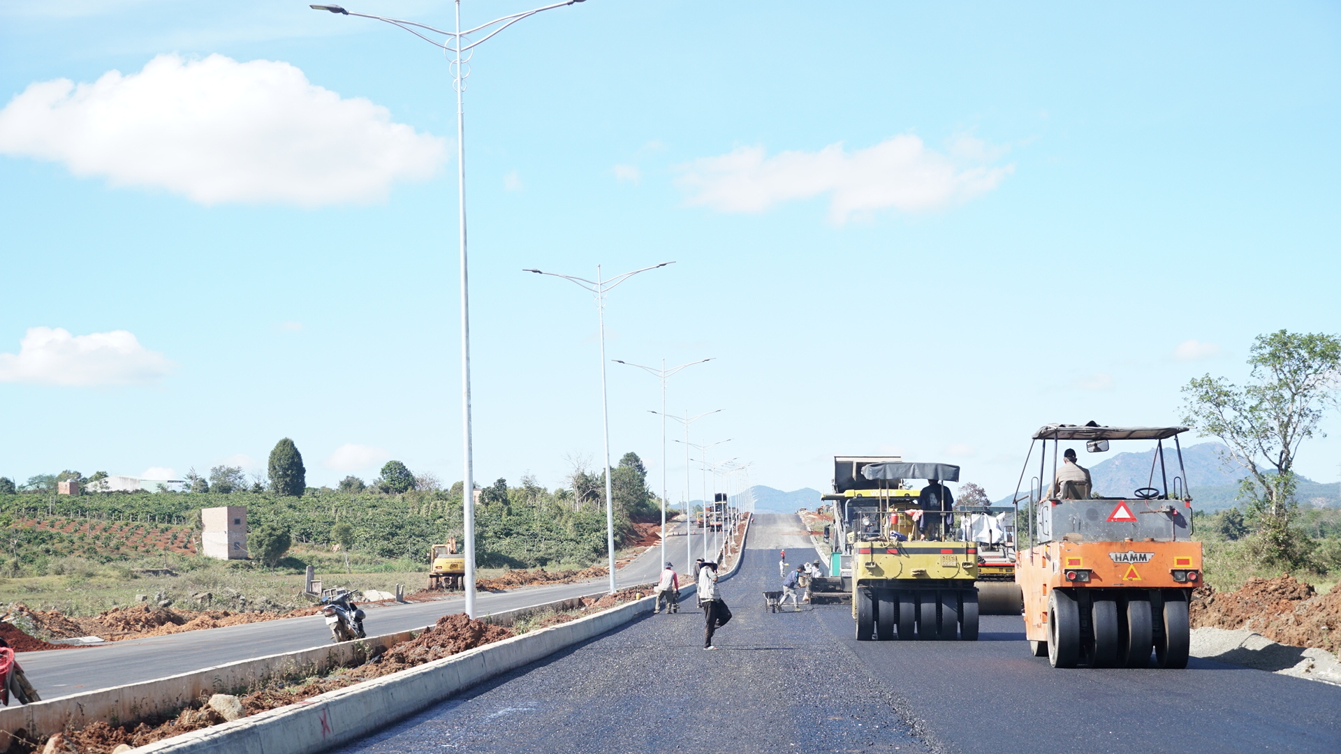 Đến thời điểm ngày 27/12, trung bình mỗi ngày đơn vị thi công thảm được từ 2-3km lớp bê tông nhựa C12. Các công trình điện chiếu sáng, trồng cây xanh cảnh quan ước tính đạt 90% khối lượng.