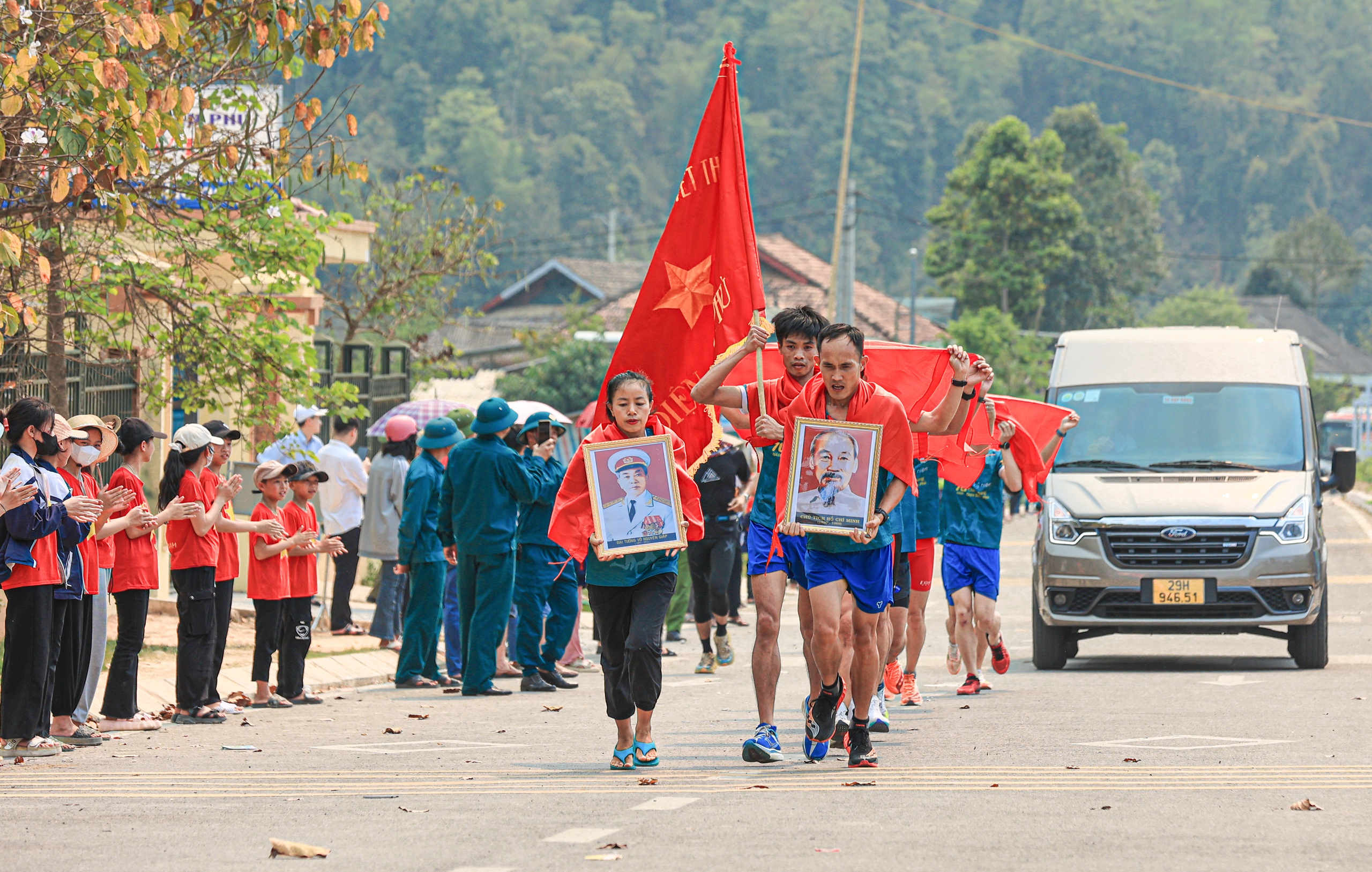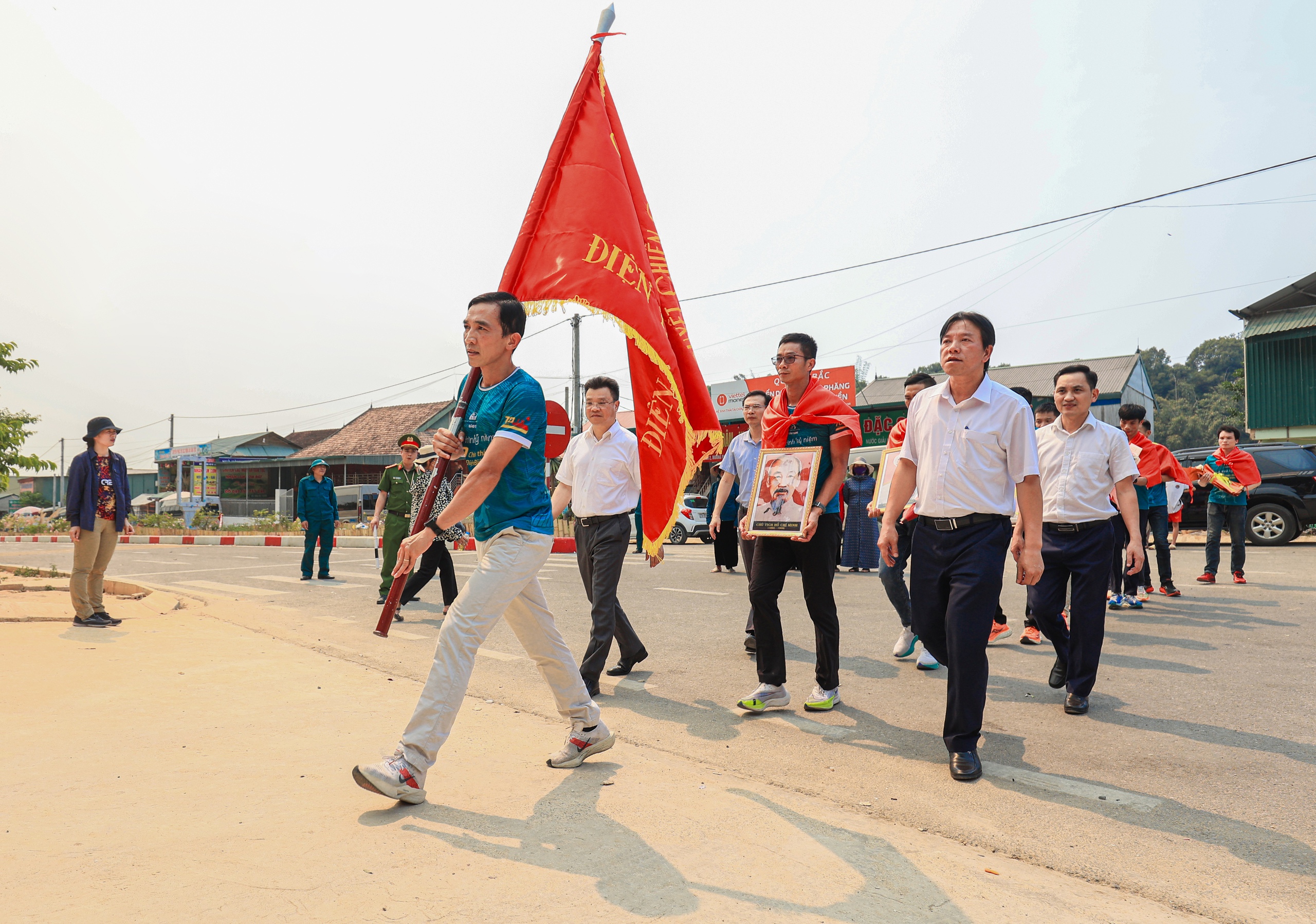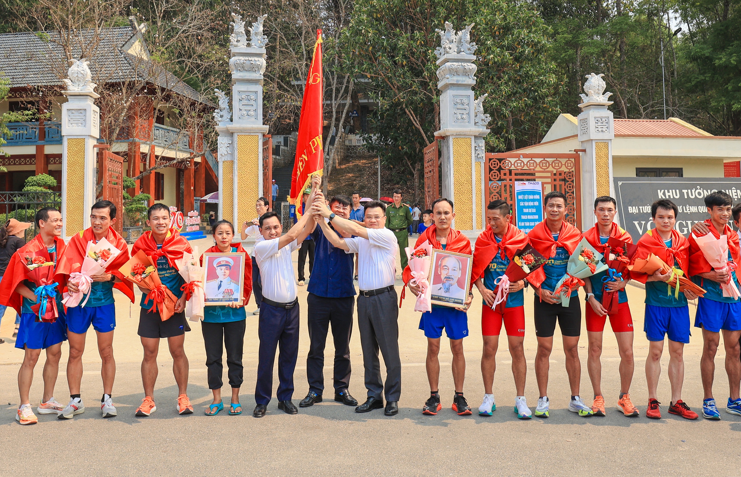 Đúng 14h ngày 13/4, tại Khu tưởng niệm Đại tướng Võ Nguyên Giáp thuộc Sở Chỉ huy Chiến dịch Điện Biên Phủ ở Mường Phăng (thành phố Điện Biên Phủ), Ban Tổ chức Giải THACO Marathon vì An toàn giao thông - Điện Biên Phủ năm 2024 tổ chức đón nhận lá cờ Quyết chiến - Quyết thắng từ 10 vận động viên (VĐV) tiêu biểu chạy tiếp sức từ khu mộ Đại tướng Võ Nguyên Giáp tại Vũng Chùa - Đảo Yến (huyện Quảng Trạch, Quảng Bình).