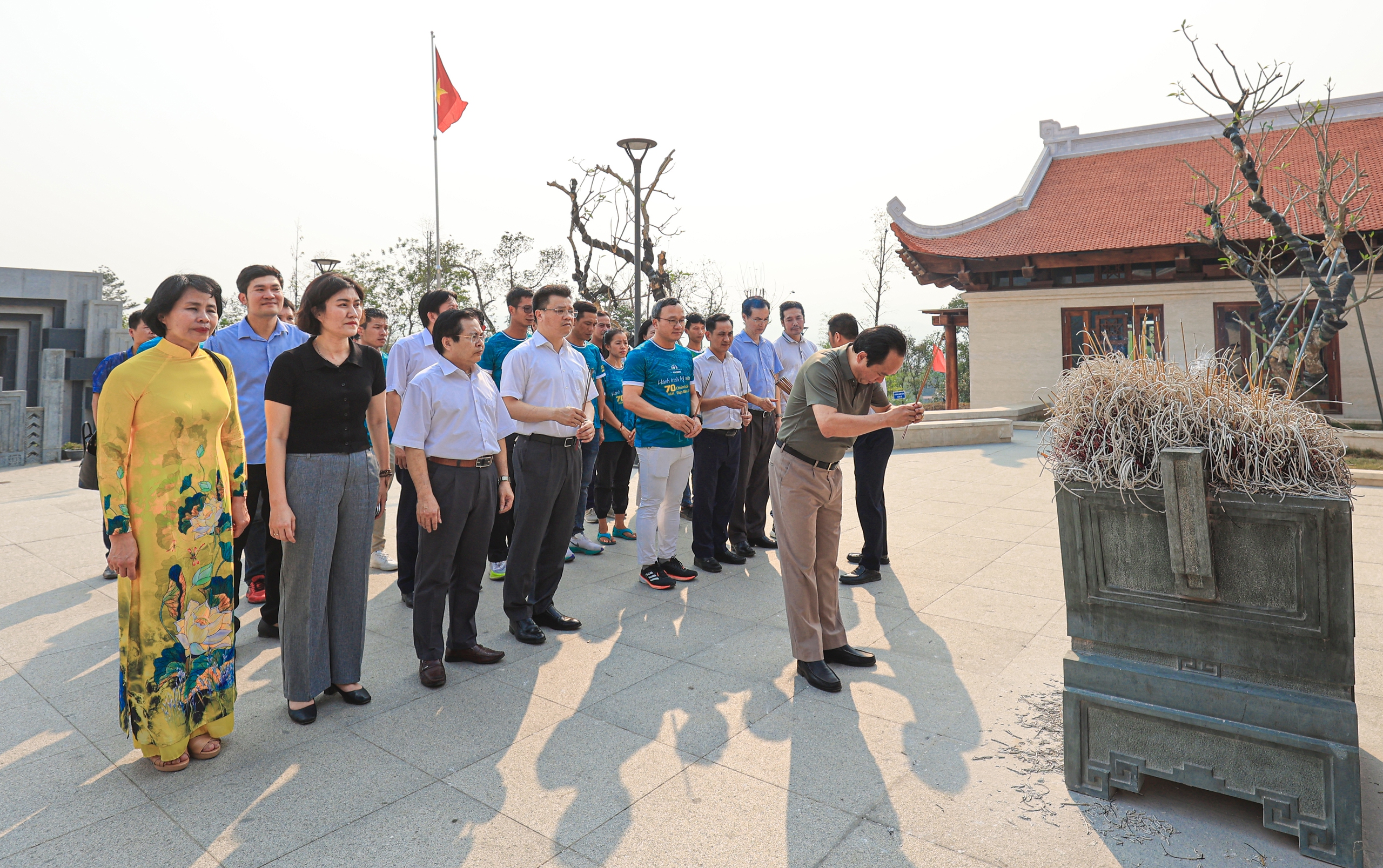 70 năm về trước, Đại tướng đã cùng quân, dân ta làm nên chiến thắng Điện Biên Phủ “lừng lẫy năm châu, chấn động địa cầu”. Trước anh linh Đại tướng, ban tổ chức và các VĐV cùng thể hiện quyết tâm tổ chức thành công, thi đấu hết mình tại Giải THACO Marathon vì An toàn giao thông - Điện Biên Phủ năm 2024 (Trong ảnh: Ông Nguyễn Đức Thắng, Phó tổng biên tập Báo Giao thông dâng hương tưởng niệm Đại tướng Võ Nguyên Giáp).
