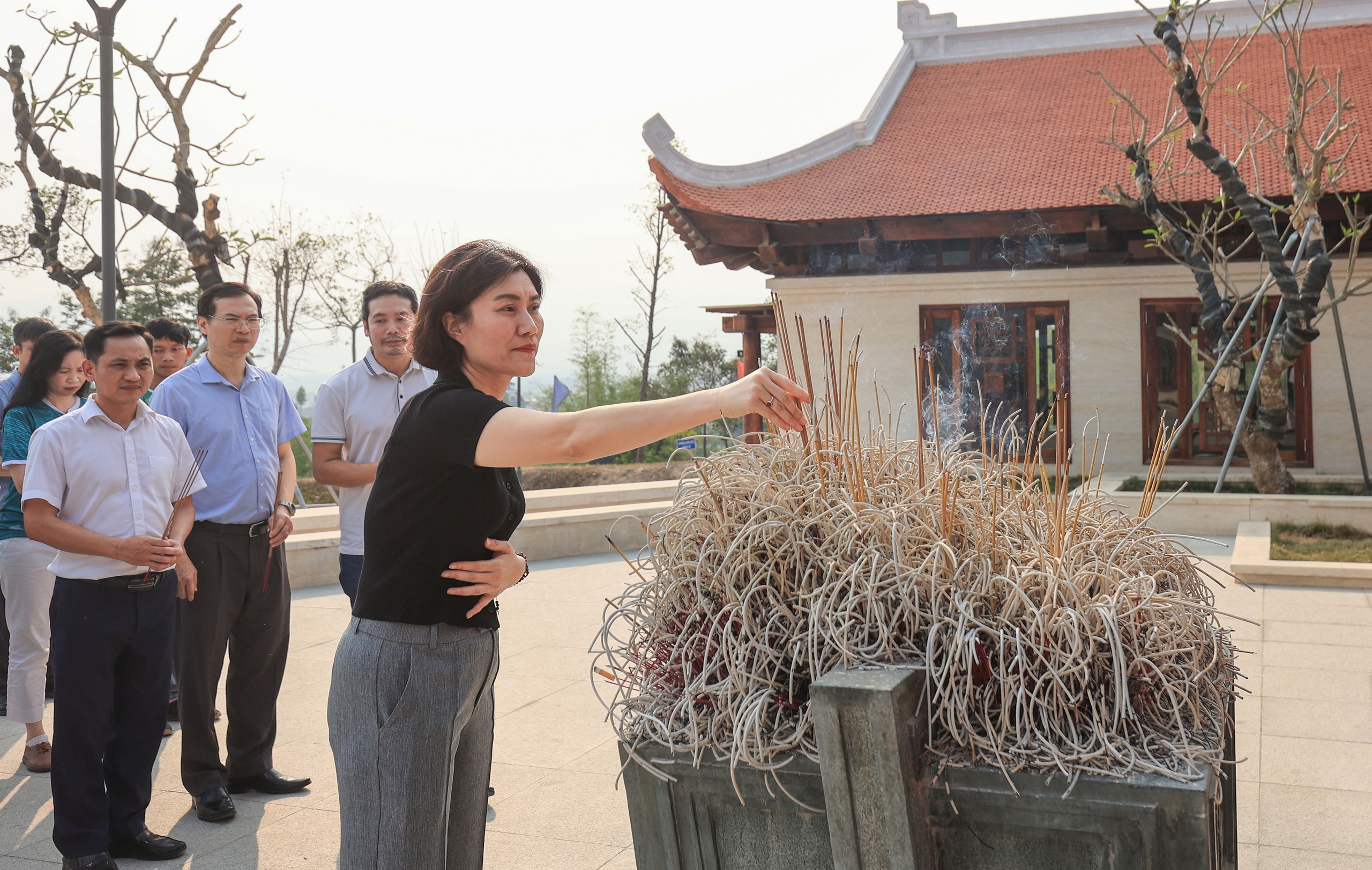 Để bày tỏ sự tri ân, lòng thành kính và biết ơn đối với các thế hệ cha anh. Đoàn đại biểu, ban tổ chức, trọng tài và các VĐV tham dự Giải THACO Marathon Vì an toàn giao thông - Điện Biên Phủ 2024 đã dâng hoa tươi thắm, thắp nén tâm hương cầu mong anh linh các liệt sỹ và đồng bào tử nạn tại chiến trường Điện Biên Phủ được an giấc ngàn thu, phù hộ độ trì cho quốc thái, dân an; Đất nước Việt Nam hội nhập, phát triển; Dân tộc Việt Nam trường tồn, giàu mạnh. Giải thi đấu được tổ chức thành công tốt đẹp (Trong ảnh: Bà Nguyễn Thị Hồng Nga, Tổng biên tập Báo Giao thông dâng hương tại Đền thờ liệt sỹ chiến trường Điện Biên Phủ).