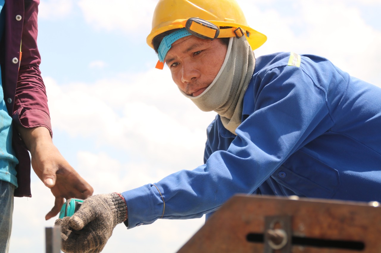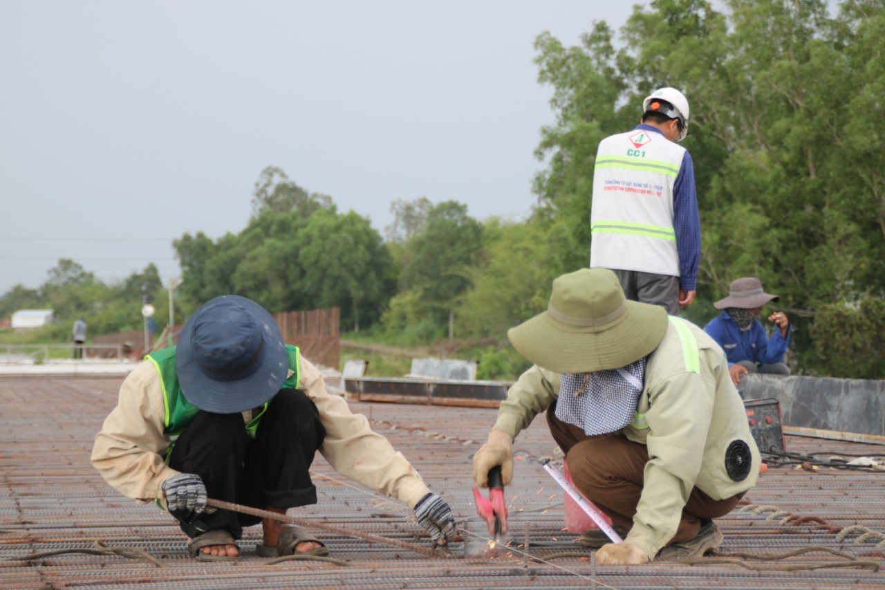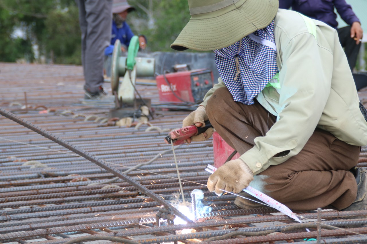 Nắng thấm vào từng thanh sắt, khối bê tông, tỏa ra hơi nóng gay gắt, cộng thêm sức nóng từ máy hàn, nhưng họ vẫn không một phút ngơi tay.