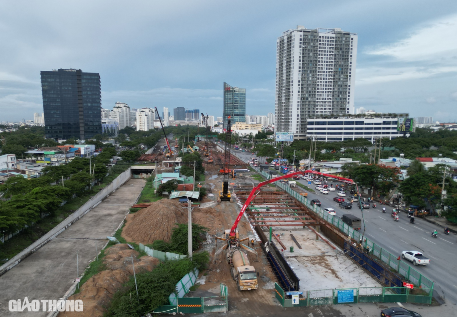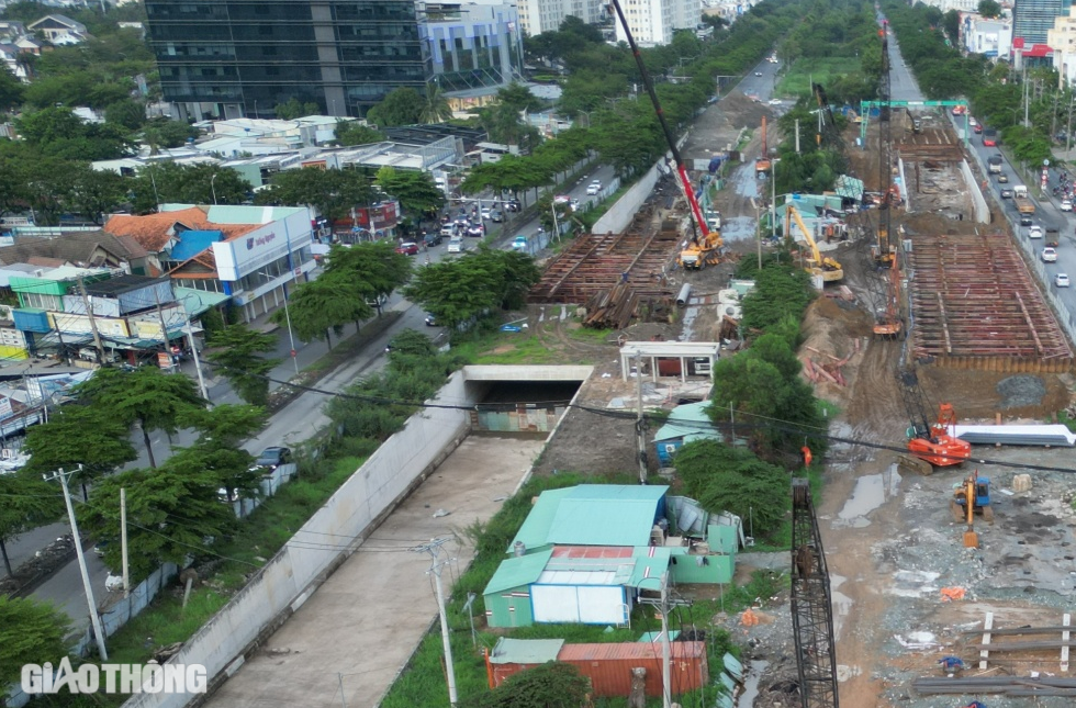 Công trình hầm chui nút giao Nguyên Văn Linh - Nguyên Hữu Thọ (quận 7, TP.HCM) được khởi công xây dựng từ năm 2020, dự kiến hoàn thành vào cuối năm nay.