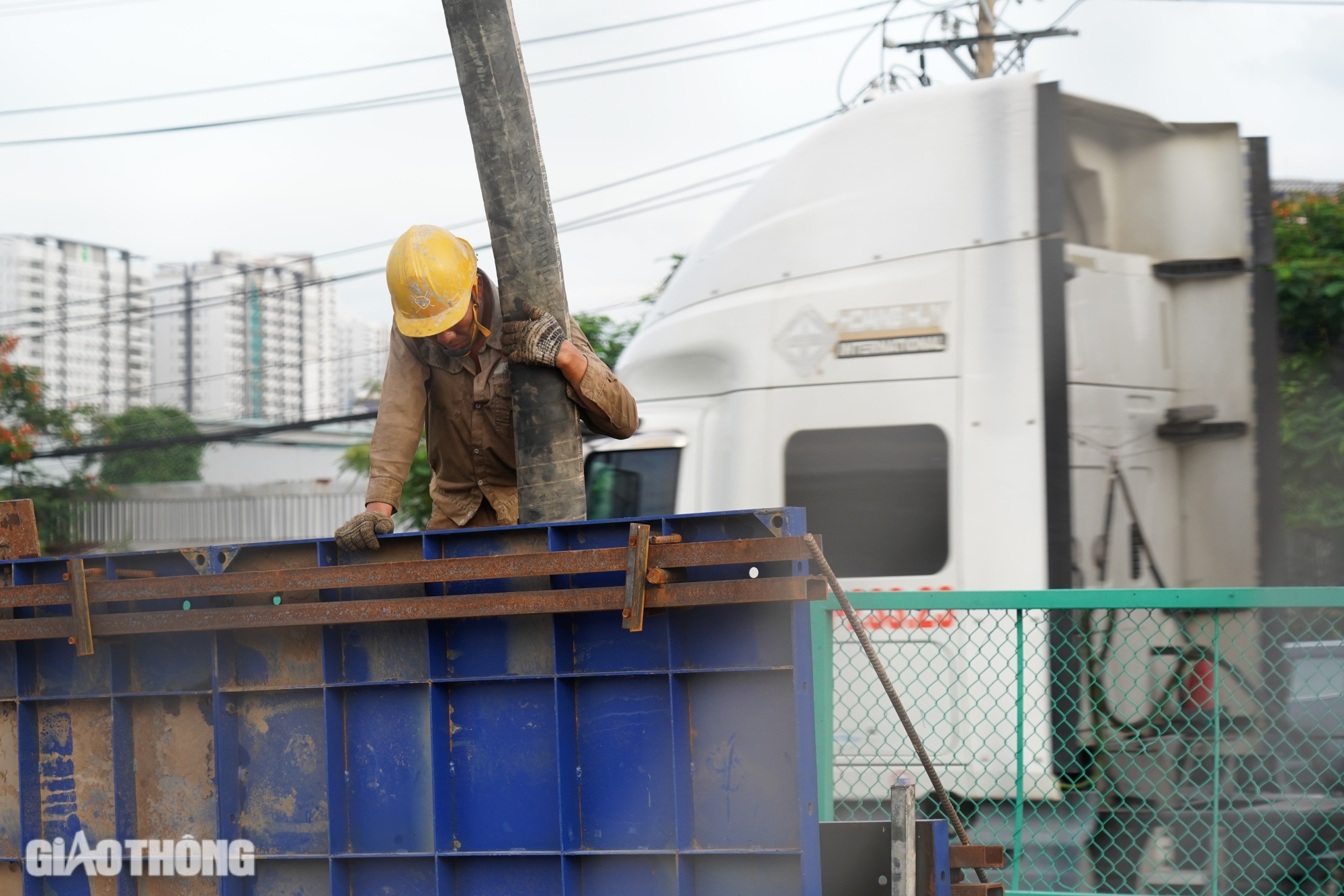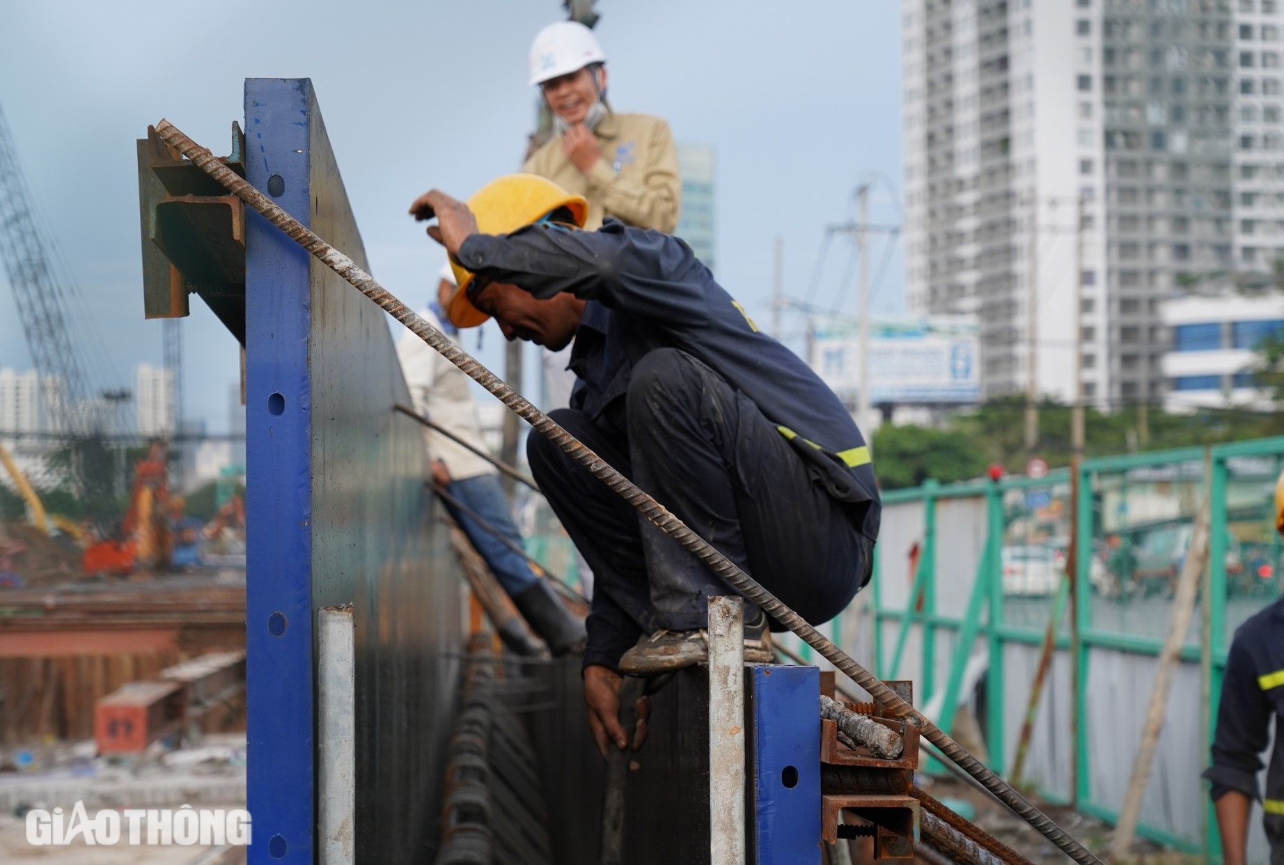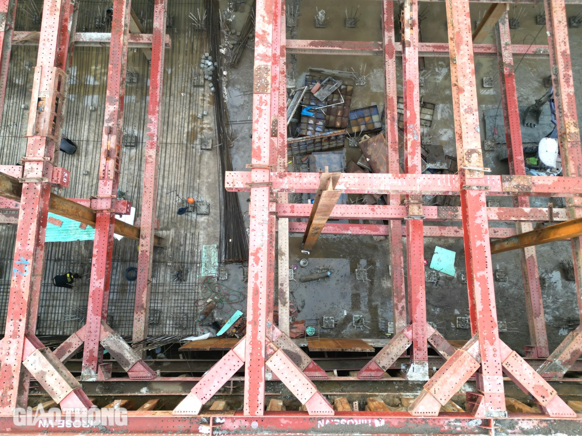 Đồng thời, đơn vị thi công làm việc cả ngày lẫn đêm, chia thành 3 ca, có thời điểm phải làm 4 kíp để đẩy nhanh tiến độ, đưa dự án về đích như kế hoạch.