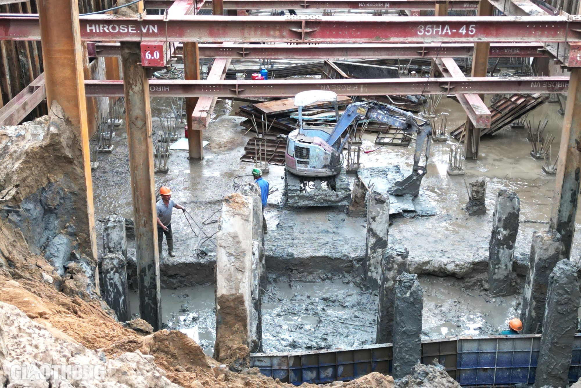 Để khắc phục khó khăn, các đơn vị thi công phải đào những hố tụ lớn, gắn máy bơm liên tục, tránh việc đất sét hóa thành bùn làm ảnh hưởng đến tiến độ của dự án.