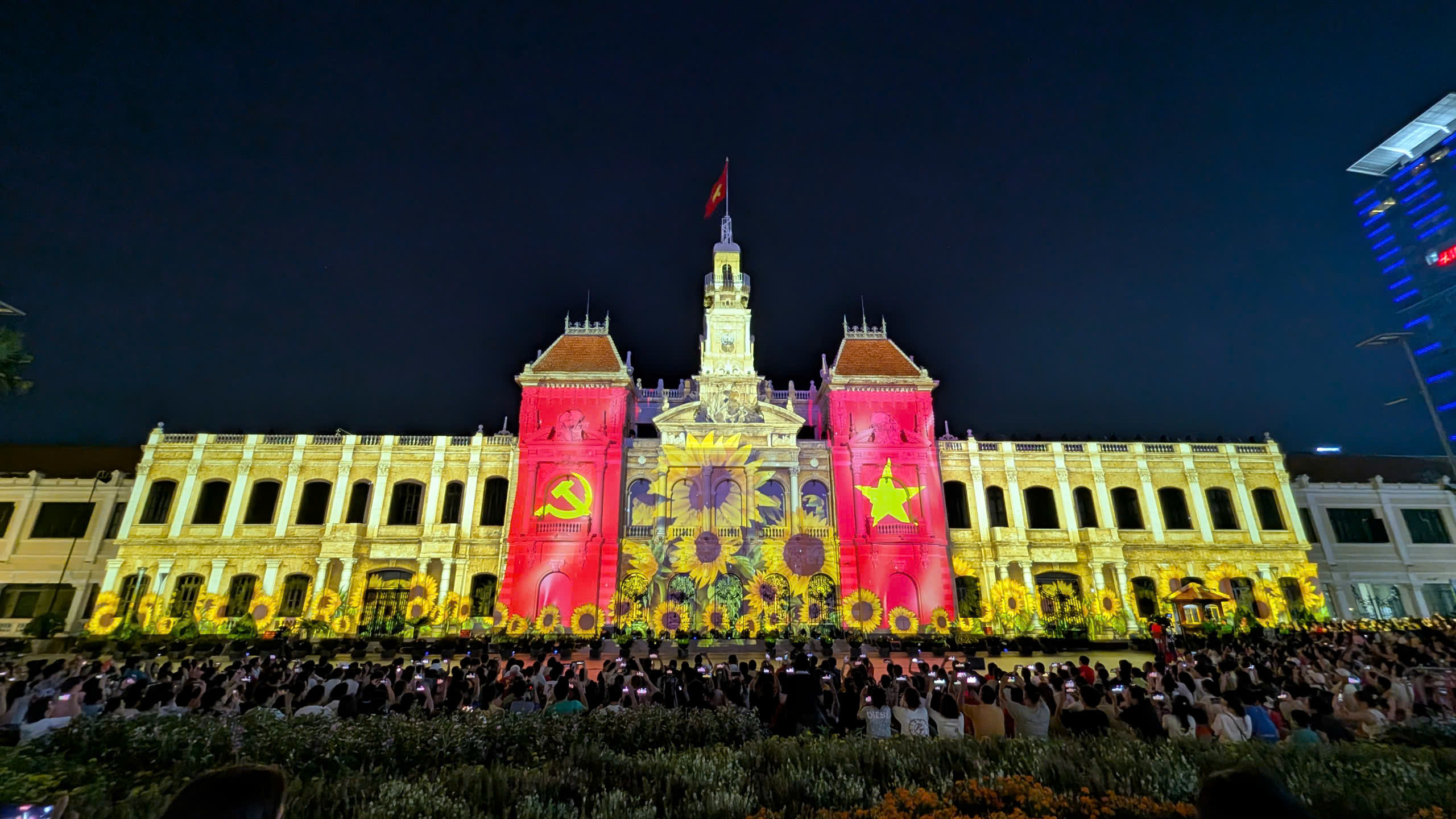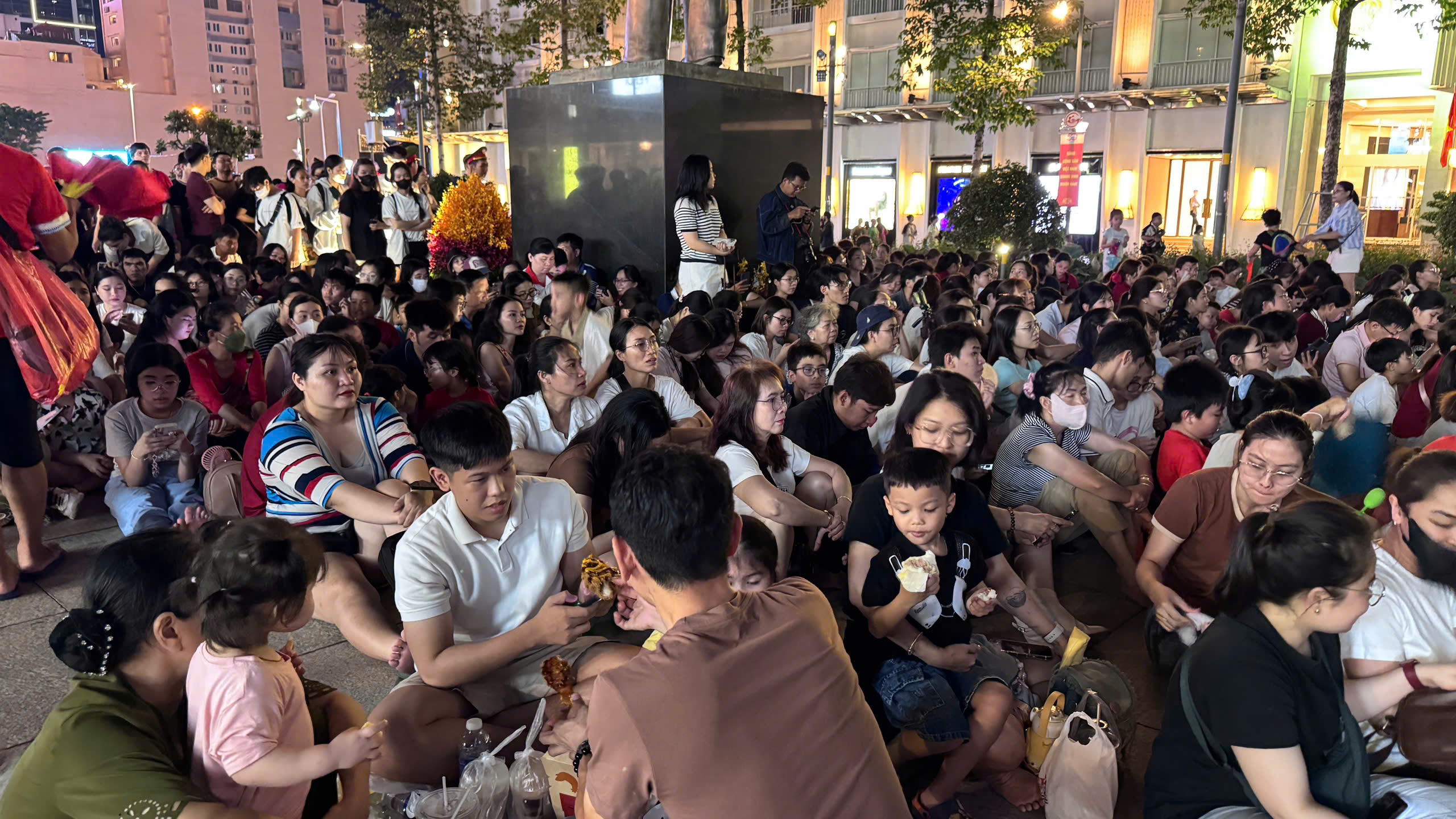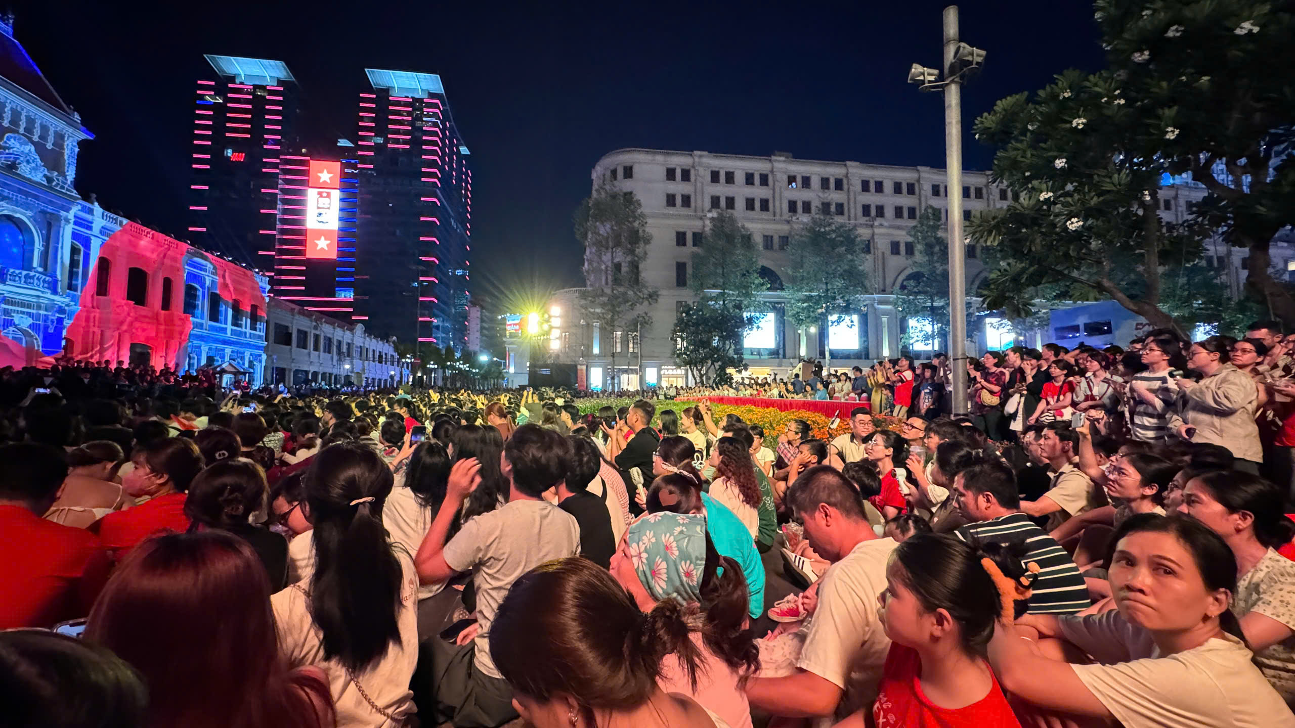 Đến khoảng 17h tối, khu vực trước trụ sở HĐND & UBND TP.HCM đã ken đặc người. Mặc dù thời tiết không quá nóng nực, nhưng do lượng người tập trung quá đông, không gian trở nên ngột ngạt và oi bức hơn thường lệ. Dù vậy, tất cả mọi người đều kiên nhẫn chờ đợi, tìm chỗ tốt nhất để có thể thưởng thức trọn vẹn bữa tiệc ánh sáng.