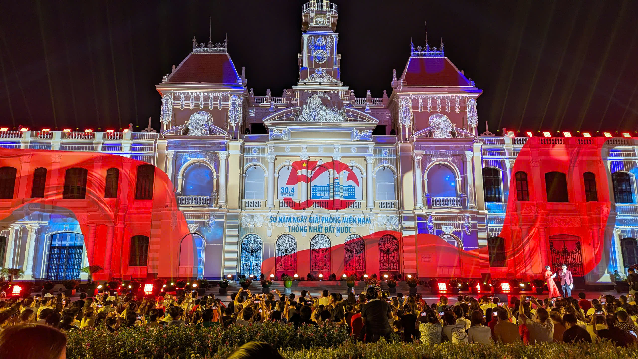Theo kế hoạch, TP.HCM sẽ tổ chức chương trình nghệ thuật 3D Mapping từ 19h30 đến 21h30 tối 19, 26, 29 và 30/4 ở mặt tiền trụ sở HĐND & UBND TP.HCM, quận 1. Trong đêm 30/4, TP.HCM sẽ tổ chức trình diễn 10.500 thiết bị bay không người lái (drone) trên sông Sài Gòn, hai bên bờ sông TP Thủ Đức và quận 1 từ 20h30 - 20h45.