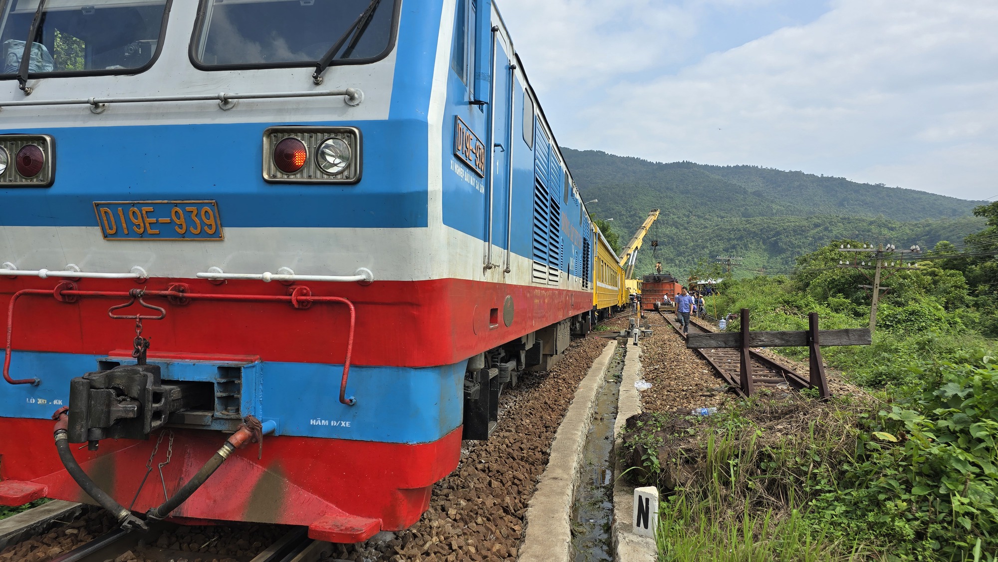 Thời điểm này, tàu khách SE7 đang vào khu vực đường sắt Hải Vân hướng Bắc - Nam nhưng vướng sự cố tàu ASY2 nên không thể đi tiếp.