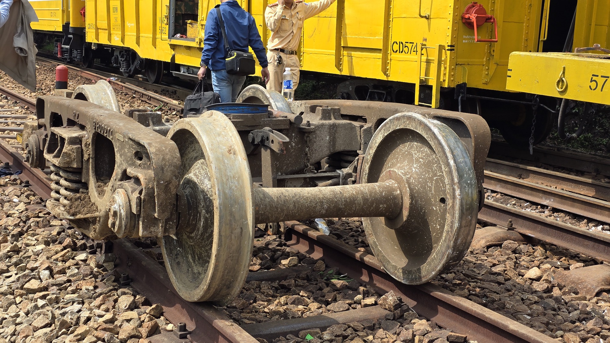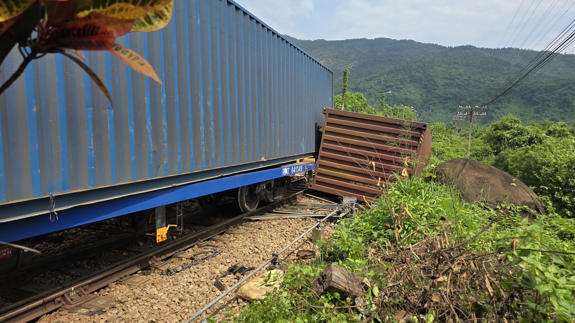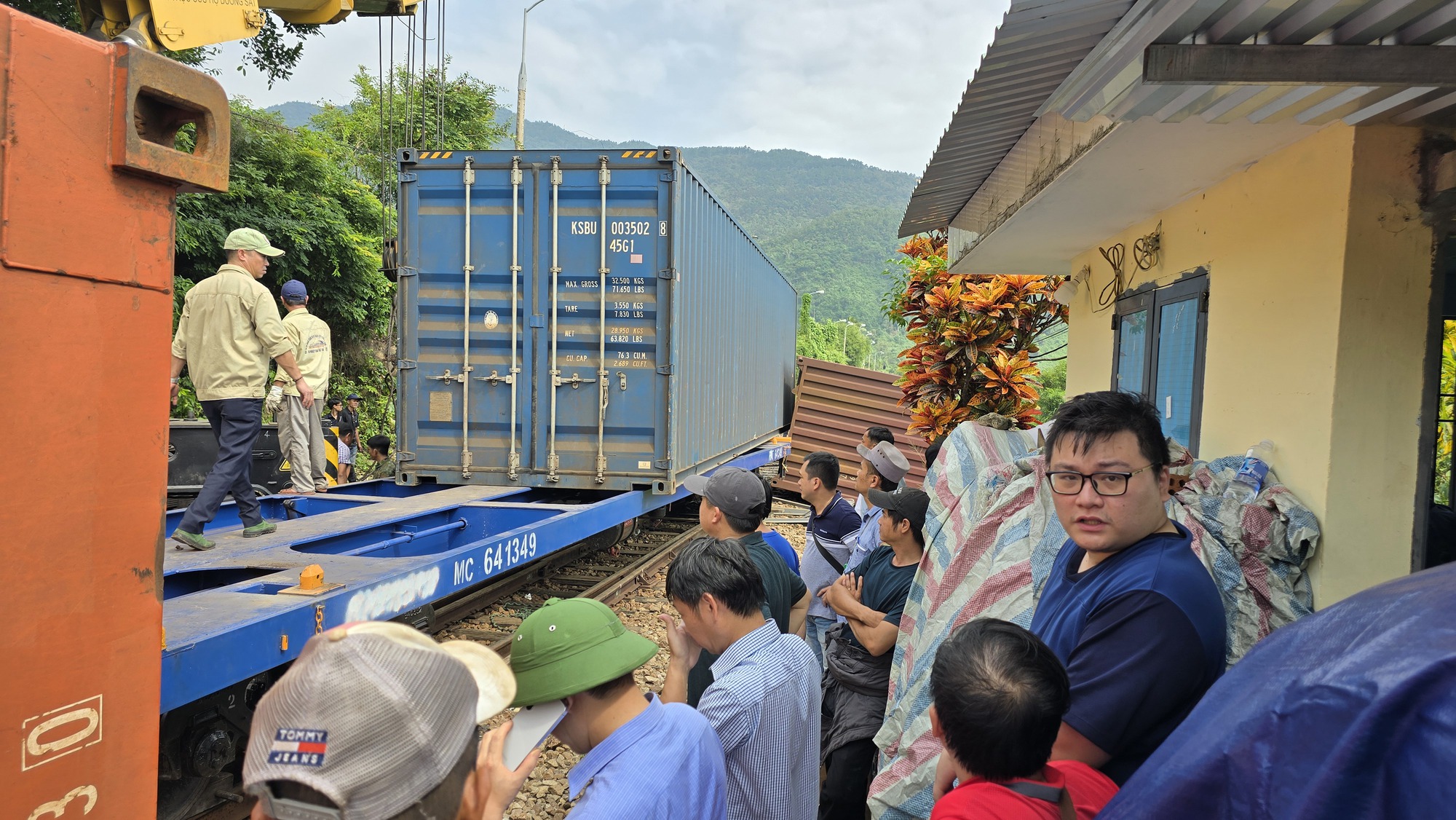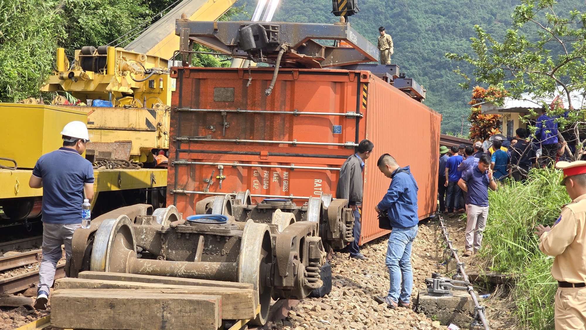 Trước đó, lúc 21h10 ngày 1/11, tàu ASY2 máy 602 kéo, máy 659 đẩy, kéo 20 toa xe (tải trọng 840,7 tấn) đi vào đường số 1 ga Hải Vân Nam thì bị trật bánh, làm ngã 2 container sang ray số 2 và 1 container nghiêng 45 độ.
