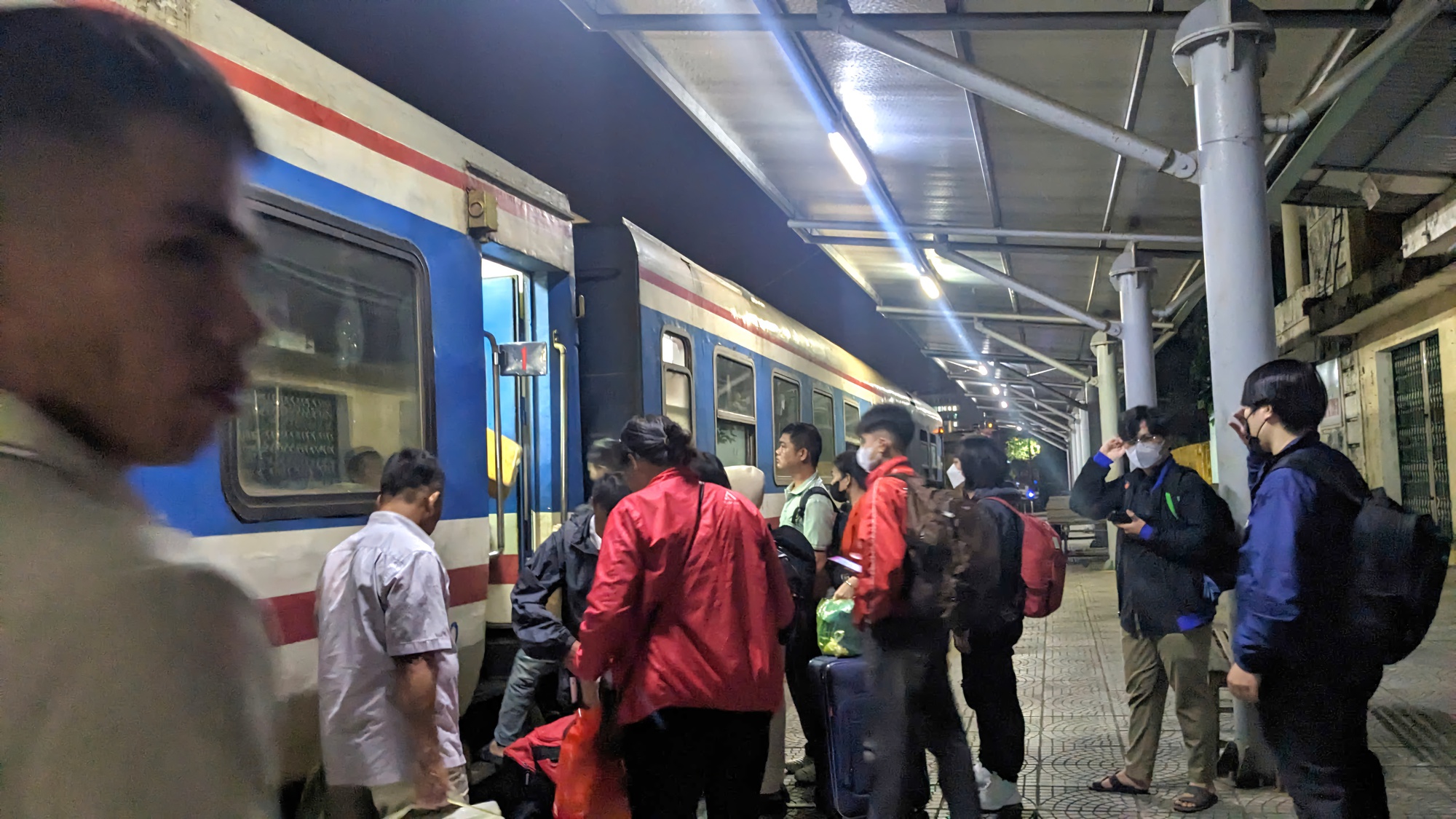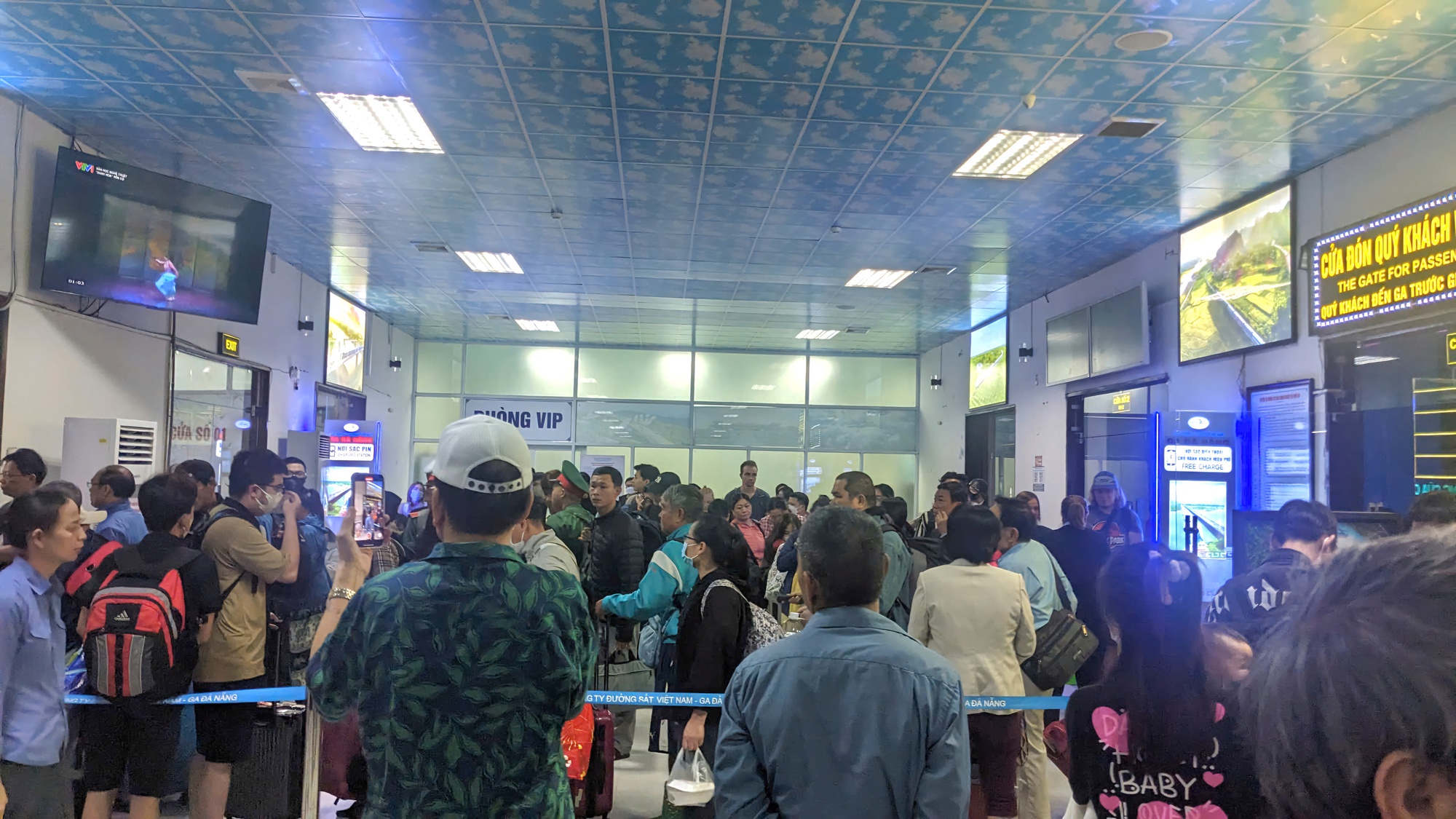 Hành khách được bố trí lên xe khách 45 chỗ trung chuyển đến Đà Nẵng để đi tiếp vào phía Nam.