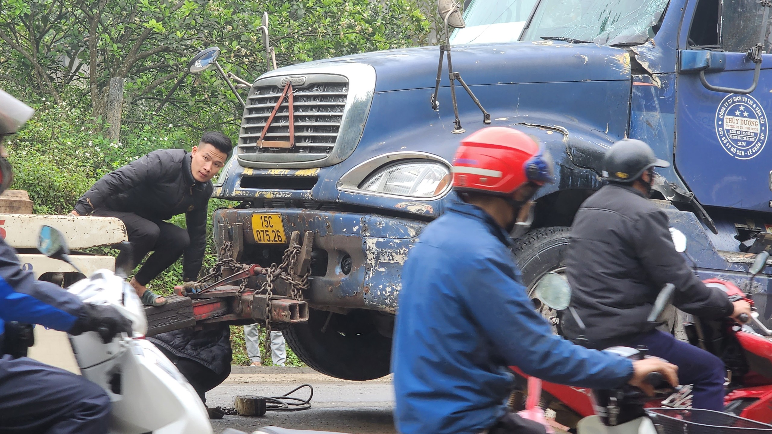 Cận cảnh dấu vết trên xe đầu kéo sau vụ tai nạn.