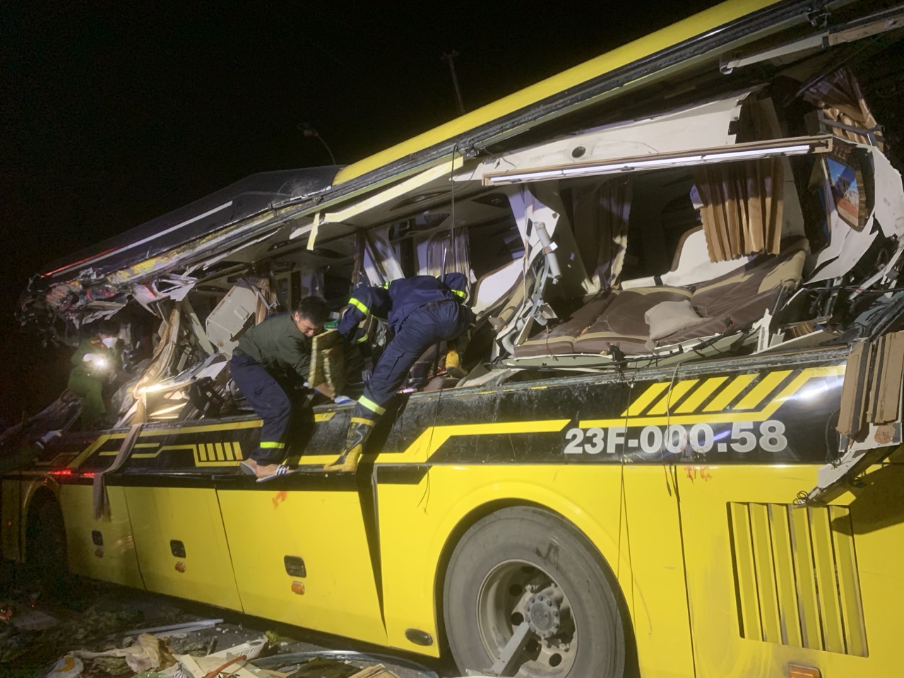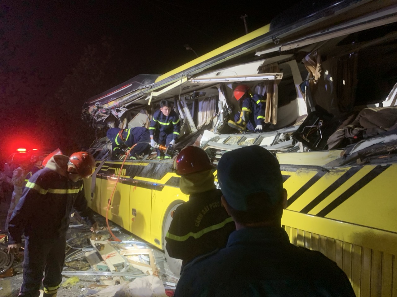 Va chạm khiến ít nhất 5 người tử vong tại chỗ, nhiều người bị thương nặng được đưa đi cấp cứu. Lực lượng chức năng phải cắt xe khách để tiếp cận các nạn nhân.