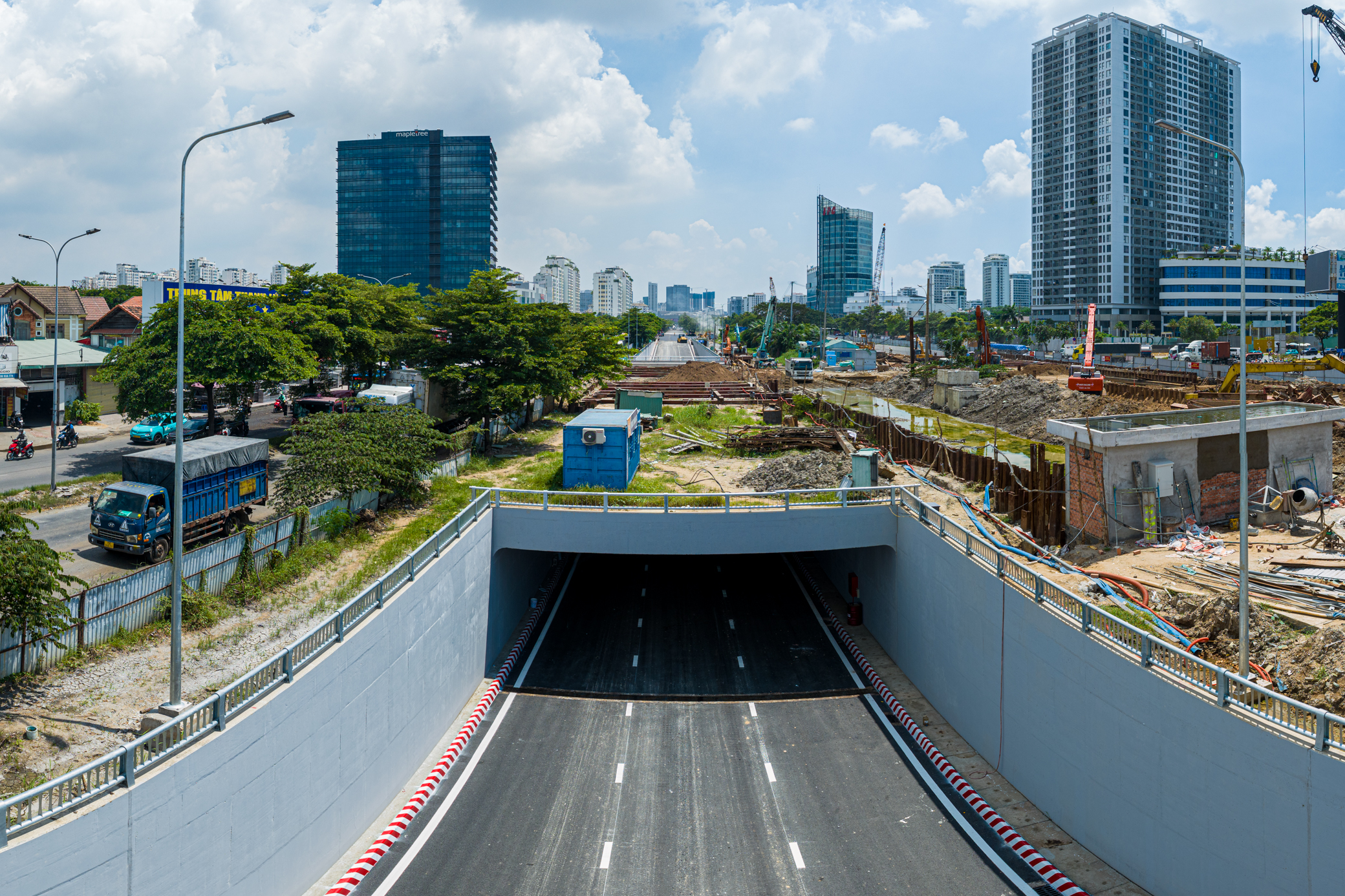 Đoạn hầm kín ở độ sâu khoảng 5m so với mặt đất. Công trình gồm hai hầm ở hai chiều đường Nguyễn Văn Linh, mỗi hầm dài 456m, 3 làn xe ô tô chạy với vận tốc tối đa 60km/h.