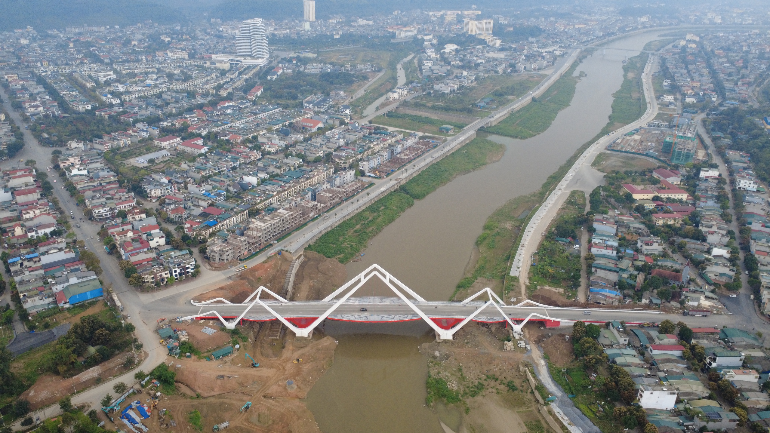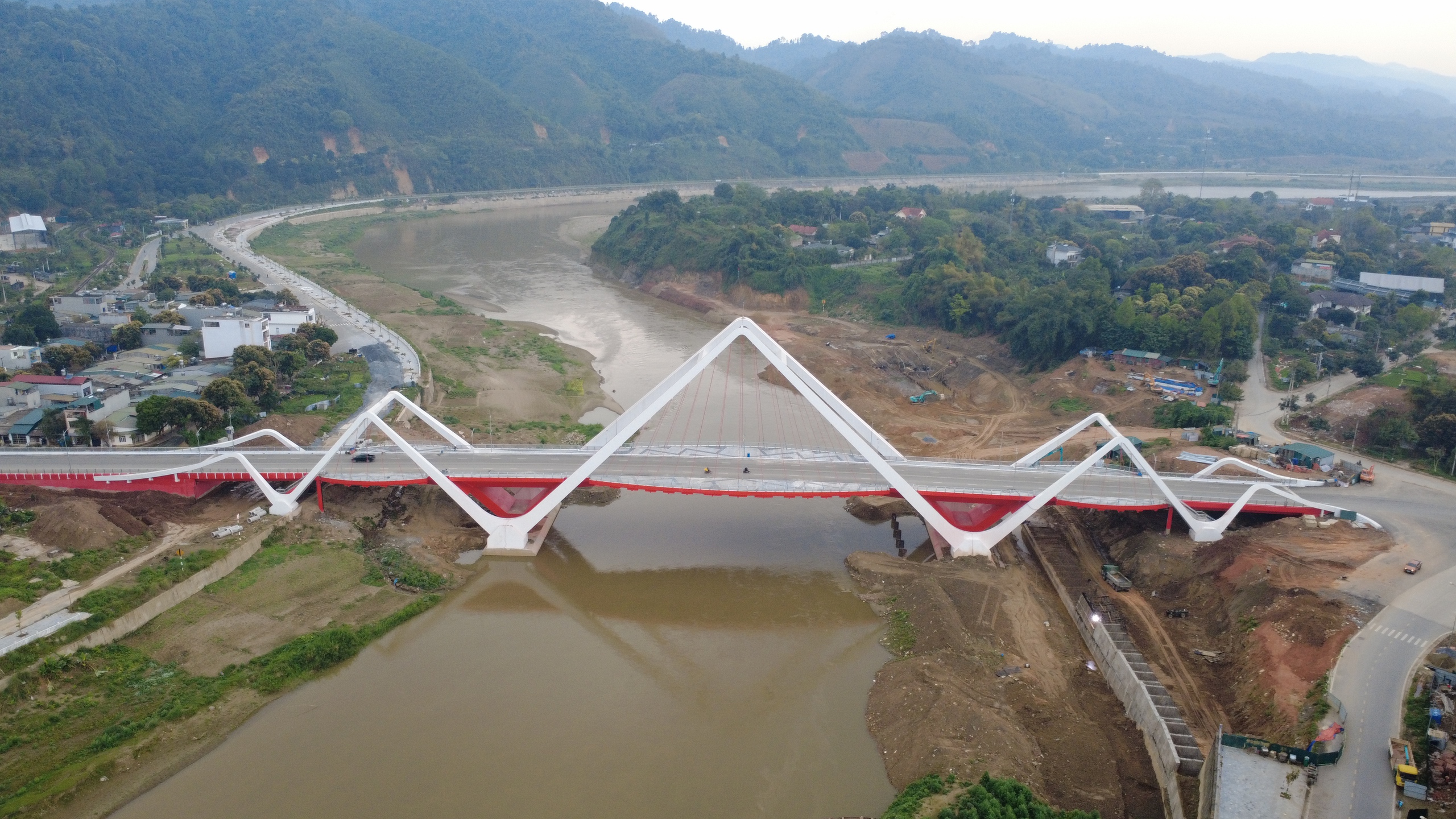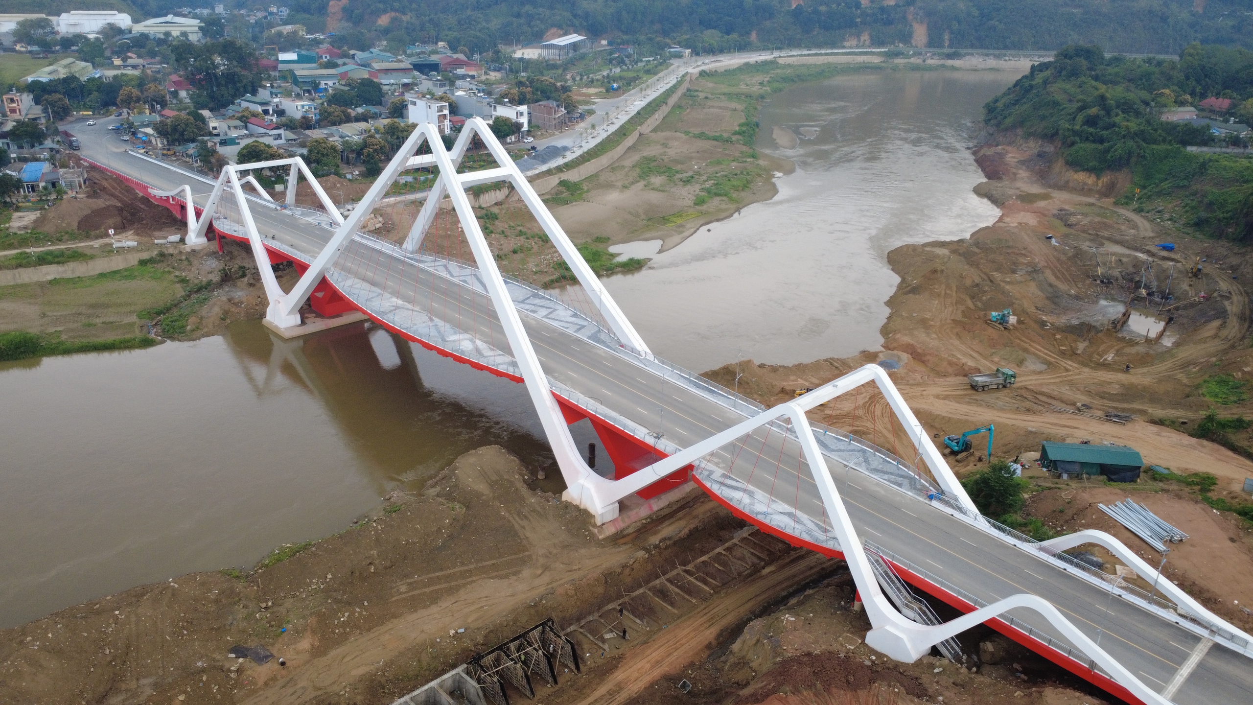 Cầu Phú Thịnh bắc qua sông Hồng ở Lào Cai.