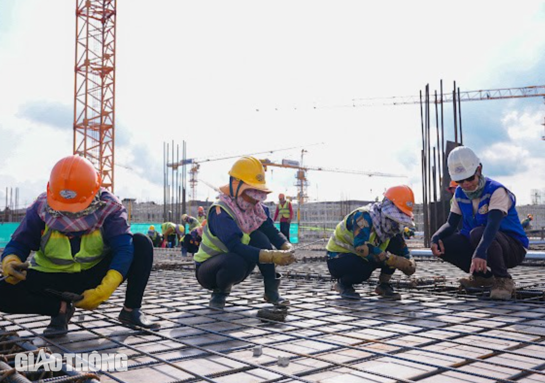 Tương tự, ở công trường nhà ga hành khách, nơi sẽ phục vụ hàng triệu lượt khách mỗi năm cũng đang được bứt tốc đẩy nhanh tiến độ. Những cần cẩu khổng lồ, dàn giáo vươn cao đang hỗ trợ lắp đặt từng khung thép, đổ từng khối bê tông, tạo nên một công trình hiện đại.