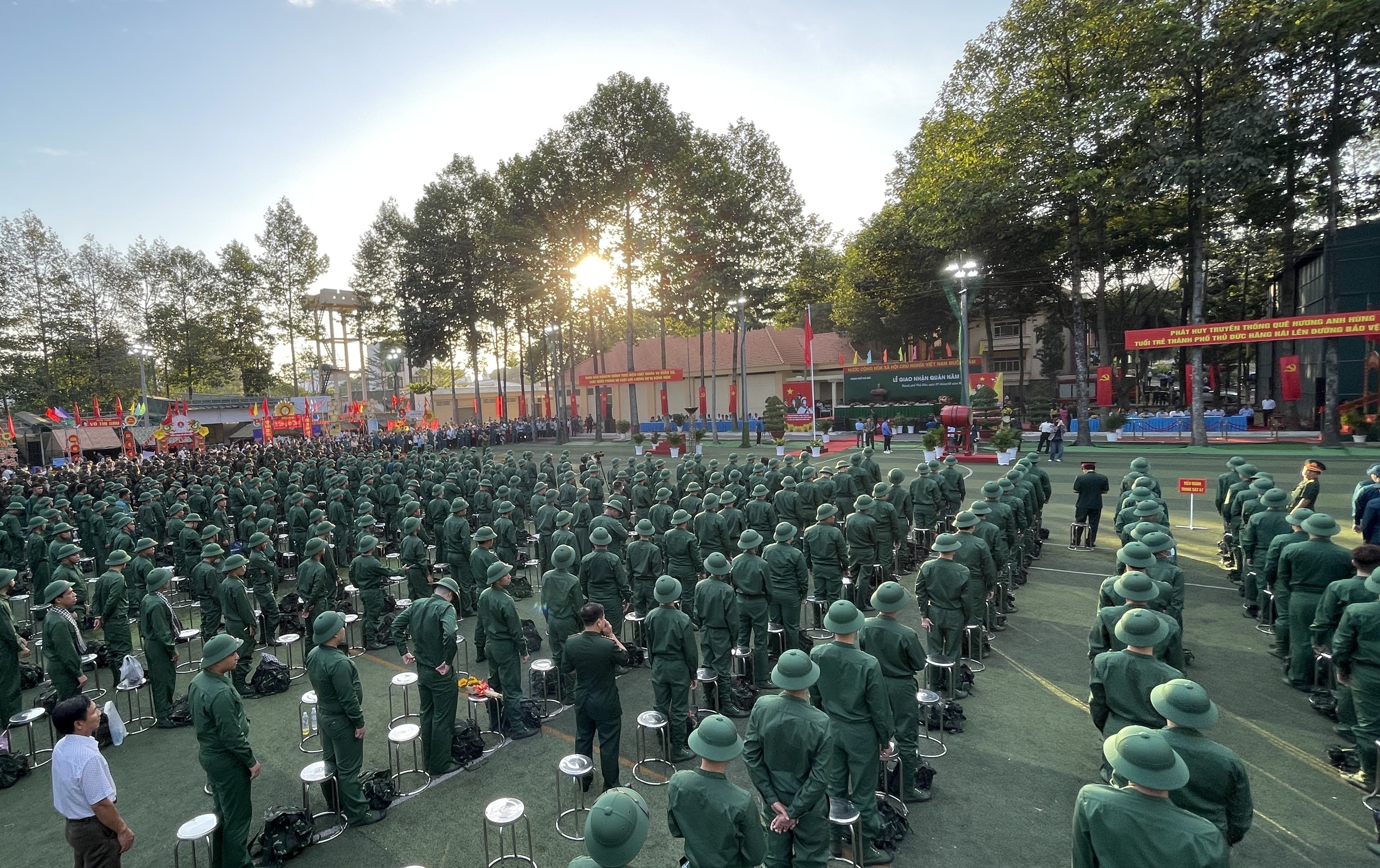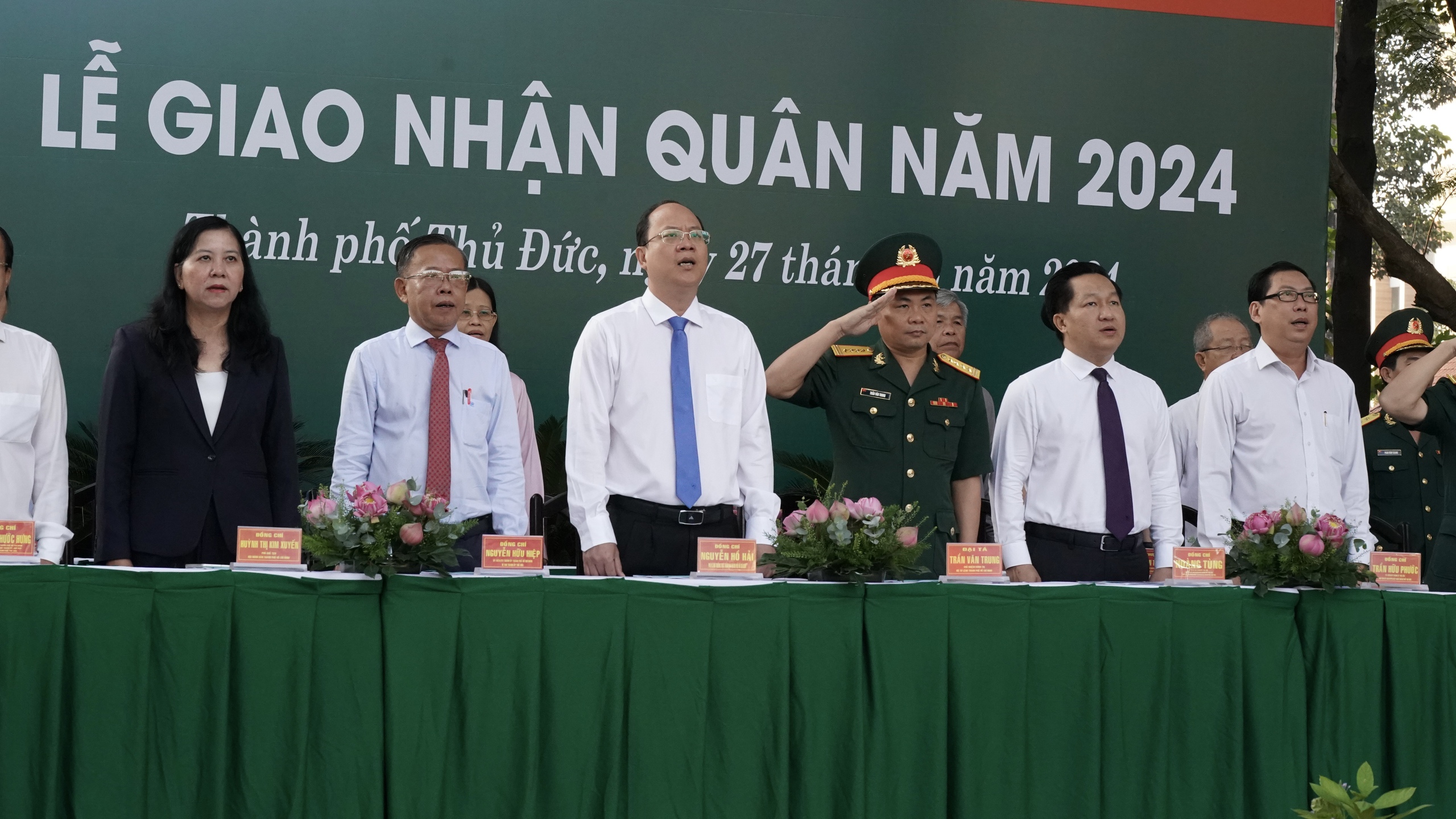 Buổi lễ được tổ chức long trọng với sự tham dự của lãnh đạo Bộ Quốc phòng, Bộ Công an, Quân khu 7 cùng với đại diện lãnh đạo UBND TP.HCM, TP Thủ Đức. Thượng tá Trần Văn Quyết, Chỉ huy trưởng Ban Chỉ huy Quân sự TP Thủ Đức, cho biết trong 560 thanh niên nhập ngũ năm nay có 426 thanh niên thực hiện nghĩa vụ quân sự, 134 thanh niên thực hiện nghĩa vụ công an. Đặc biệt, có hai nữ thanh niên đã tình nguyện nhập ngũ thực hiện nghĩa vụ thiêng liêng với Tổ quốc.