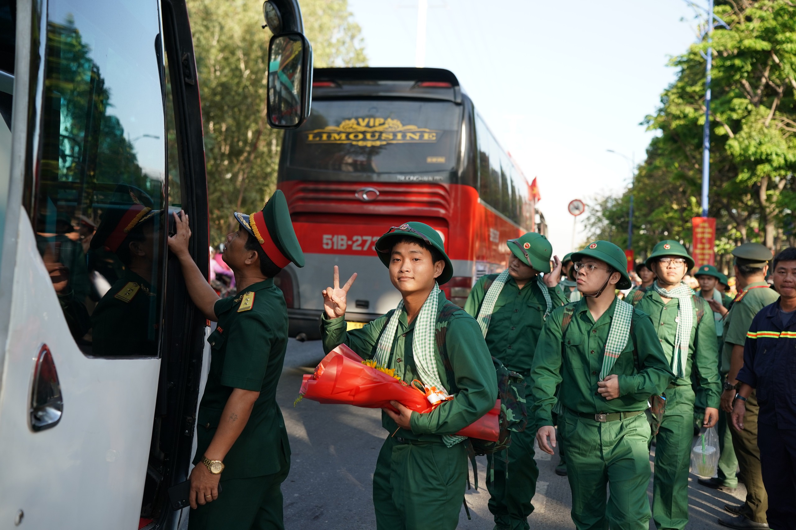 7h30, hàng nghìn thanh niên có mặt tại điểm giao, nhận quân TP Thủ Đức bắt đầu di chuyển lên xe để về các đơn vị được phân công.