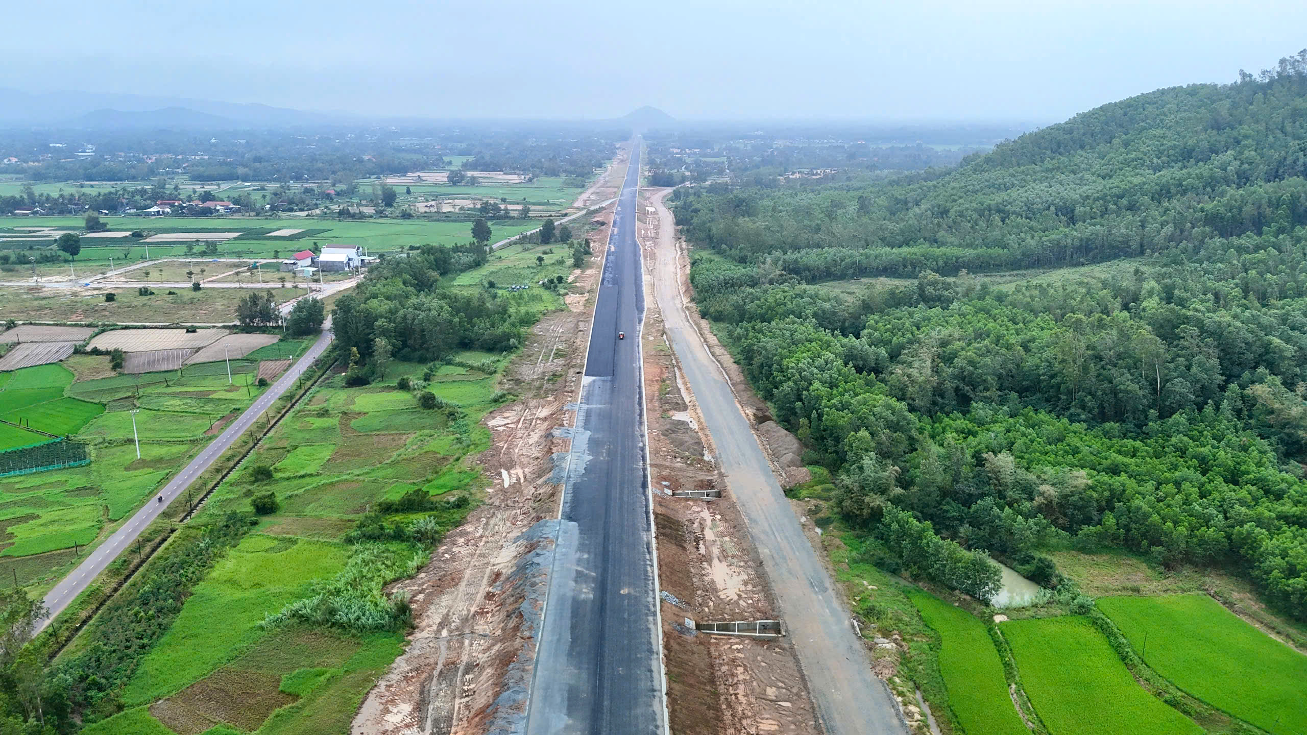 Cao tốc Hoài Nhơn - Quy Nhơn qua huyện Phù Mỹ, Bình Định được thảm nhựa.