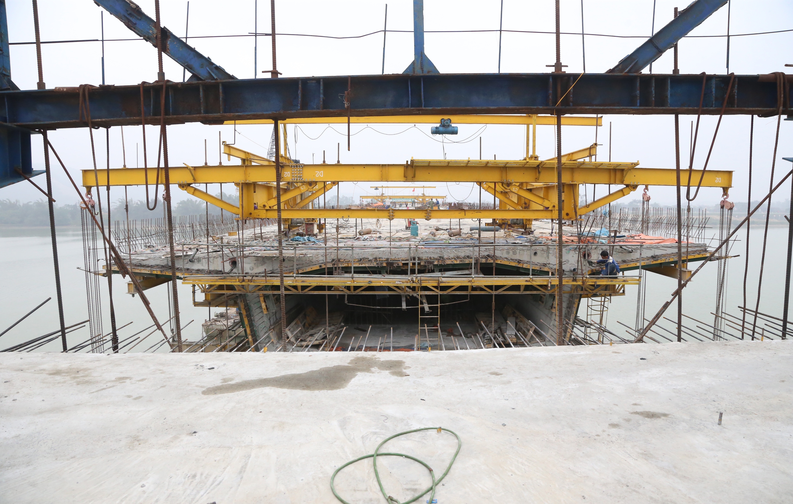 Trong khi đó, Công ty CP Đầu tư và xây dựng Thái Yên cũng đã thi công đúc hẫng xong trụ T14. Với trụ T15, vẫn còn 2 ca (14 và 15), sau khi hoàn thành ca 14 và 15 thì sẽ thi công 2 đốt 2 bên để hợp long phần cầu.
