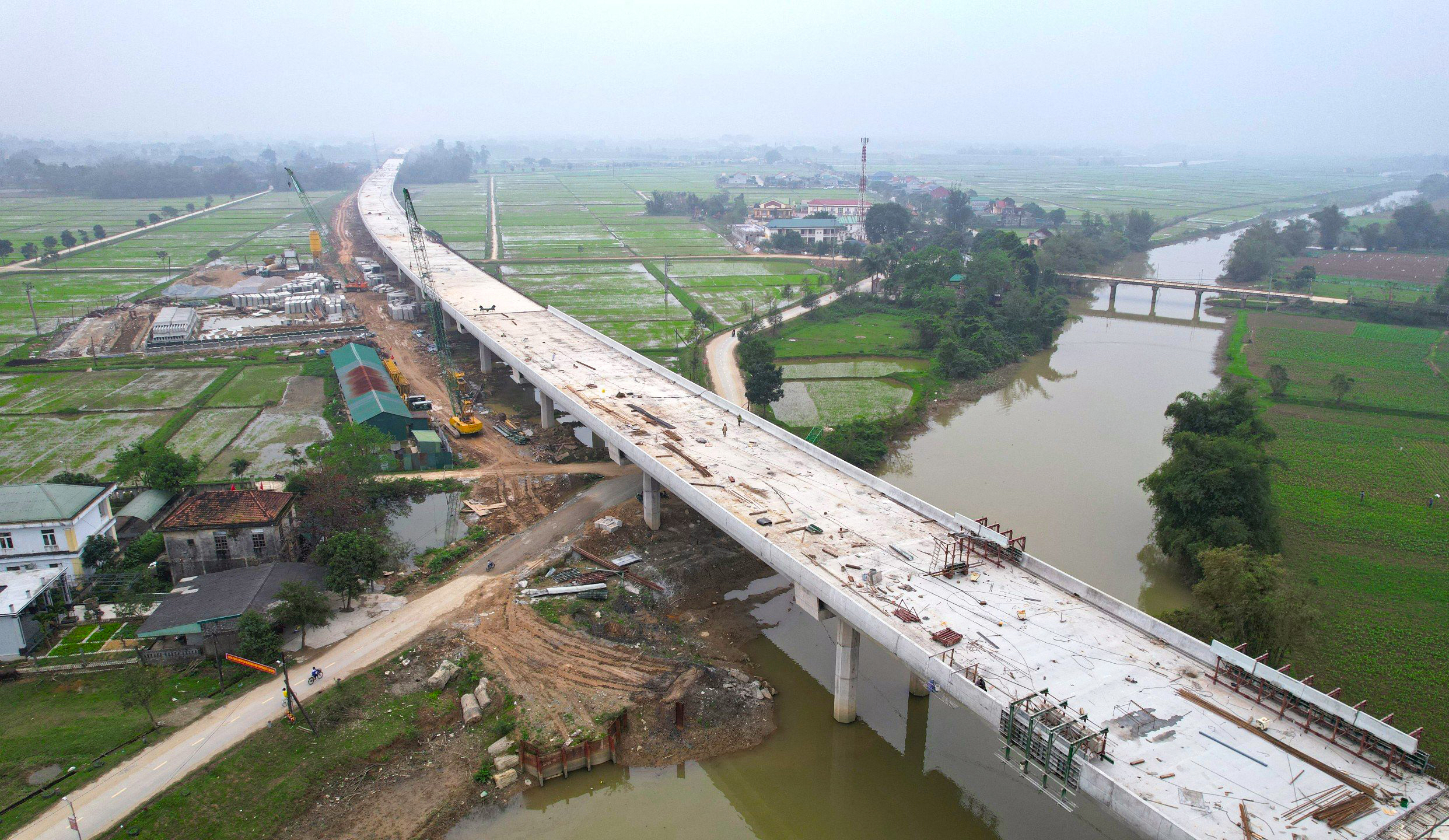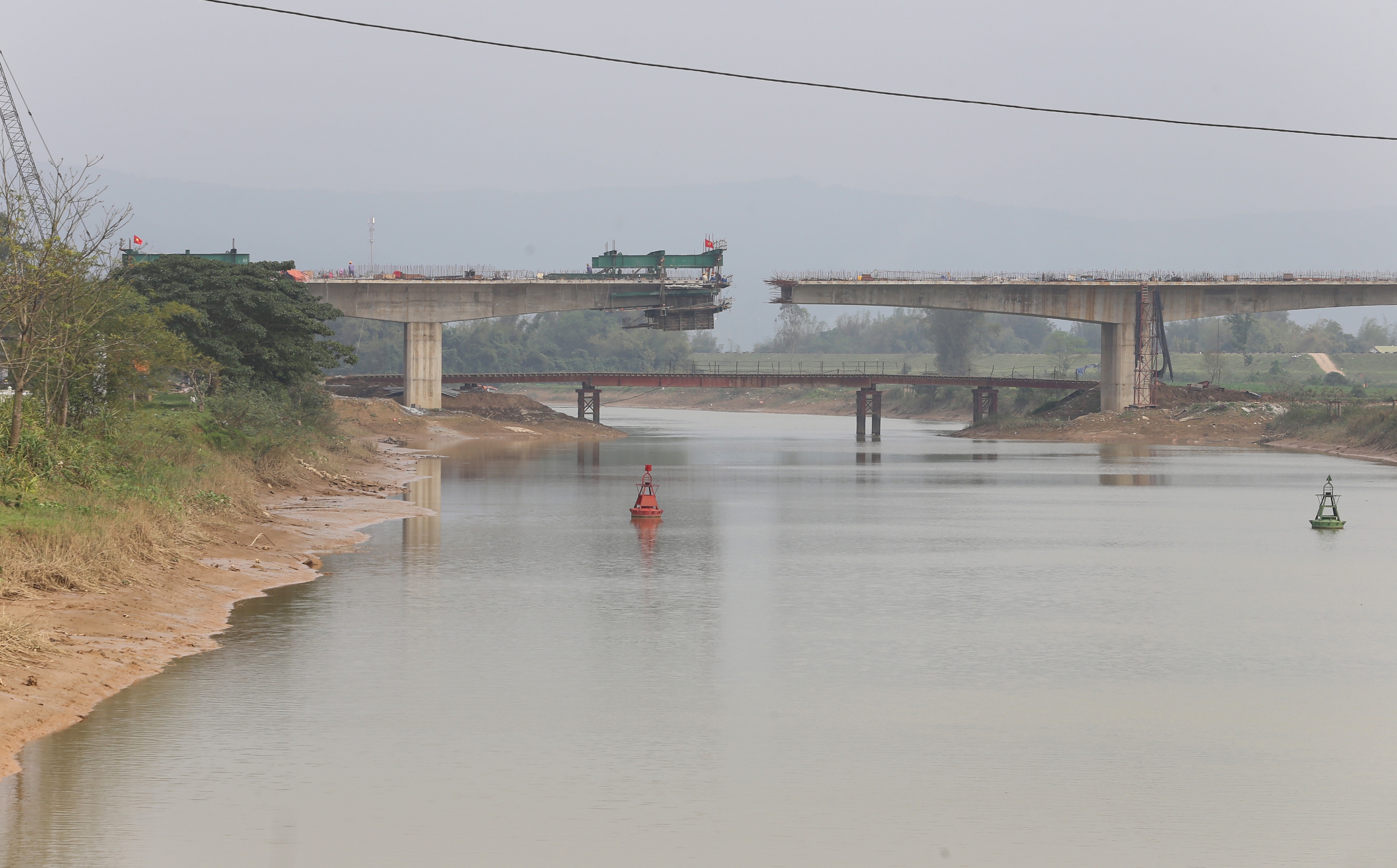 Trong đó, có 5 nhịp đúc hẫng gồm các nhịp vượt đê La Giang và vượt sông Lam có khoảng cách lên đến 120m. Ngày 10/9/2023, Hòa Hiệp hợp long nhịp đúc hẫng đầu tiên của dự án và hiện đã hợp long toàn bộ các nhịp đúc hẫng. Ngoài ra, Hòa Hiệp cũng là đơn vị đầu tiên thi công hoàn thành bản mặt cầu.