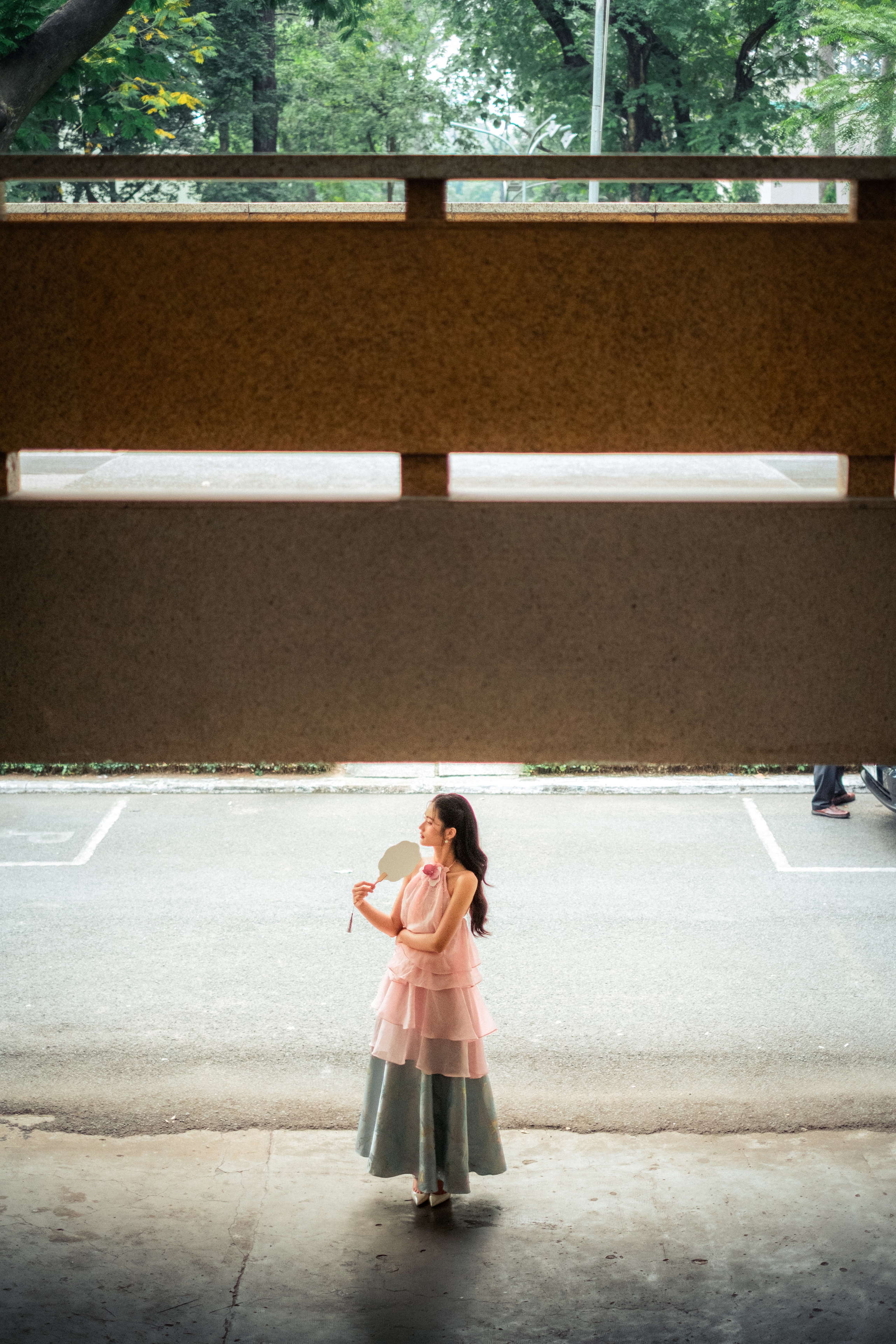 Thiết kế mang tông màu pastel ngọt ngào, kết hợp giữa chất liệu voan và gấm, phần cổ áo cách điệu với những đường thêu tay, đính kết tỉ mỉ.