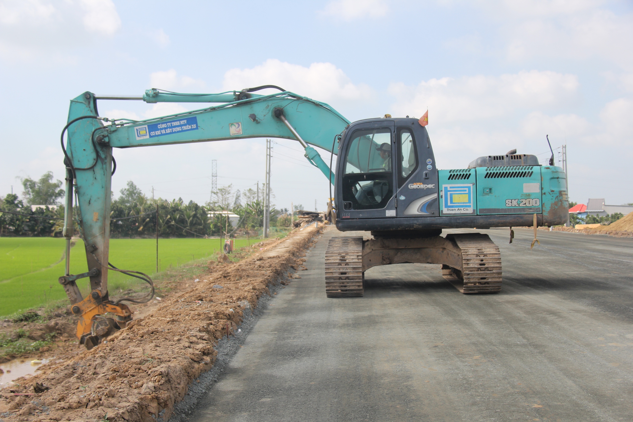Thi công đắp đất lề đường, gia cố mái ta luy.