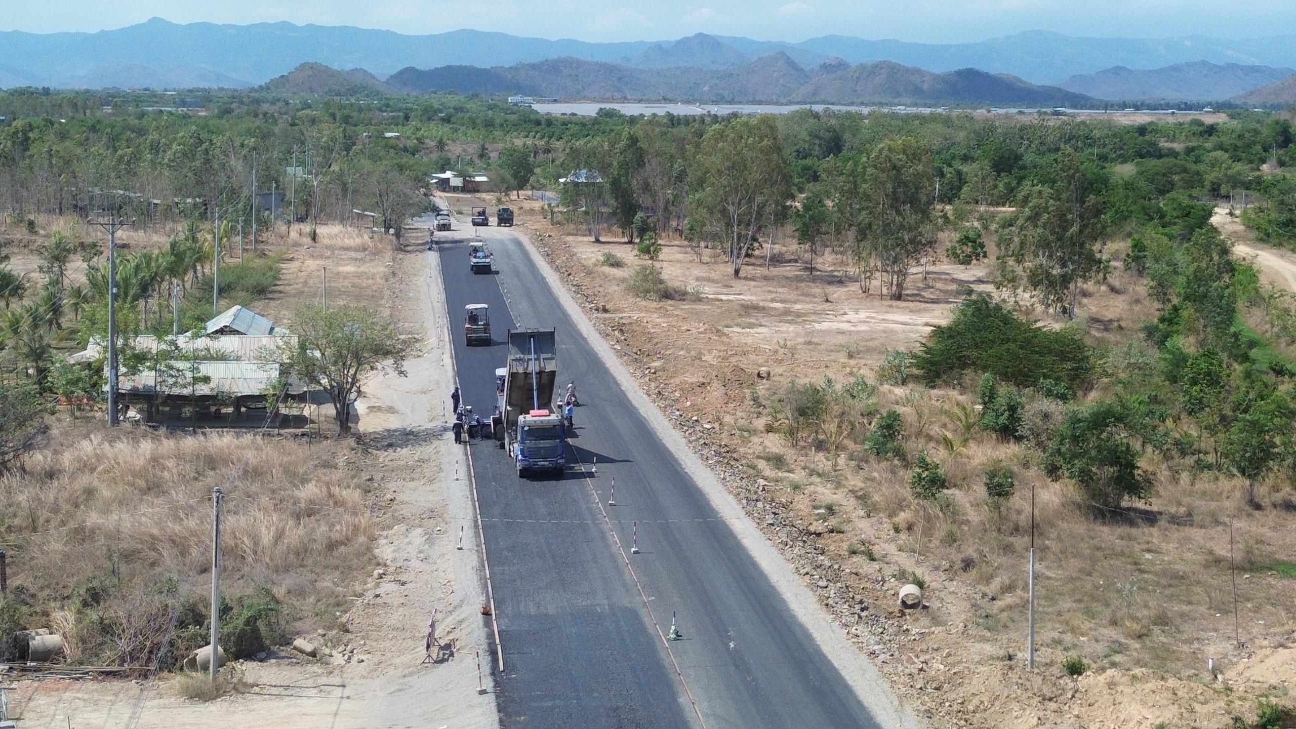 Kỹ sư Nguyễn Dương Ngọc, Chỉ huy trưởng thi công Công ty Thành Phát, gói thầu XD-01 (Liên danh Nhà thầu Thành Phát - Phan Đình - Công ty 368 - Đường bộ Khánh Hòa) cho biết, đơn vị phụ trách thi công 20km. Hiện tại, các đoạn đã có mặt bằng đang được hoàn thiện thi công móng, mặt đường. "Đến nay đã thảm nhựa xong 2km mặt đường, nhà thầu sẽ thi công xuyên lễ 30/4 - 1/5 để đẩy nhanh tiến độ", kỹ sư Ngọc cho biết.