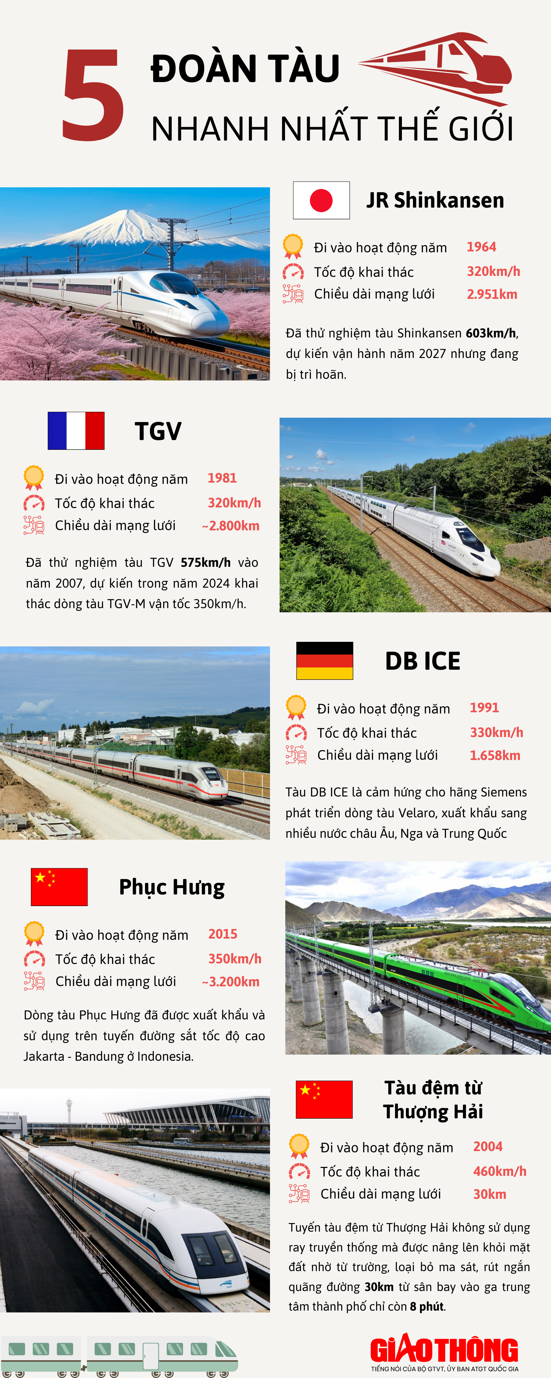 Infographic: 5 đoàn tàu cao tốc nhanh nhất thế giới