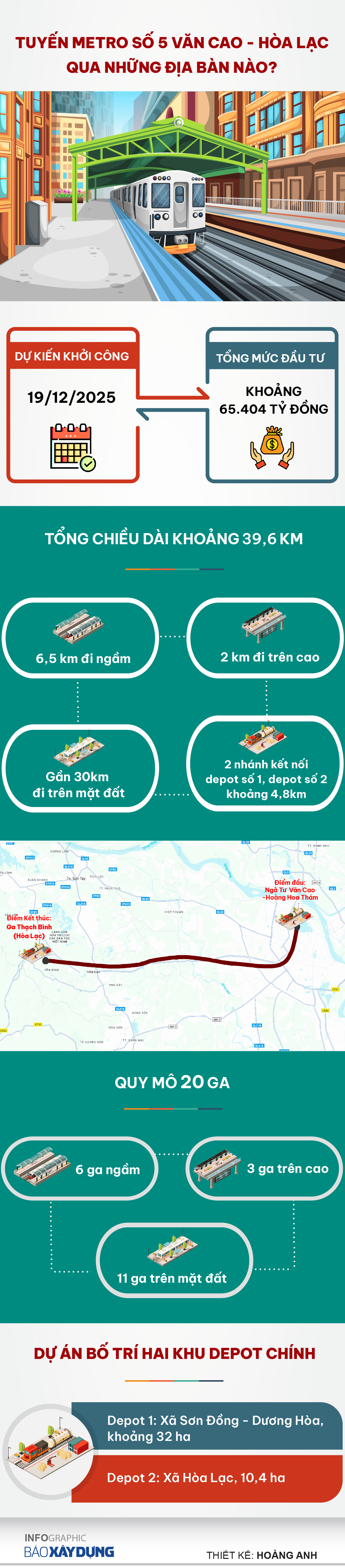 Infographic: Tuyến metro số 5 Văn Cao - Hòa Lạc qua những địa bàn nào?