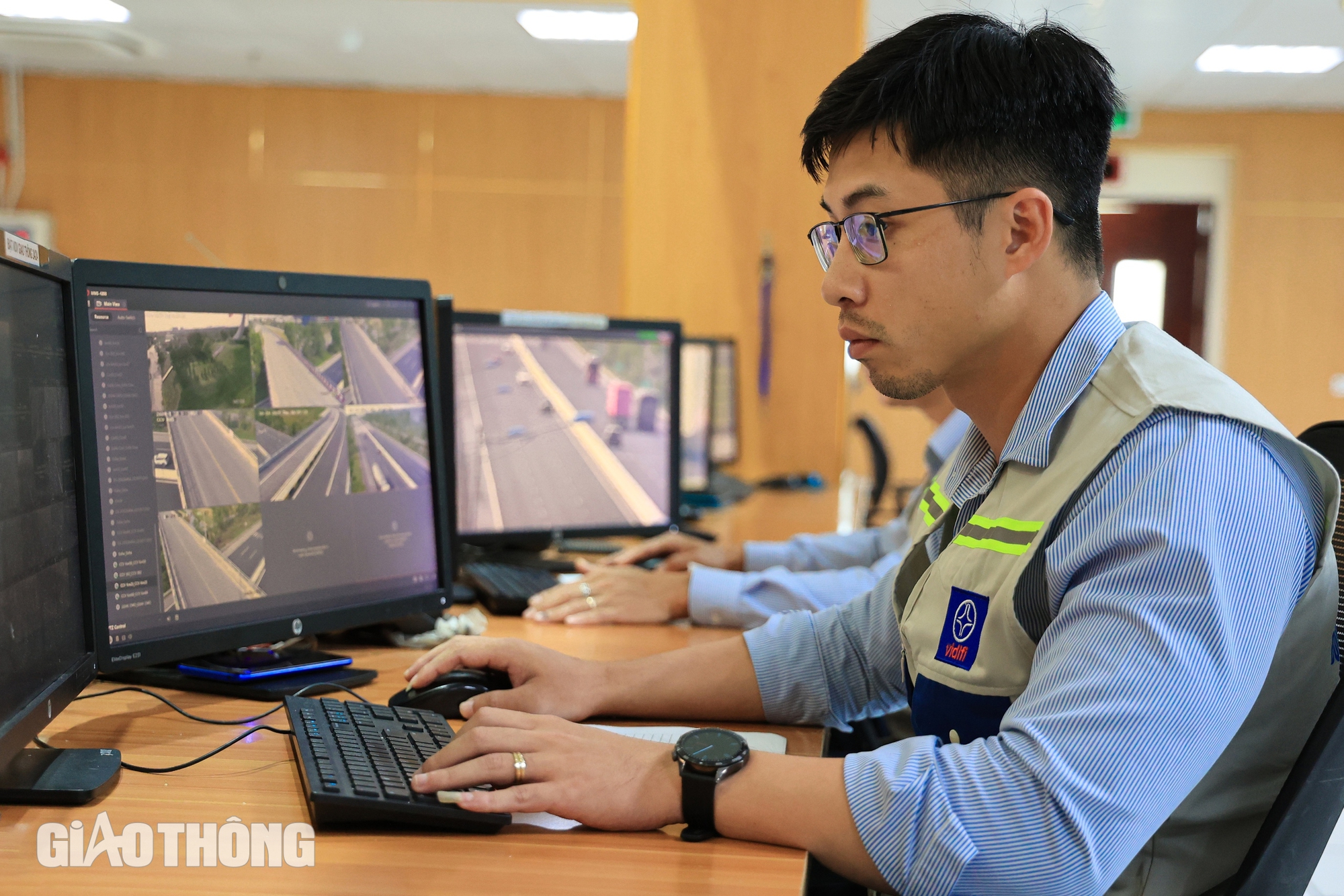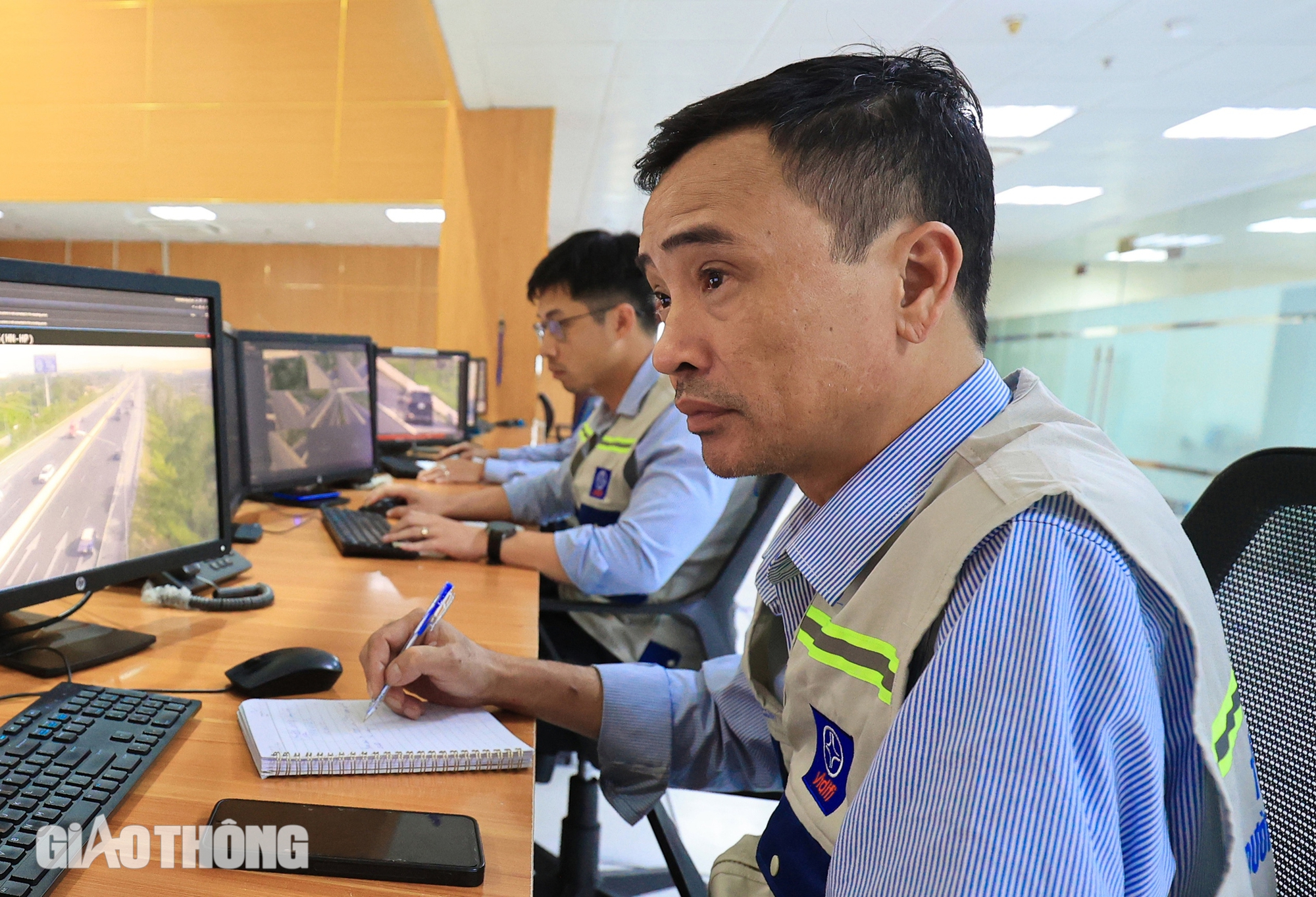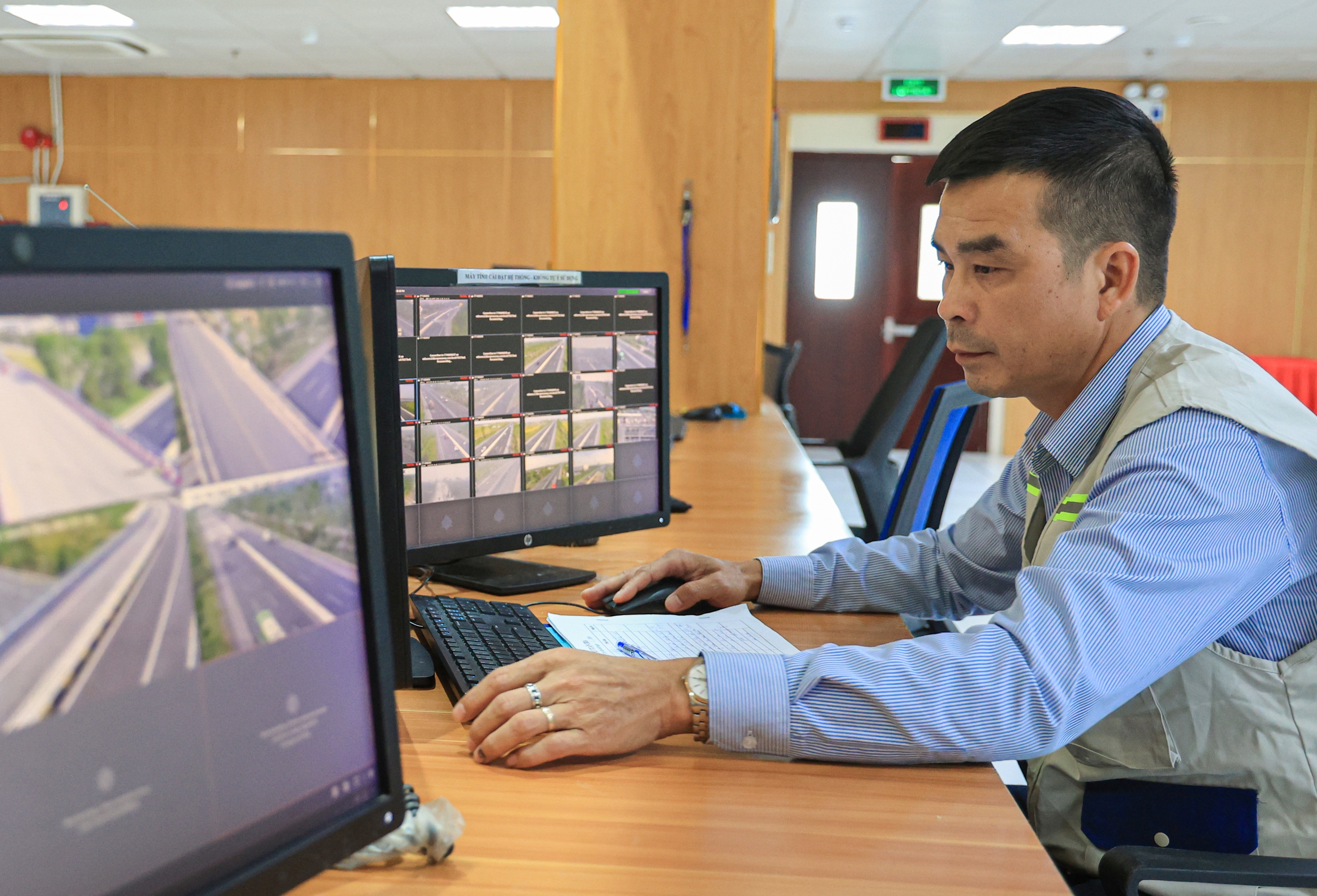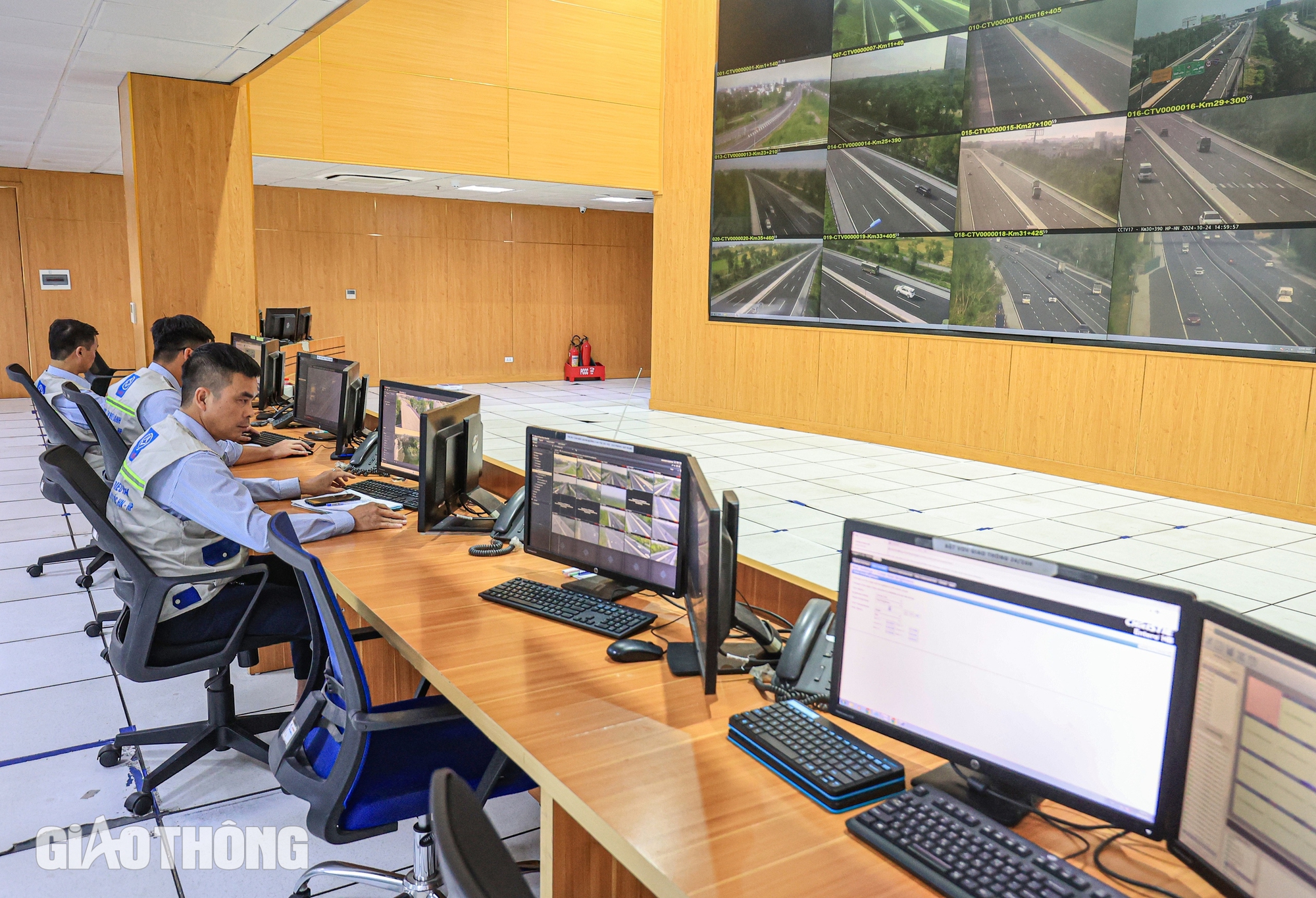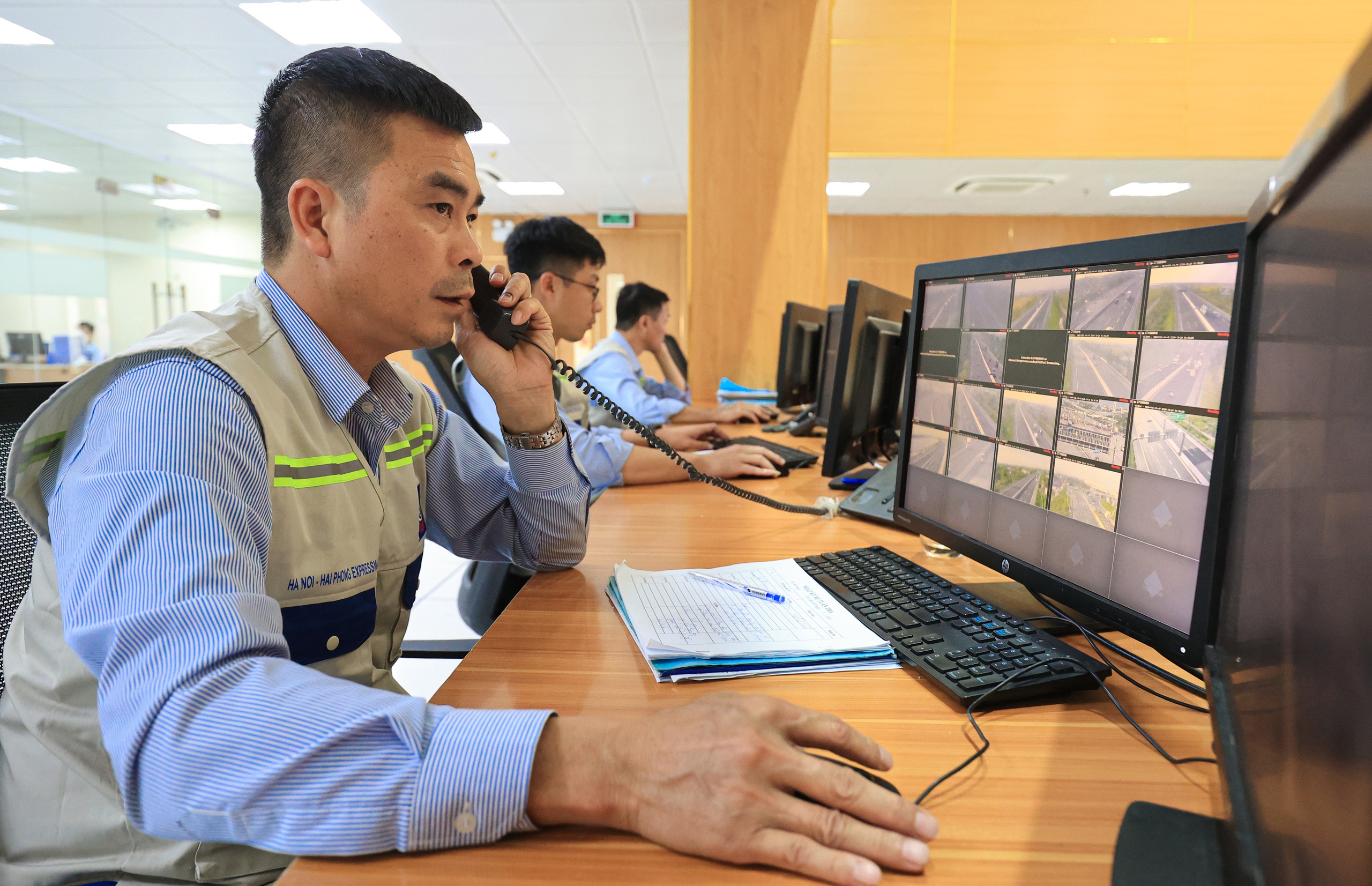 Tại Trung tâm Điều hành tuyến cao tốc Hà Nội - Hải Phòng, luôn có 5 kỹ sư trực 24/24h quản lý vận hành hệ thống giao thông thông minh trên tuyến đường 105km. Trung tâm có tất cả 15 kỹ sư chia làm 3 ca trực liên tục 24/24h.