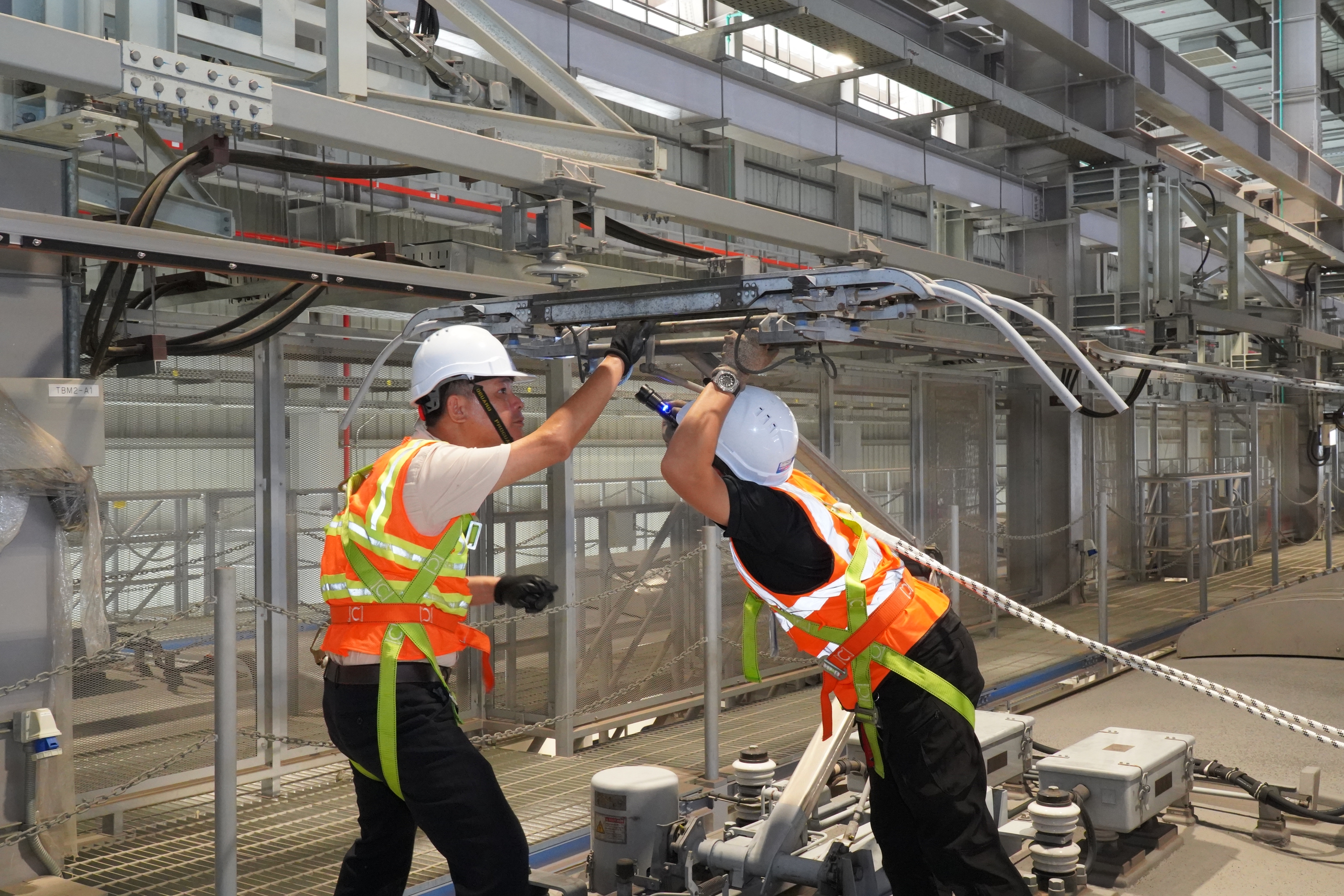 Sau khi hoàn tất việc kiểm tra, đo đạc các thông số kỹ thuật bên ngoài, các kỹ sư tiếp tục lên toa tàu để kiểm tra hệ thống bên trong. Công việc này bao gồm rà soát các chức năng quan trọng như động cơ cửa, hệ thống khí nén, cơ chế vận hành, độ chính xác của thời gian và chất lượng âm thanh...