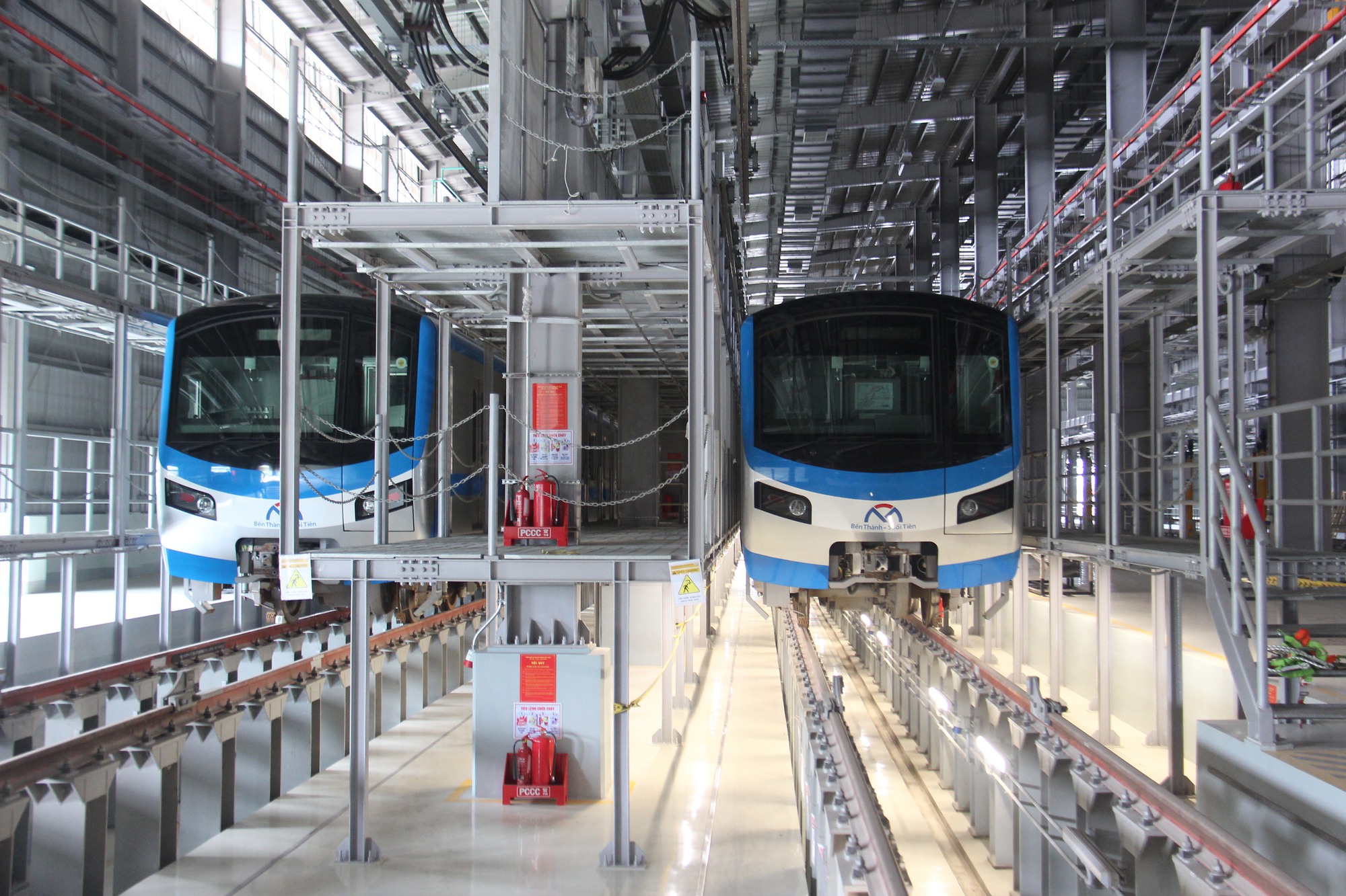 Đây là nơi các đoàn tàu metro được đưa vào kiểm tra định kỳ theo kế hoạch hoặc xử lý sự cố bất ngờ. Đội ngũ kỹ thuật viên của Công ty TNHH MTV Đường sắt đô thị số 1 (HURC1) kiểm tra cẩn thận từng chi tiết nhỏ, đảm bảo các đoàn tàu luôn trong tình trạng hoạt động an toàn và hiệu quả.
